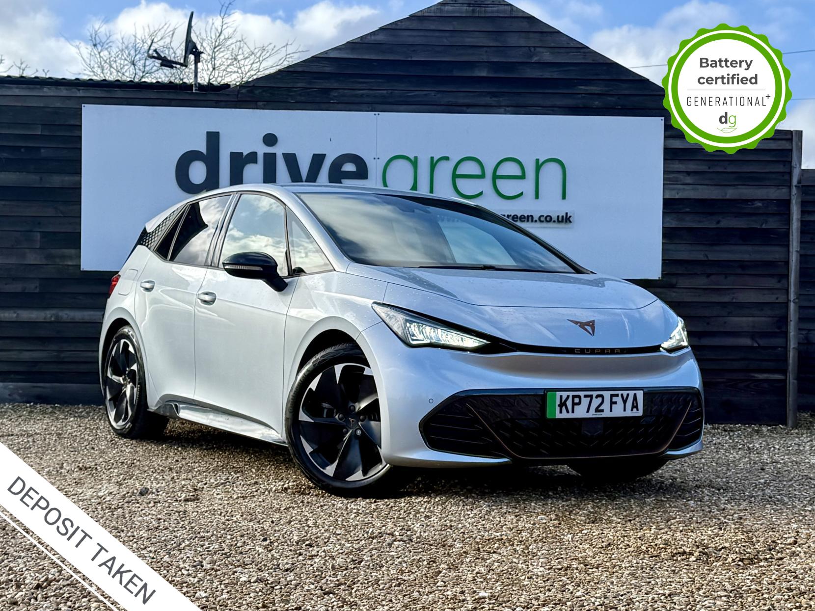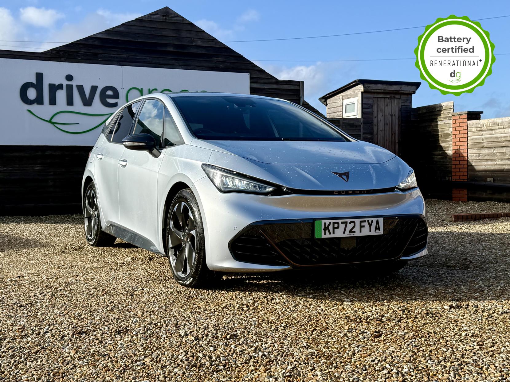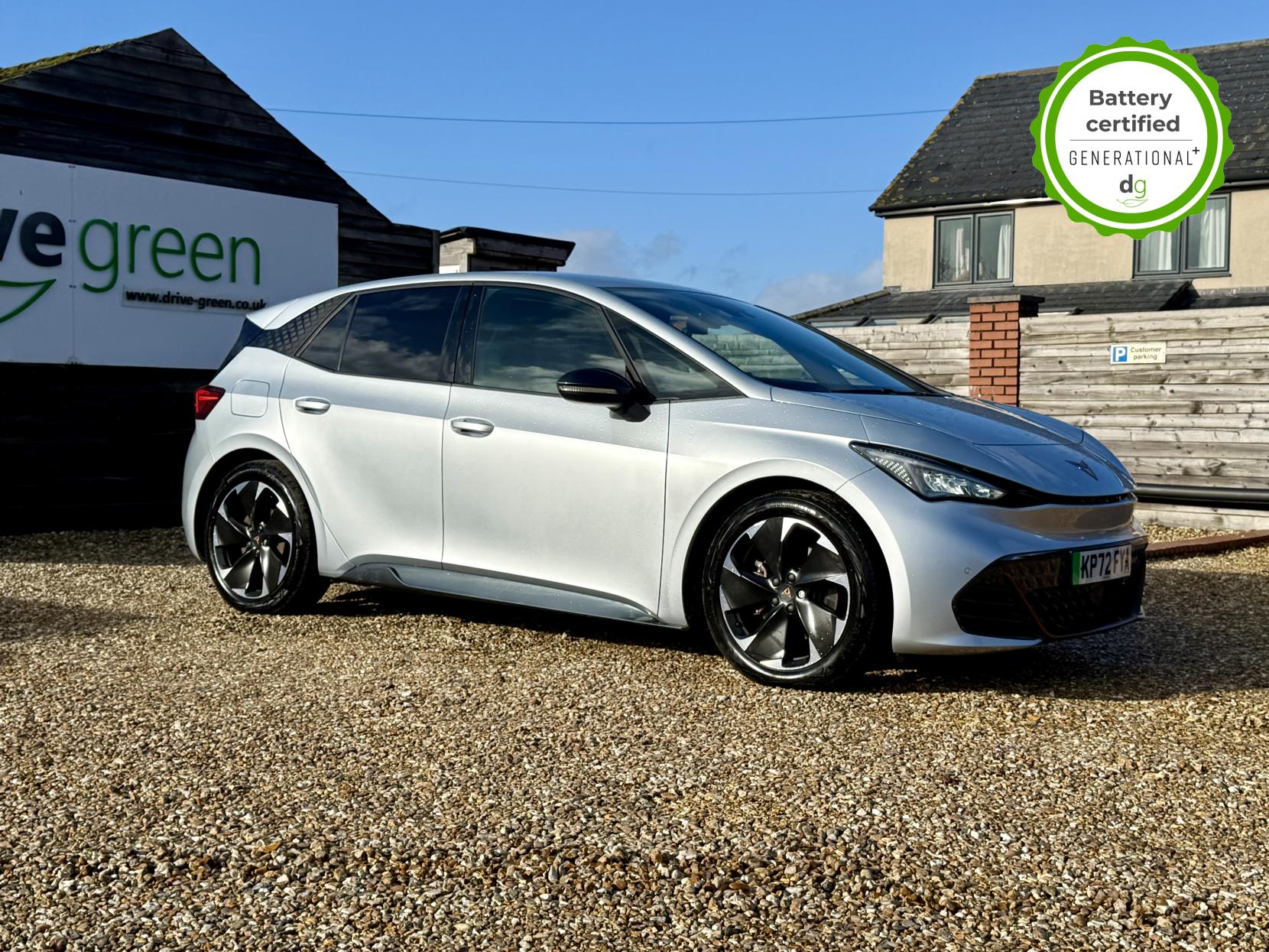 This particular Cupra Born is in excellent condition and fully prepared to our high standard, has 2 keys, 1 previous owner, and it is September 2026 until its next service or MOT is due. It also has an excellent 94% battery health. This high spec V2 edition comes with diamond cut alloy wheels, 12” infotainment system with SAT Nav, heated seats, heated steering wheel, dual zone climate control, keyless entry, HUD. Lots of safety equipment comes as standard including, adaptive cruise control incl. front assist, front and rear sensors, reverse camera, and forward collision warning. Led exterior lighting is included and so is wireless Apple CarPlay and Android Auto. As with all Cupra’s a clear and well-designed digital dash is standard, and it has an excellent easy to use infotainment system. The Cupra Born is has a real-world range of around 250 miles from its 58kWh battery. If you are looking for a stylish, practical and high-tech Cupra Born in great condition this could be the perfect EV for you. Unlike Car Supermarkets we have no hidden admin fees, there is no pressure selling, and we offer low finance rates. We also perform battery health checks on all our vehicles, so you can have the comfort of knowing the battery state of health of the EV you choose. Hopefully you will choose to buy your EV from Drive Green, as we are a multi award winning EV specialist and sustainable business, here to help you get the most from your switch to electric driving. Contact us to book an appointment to view and test drive this car, or to find out more about switching to electric driving, and to discuss purchase options, including buying on finance, and our remote buying and delivery service. We are also able to supply your home charge point also, making the switch to electric driving super easy for you. Drive Green is a true EV specialist and the UK’s biggest electric car only dealership, since 2017. FORECOURT VISITS AND TEST DRIVES BY APPOINTMENT ONLY.