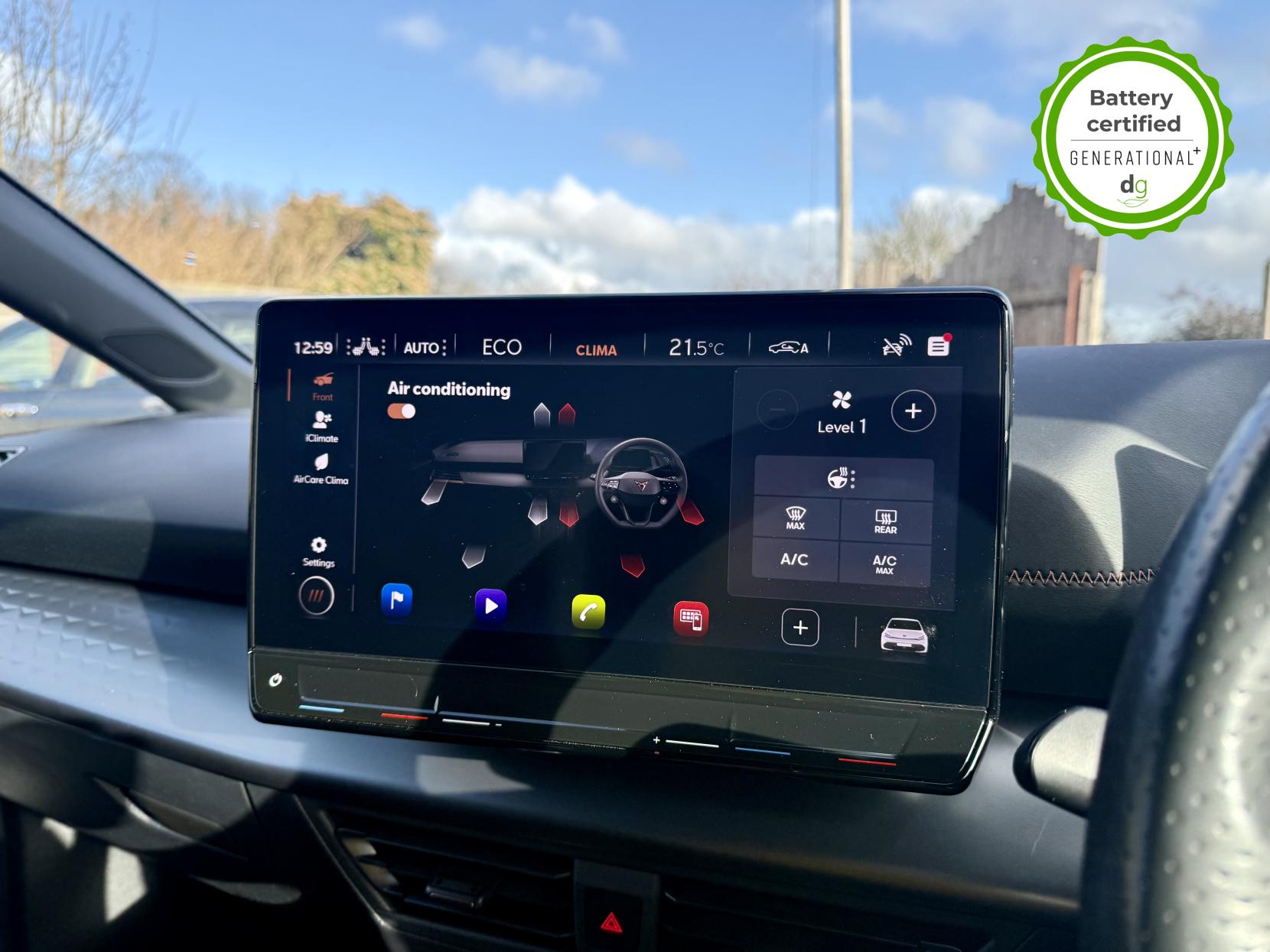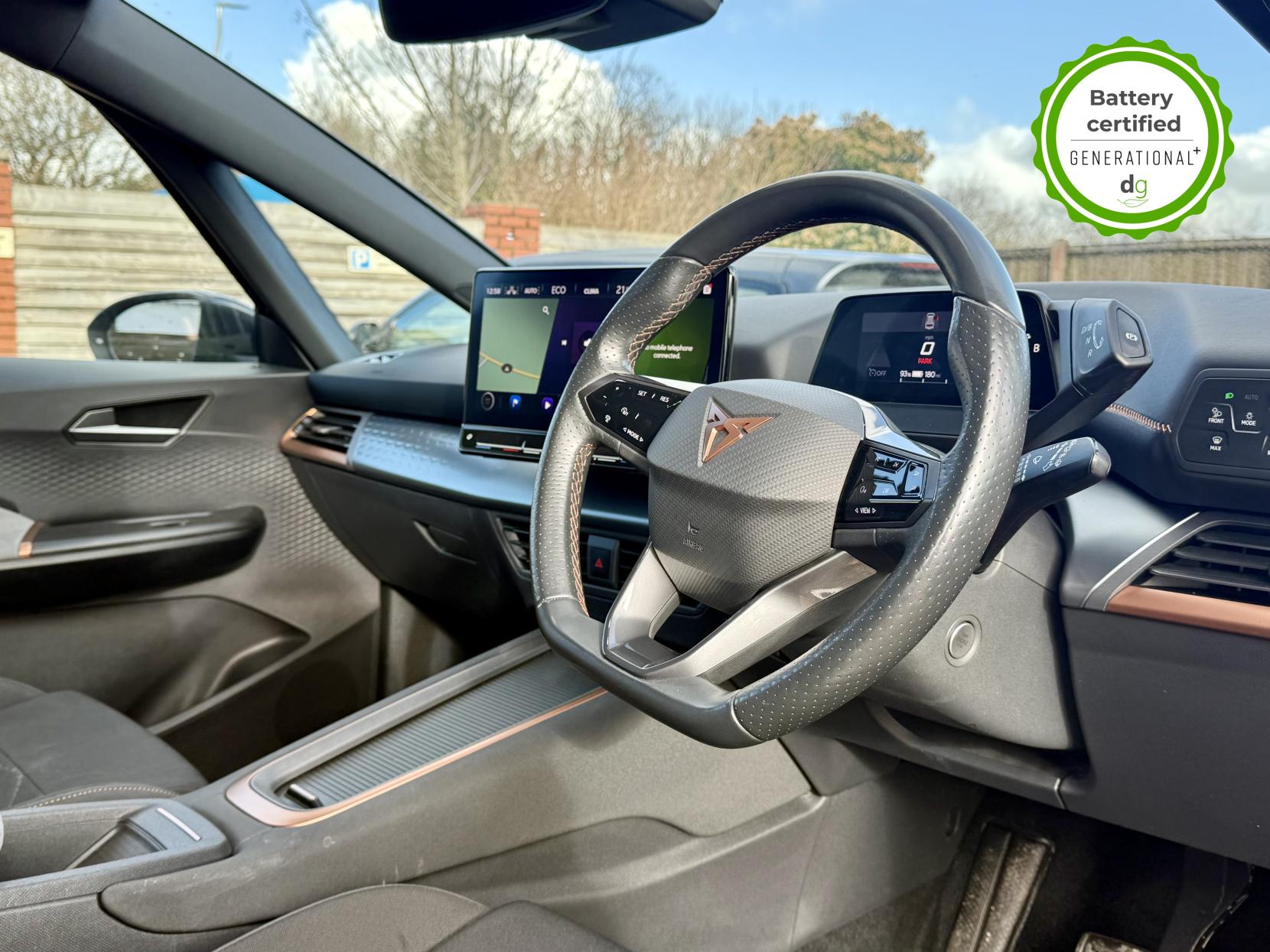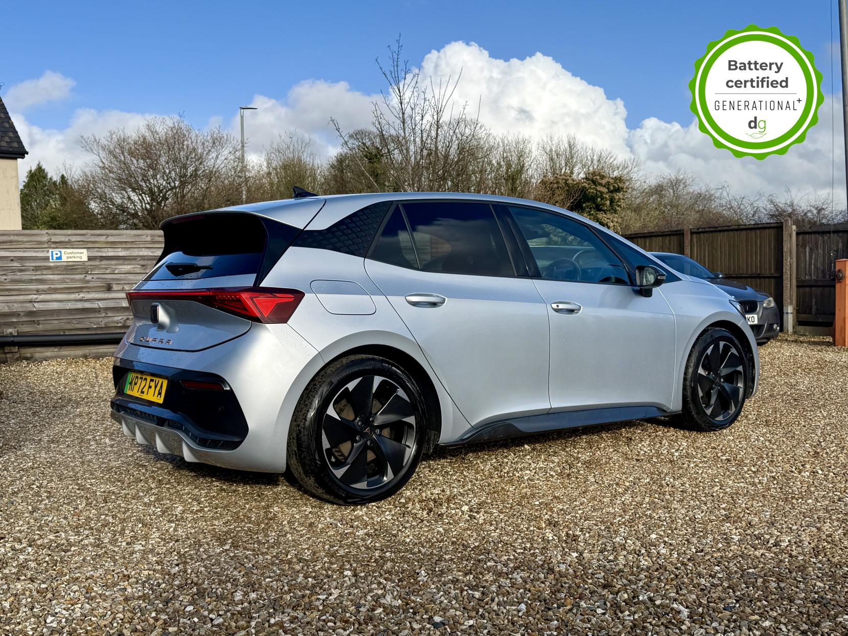 This particular Cupra Born is in excellent condition and fully prepared to our high standard, has 2 keys, 1 previous owner, and it is September 2026 until its next service or MOT is due. It also has an excellent 94% battery health. This high spec V2 edition comes with diamond cut alloy wheels, 12” infotainment system with SAT Nav, heated seats, heated steering wheel, dual zone climate control, keyless entry, HUD. Lots of safety equipment comes as standard including, adaptive cruise control incl. front assist, front and rear sensors, reverse camera, and forward collision warning. Led exterior lighting is included and so is wireless Apple CarPlay and Android Auto. As with all Cupra’s a clear and well-designed digital dash is standard, and it has an excellent easy to use infotainment system. The Cupra Born is has a real-world range of around 250 miles from its 58kWh battery. If you are looking for a stylish, practical and high-tech Cupra Born in great condition this could be the perfect EV for you. Unlike Car Supermarkets we have no hidden admin fees, there is no pressure selling, and we offer low finance rates. We also perform battery health checks on all our vehicles, so you can have the comfort of knowing the battery state of health of the EV you choose. Hopefully you will choose to buy your EV from Drive Green, as we are a multi award winning EV specialist and sustainable business, here to help you get the most from your switch to electric driving. Contact us to book an appointment to view and test drive this car, or to find out more about switching to electric driving, and to discuss purchase options, including buying on finance, and our remote buying and delivery service. We are also able to supply your home charge point also, making the switch to electric driving super easy for you. Drive Green is a true EV specialist and the UK’s biggest electric car only dealership, since 2017. FORECOURT VISITS AND TEST DRIVES BY APPOINTMENT ONLY.