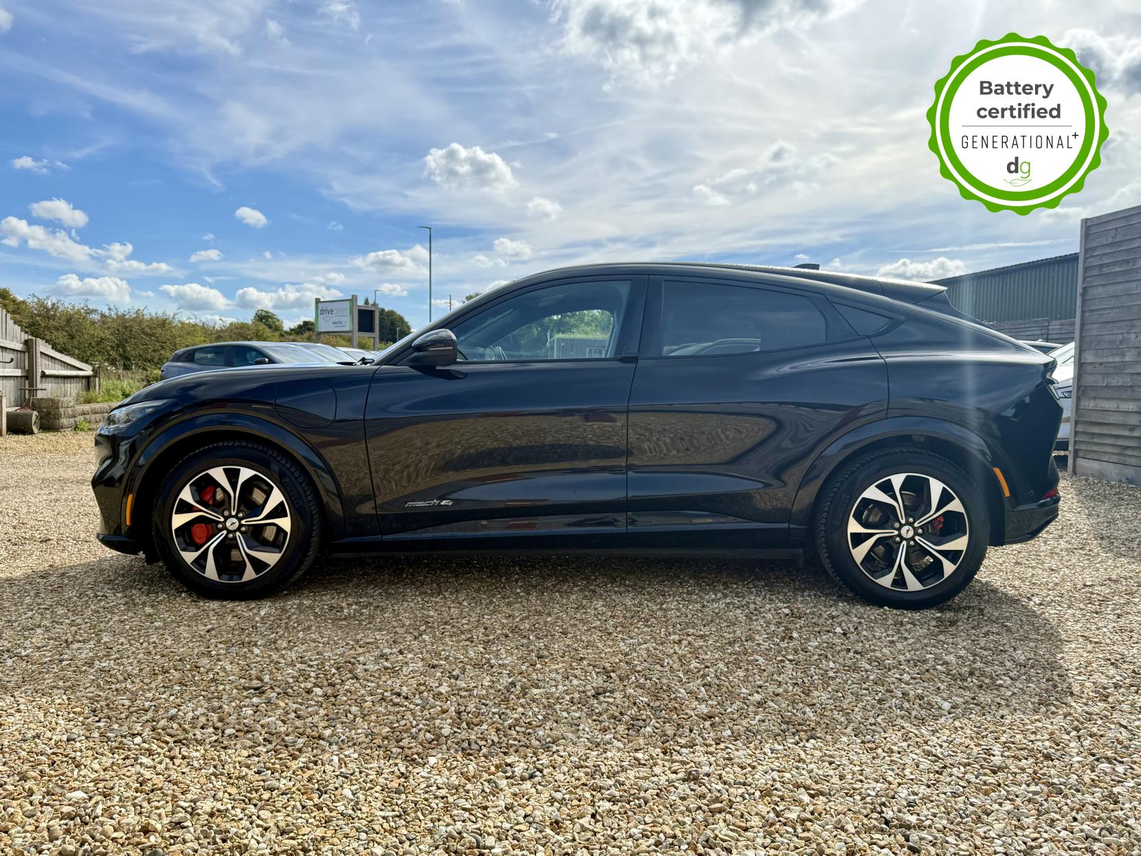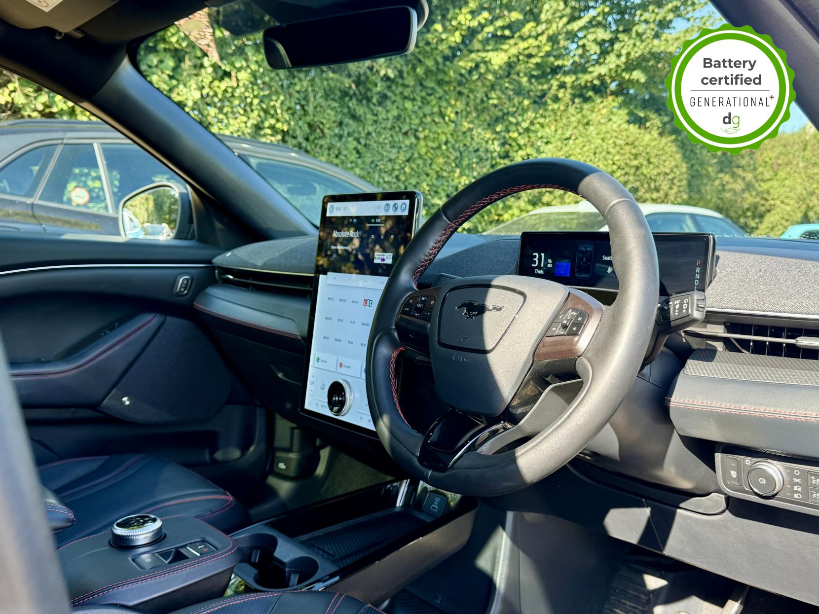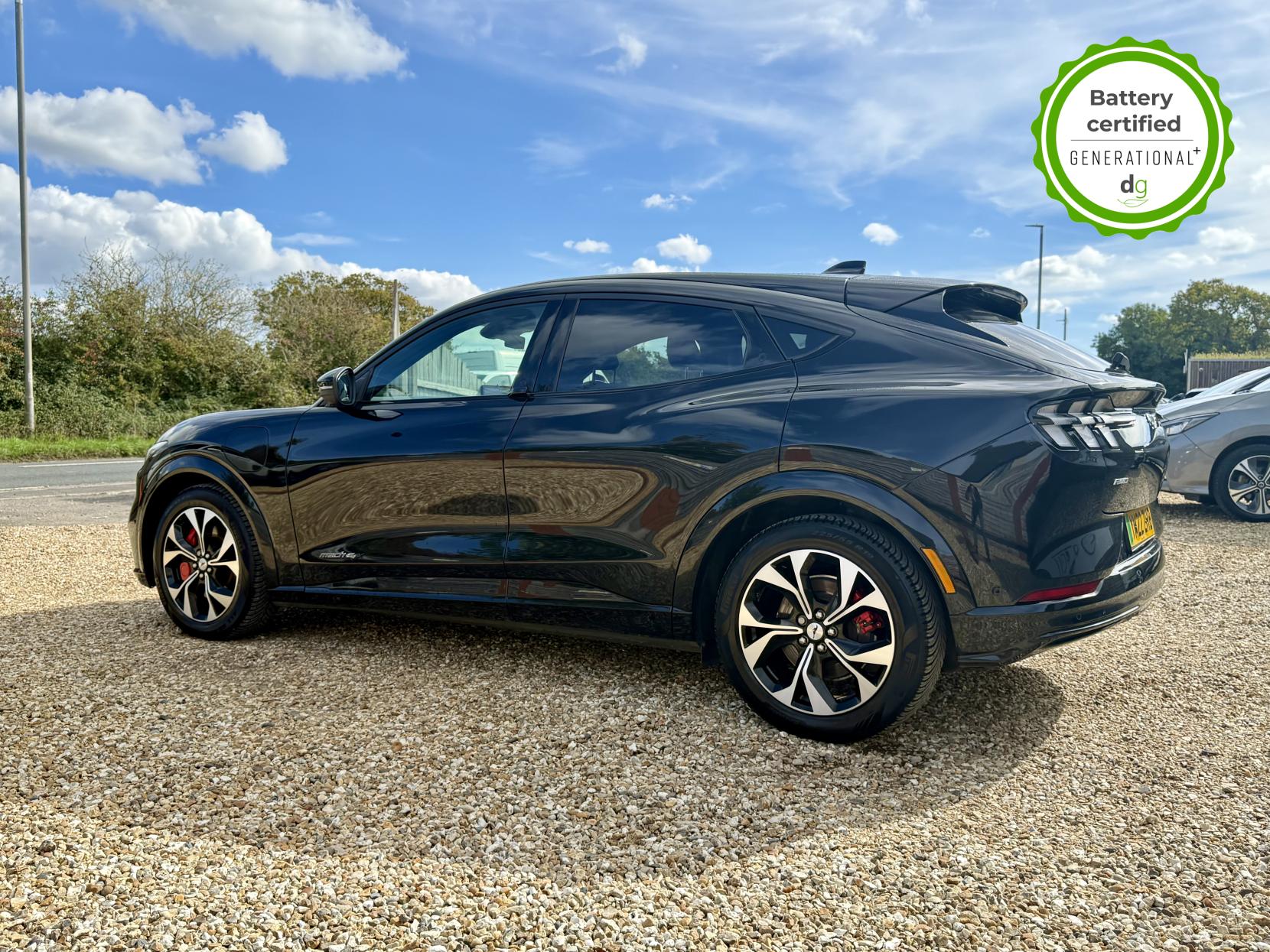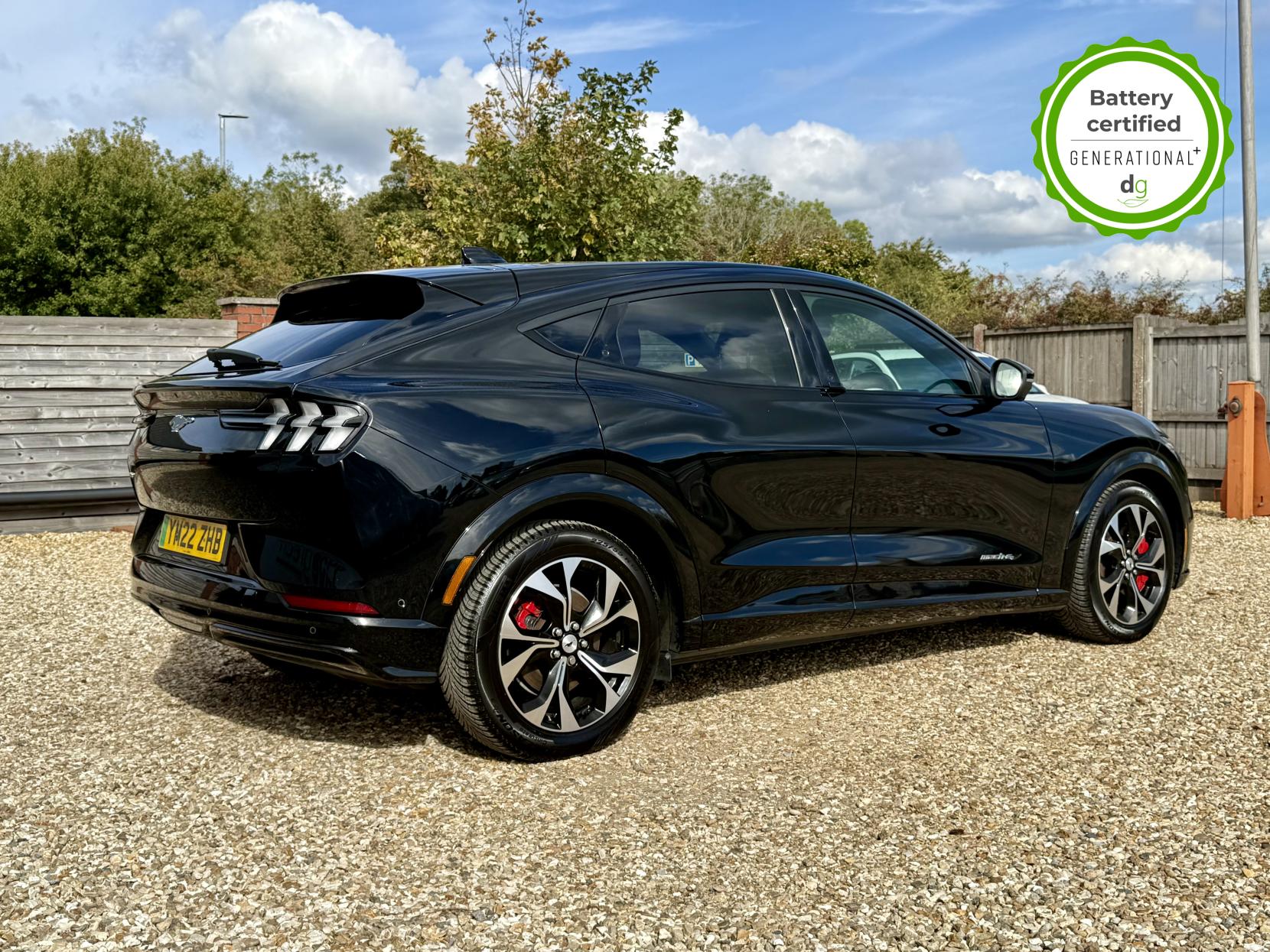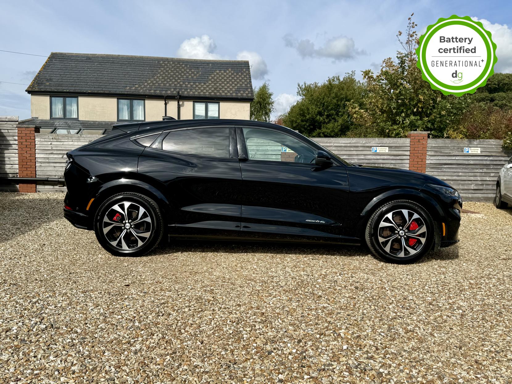 This stunning Mustang is in excellent condition and fully prepared to our high standard, has 2 keys, one former owner, and it will be September 2026 until its next service, and August 2026 for its next MOT. The Mustang Mach-E a stunning SUV with the style and road presence you would expect from a Mustang. It offers all the thrill of being a Mustang, but with an effortless and punchy electric drive, with an impressive motor power of 346 bhp and torque of 428 lbs/ft, this higher performance AWD model delivers the performance and feel you expect from a Mustang. The 88 kWh battery capacity gives an excellent long range of around 300 miles, depending on the time of year and your driving style, making it a very capable long-range EV. The battery can be fully charged at the right charging station, in just 45 minutes. It has plenty of premium spec, a great infotainment system and a quality build. It has LED lights, memory seats, heated front and rear seats, heated steering wheel, mustang-shaped puddle lights, wireless charging, over-the-air updates, adaptive cruise control, lane assist, motorised boot, and a 360o camera system and parking sensors. Unlike Car Supermarkets we have no hidden admin fees, there is no pressure selling, and we offer low finance rates. We also perform battery health checks on all our vehicles, so you can have the comfort of knowing the battery state of health of the EV you choose. Hopefully you will choose to buy your EV from Drive Green, as we are a multi award winning EV specialist and sustainable business, here to help you get the most from your switch to electric driving. Contact us to book an appointment to view and test drive this car, or to find out more about switching to electric driving, and to discuss purchase options, including buying on finance, and our remote buying and delivery service. We are also able to supply your home charge point also, making the switch to electric driving super easy for you. Drive Green is a true EV specialist and the UK’s biggest electric car only dealership, since 2017. FORECOURT VISITS AND TEST DRIVES BY APPOINTMENT ONLY.