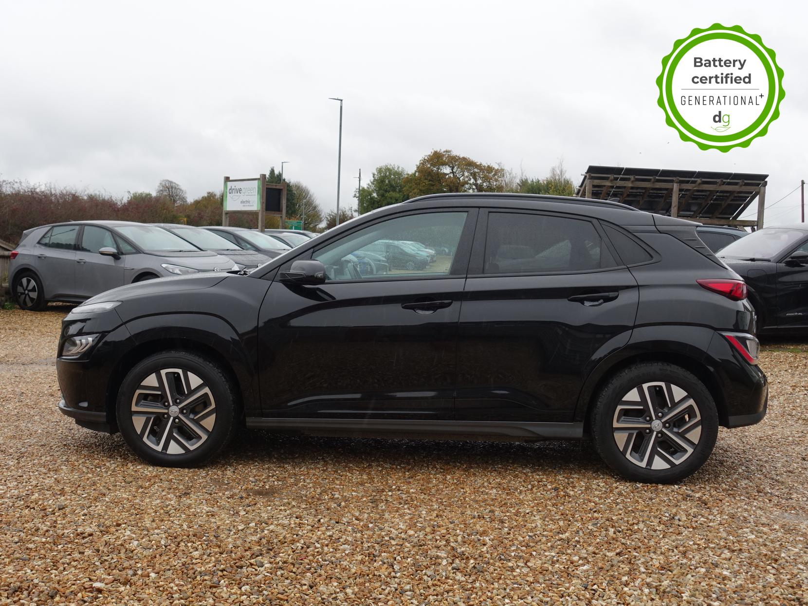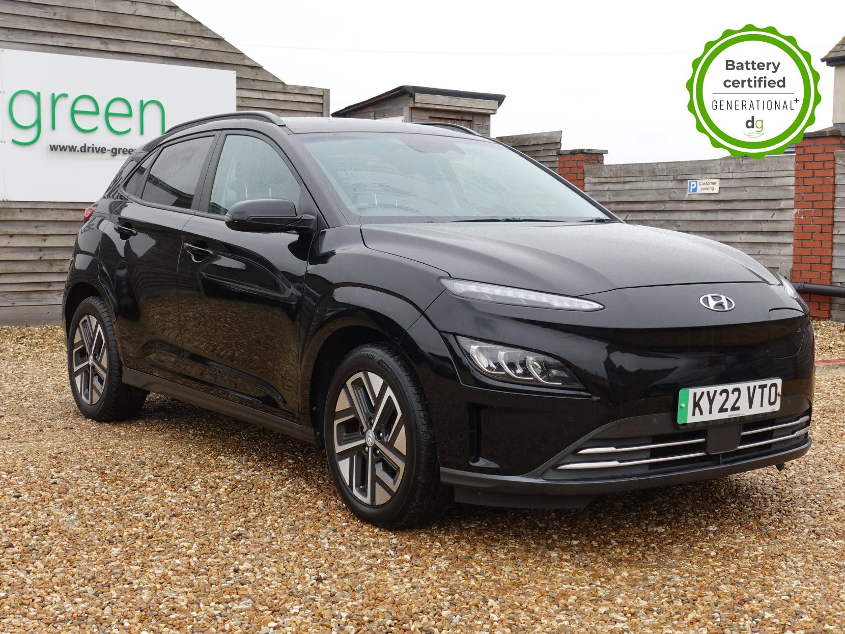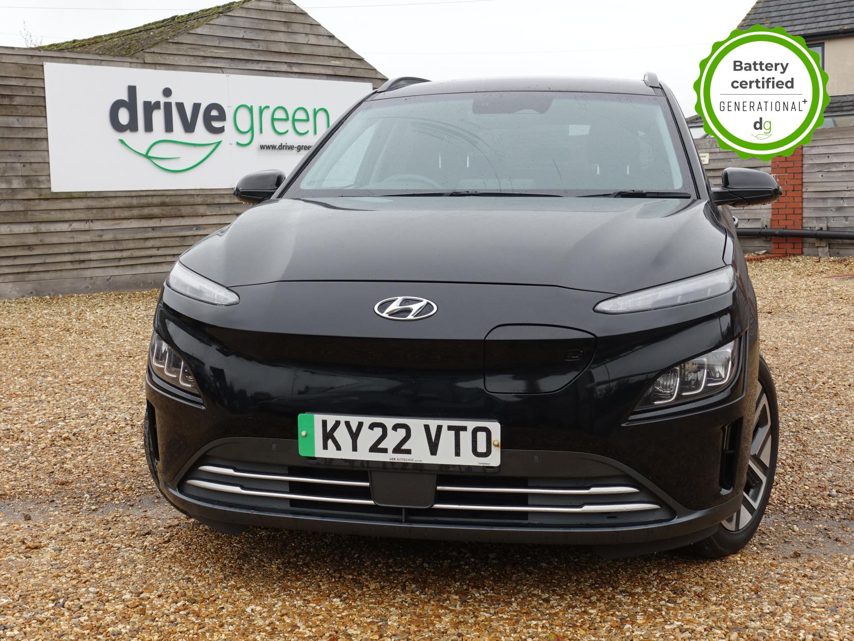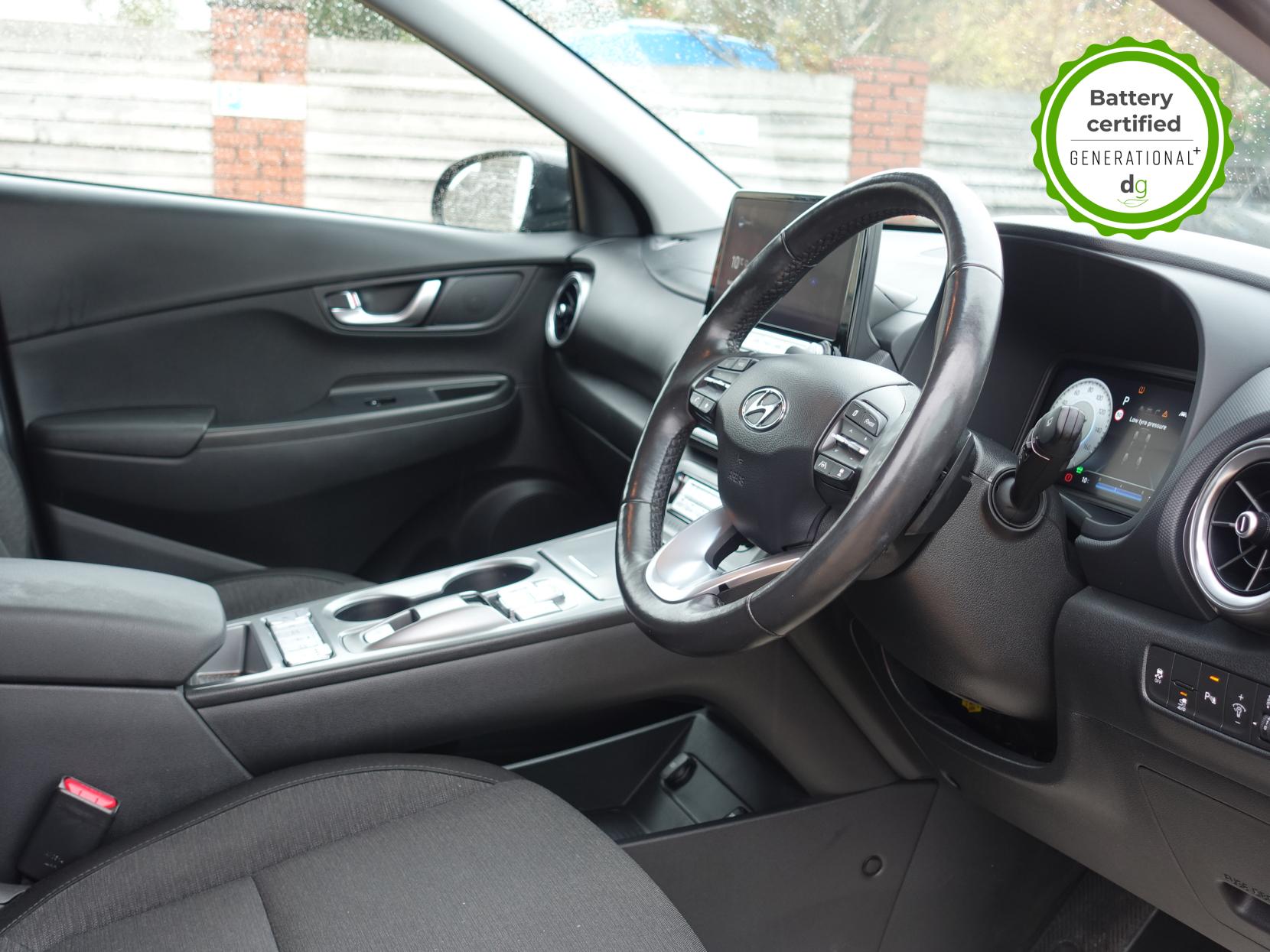 This particular Kona is in excellent condition and fully prepared to our high standard, has one prior owner, and it will be October 2026 until its next service or MOT is due. The Hyundai Kona is a premium compact SUV, with an incredible 260-280 mile range, a practical boot, and roof rails. As well as its industry topping range, it is also capable of 75kW rapid charging. It has Apple Car Play and Android Auto, In-built sat nav and media centre with DAB, adjustable regen braking and a sport mode. If you are looking for a great value medium sized stylish EV, in great condition, this could be the perfect car for you. Unlike Car Supermarkets we have no hidden admin fees, there is no pressure selling, and we offer low finance rates. We also perform battery health checks on all our vehicles, so you can have the comfort of knowing the battery state of health of the EV you choose. Hopefully you will choose to buy your EV from Drive Green, as we are a multi award winning EV specialist and sustainable business, here to help you get the most from your switch to electric driving. Contact us to book an appointment to view and test drive this car, or to find out more about switching to electric driving, and to discuss purchase options, including buying on finance, and our remote buying and delivery service. We are also able to supply your home charge point also, making the switch to electric driving super easy for you. Supplied with 1 key. Drive Green is a true EV specialist and the UK’s biggest electric car only dealership, since 2017. FORECOURT VISITS AND TEST DRIVES BY APPOINTMENT ONLY.