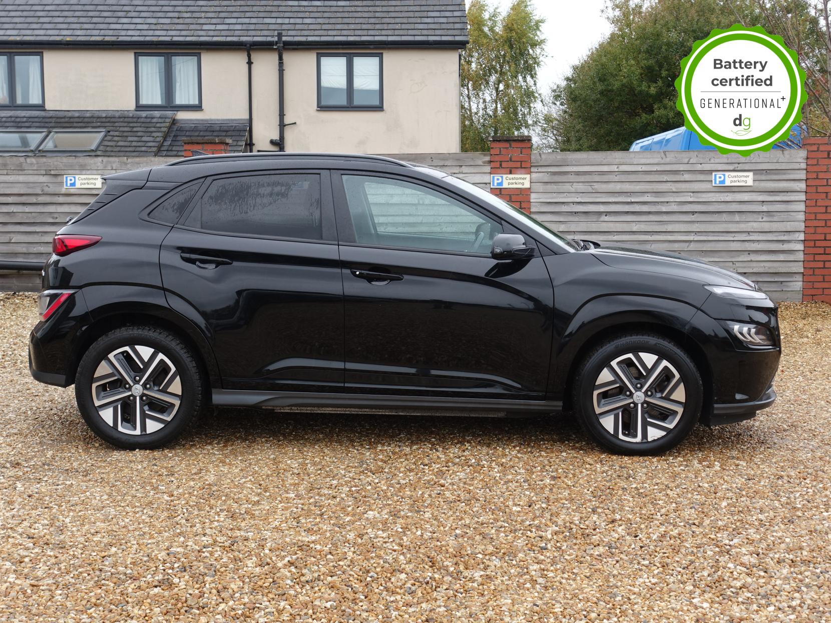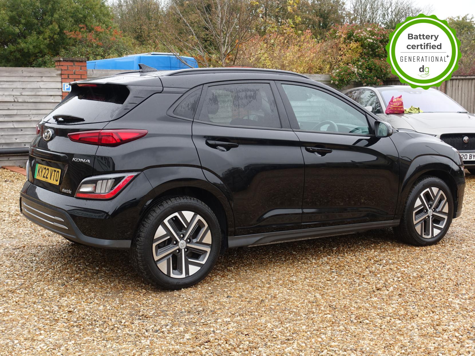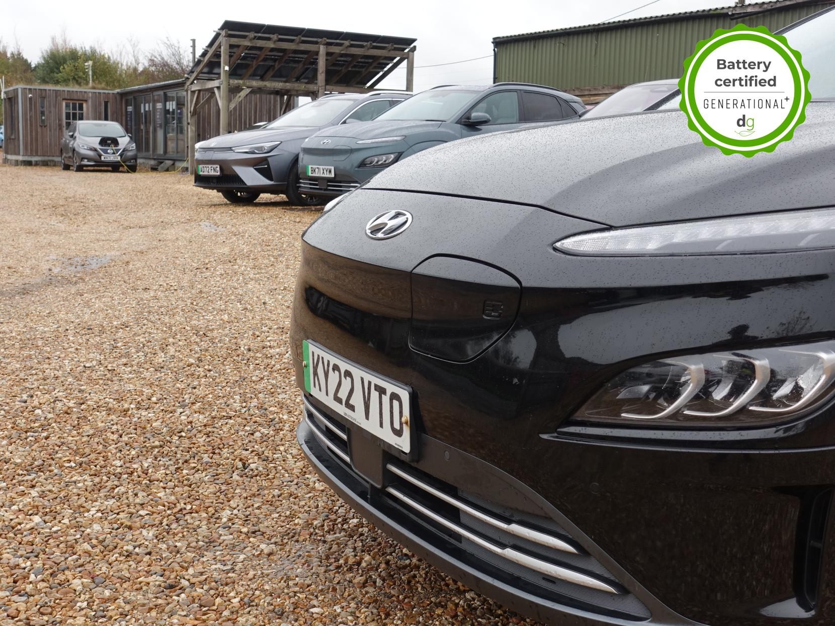 This particular Kona is in excellent condition and fully prepared to our high standard, has one prior owner, and it will be October 2026 until its next service or MOT is due. The Hyundai Kona is a premium compact SUV, with an incredible 260-280 mile range, a practical boot, and roof rails. As well as its industry topping range, it is also capable of 75kW rapid charging. It has Apple Car Play and Android Auto, In-built sat nav and media centre with DAB, adjustable regen braking and a sport mode. If you are looking for a great value medium sized stylish EV, in great condition, this could be the perfect car for you. Unlike Car Supermarkets we have no hidden admin fees, there is no pressure selling, and we offer low finance rates. We also perform battery health checks on all our vehicles, so you can have the comfort of knowing the battery state of health of the EV you choose. Hopefully you will choose to buy your EV from Drive Green, as we are a multi award winning EV specialist and sustainable business, here to help you get the most from your switch to electric driving. Contact us to book an appointment to view and test drive this car, or to find out more about switching to electric driving, and to discuss purchase options, including buying on finance, and our remote buying and delivery service. We are also able to supply your home charge point also, making the switch to electric driving super easy for you. Supplied with 1 key. Drive Green is a true EV specialist and the UK’s biggest electric car only dealership, since 2017. FORECOURT VISITS AND TEST DRIVES BY APPOINTMENT ONLY.