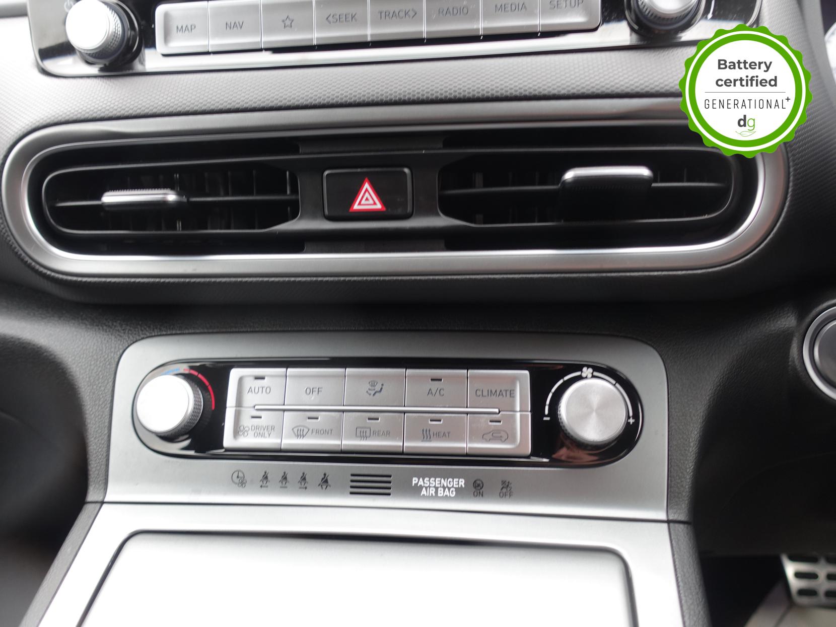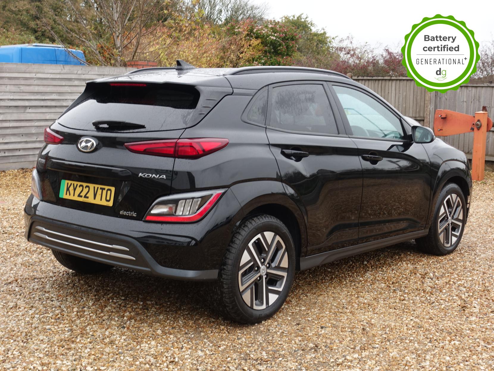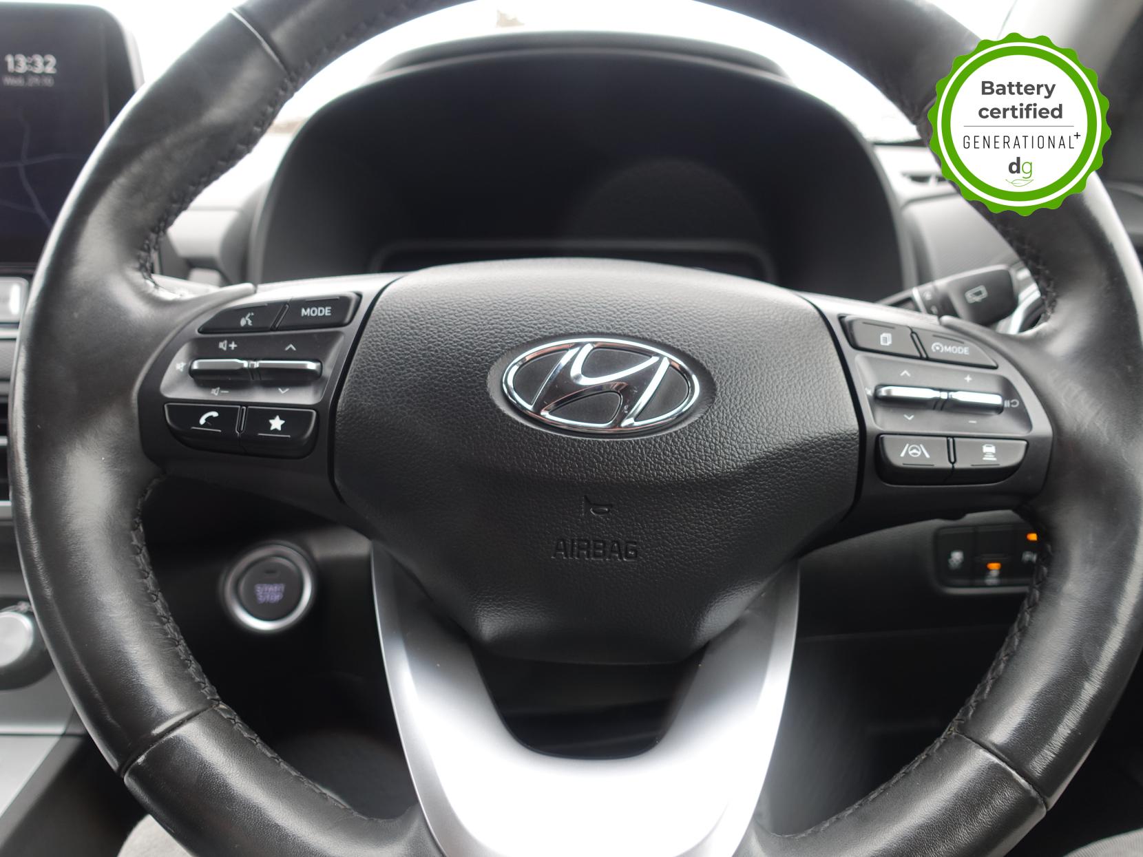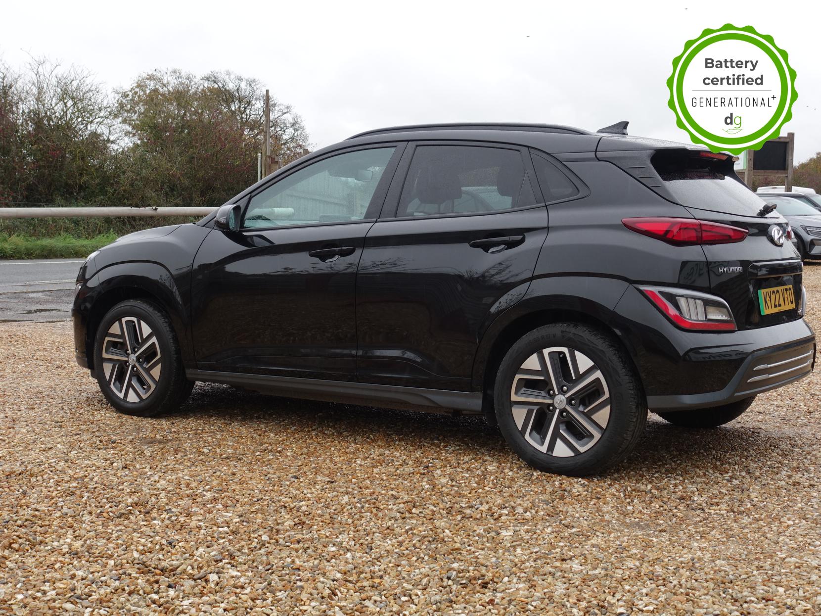 This particular Kona is in excellent condition and fully prepared to our high standard, has one prior owner, and it will be October 2026 until its next service or MOT is due. The Hyundai Kona is a premium compact SUV, with an incredible 260-280 mile range, a practical boot, and roof rails. As well as its industry topping range, it is also capable of 75kW rapid charging. It has Apple Car Play and Android Auto, In-built sat nav and media centre with DAB, adjustable regen braking and a sport mode. If you are looking for a great value medium sized stylish EV, in great condition, this could be the perfect car for you. Unlike Car Supermarkets we have no hidden admin fees, there is no pressure selling, and we offer low finance rates. We also perform battery health checks on all our vehicles, so you can have the comfort of knowing the battery state of health of the EV you choose. Hopefully you will choose to buy your EV from Drive Green, as we are a multi award winning EV specialist and sustainable business, here to help you get the most from your switch to electric driving. Contact us to book an appointment to view and test drive this car, or to find out more about switching to electric driving, and to discuss purchase options, including buying on finance, and our remote buying and delivery service. We are also able to supply your home charge point also, making the switch to electric driving super easy for you. Supplied with 1 key. Drive Green is a true EV specialist and the UK’s biggest electric car only dealership, since 2017. FORECOURT VISITS AND TEST DRIVES BY APPOINTMENT ONLY.