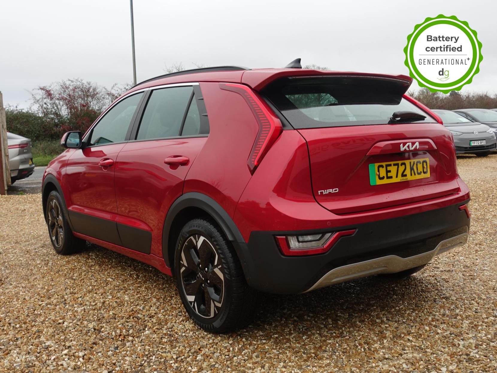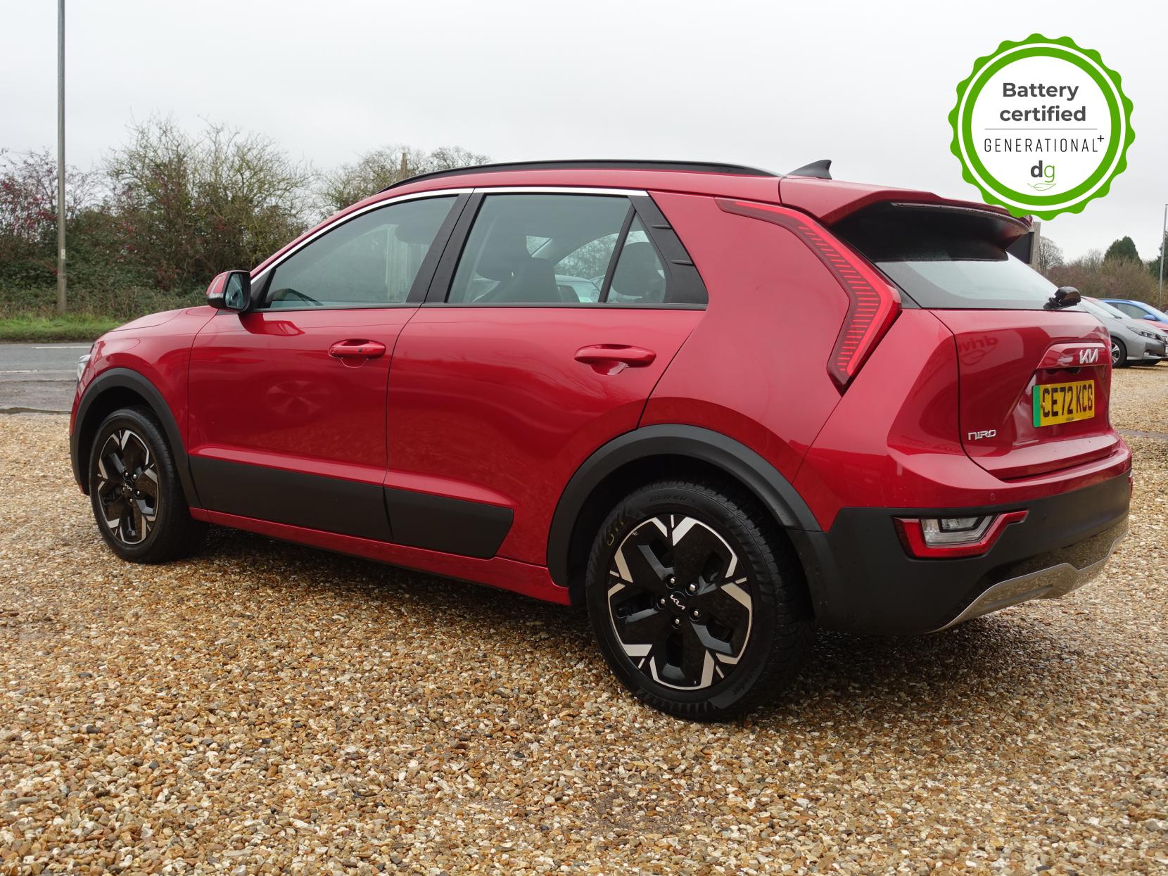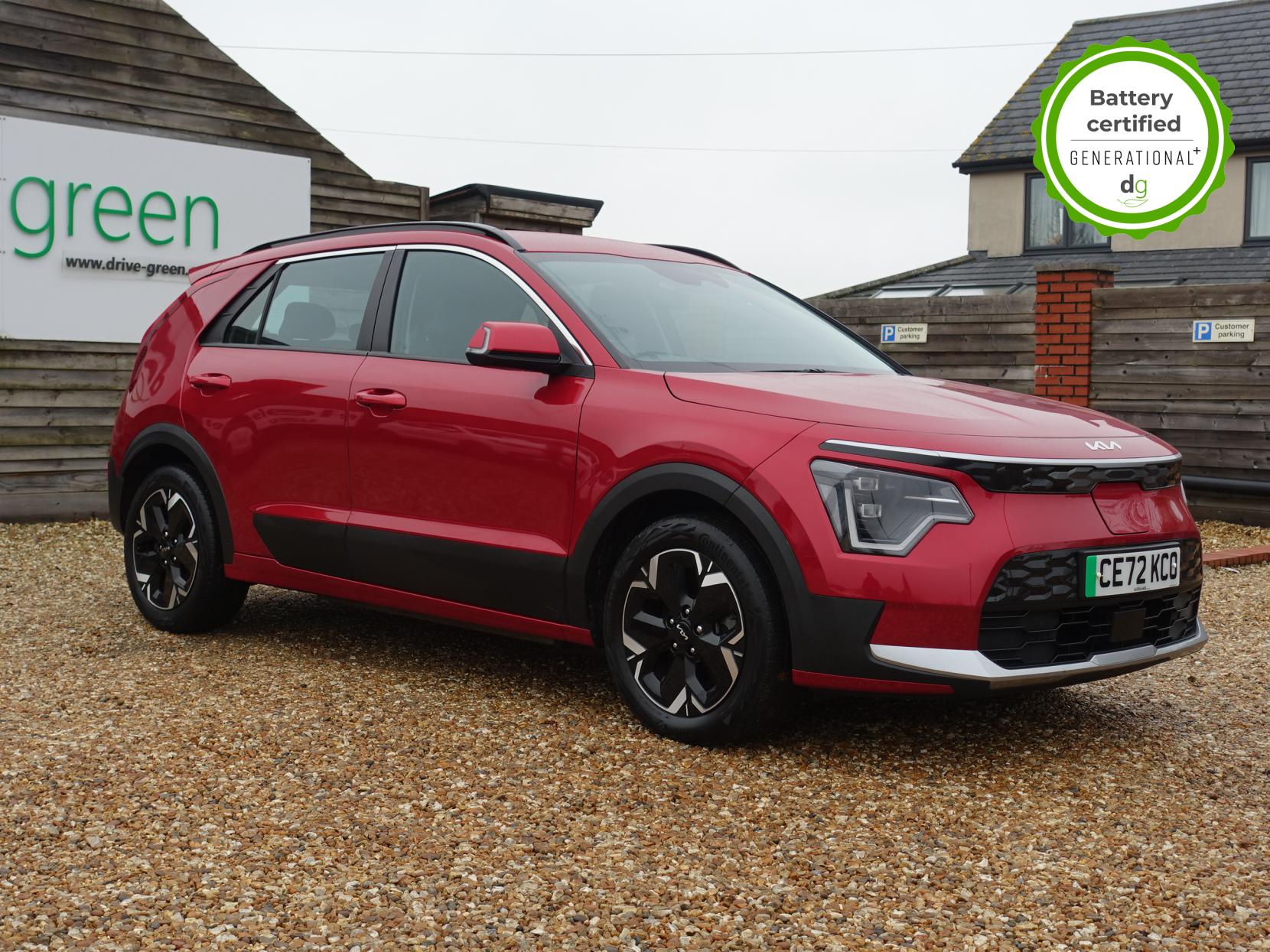 This E-Niro is in excellent condition and fully prepared to our high standard, has 1 former keeper, and it will be November 2026 until its next service and September 2026 when its MOT is due. It is also reading a perfect 100% battery state of health. The E-Niro is a great all-rounder – a generously sized and practical family EV, with a real-world range of around 250-300 miles, depending on your driving style and time of year. The level 2 E-Niro features some impressive spec. 17′ alloys, roof rails.The E-Niro also features some great safety spec. If you are looking for an approachably priced, long range and practically sized family EV, this could be the perfect car for you. Unlike Car Supermarkets we have no hidden admin fees, there is no pressure selling, and we offer low finance rates. We also perform battery health checks on all our vehicles, so you can have the comfort of knowing the battery state of health of the EV you choose. Hopefully you will choose to buy your EV from Drive Green, as we are a multi award winning EV specialist and sustainable business, here to help you get the most from your switch to electric driving. Contact us to book an appointment to view and test drive this car, or to find out more about switching to electric driving, and to discuss purchase options, including buying on finance, and our remote buying and delivery service. We are also able to supply your home charge point also, making the switch to electric driving super easy for you. Drive Green is a true EV specialist and the UK’s biggest electric car only dealership, since 2017. Car supplied with 1 key. FORECOURT VISITS AND TEST DRIVES BY APPOINTMENT ONLY.