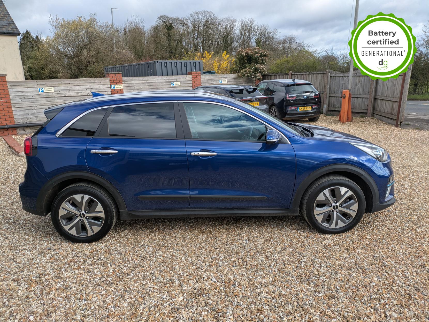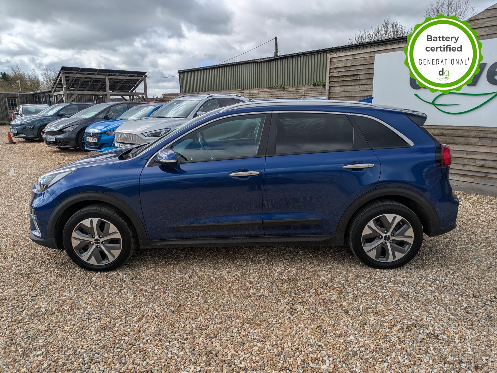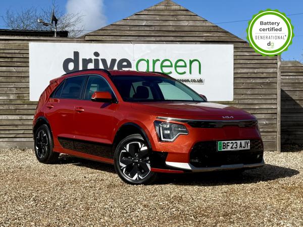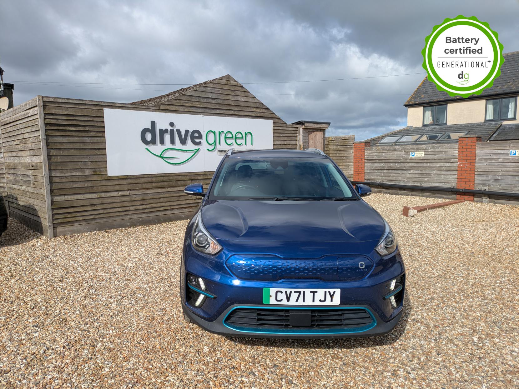 This E-Niro is in excellent condition and fully prepared to our high standard, has 2 keys, 1 previous owner, and it will have a minimum of 6 months until its next service and its MOT is due February 2027. It is also showing an excellent 100% battery health. The E-Niro is a great all-rounder – a generously sized and practical family EV, with a real-world range of around 250-300 miles, depending on your driving style and time of year. The level 3 E-Niro features some impressive spec. 17′ alloys, roof rails, power adjustable driver’s seat, and heated front seats. The E-Niro also features some great safety spec. If you are looking for an approachably priced, long range and practically sized family EV, this could be the perfect car for you. Unlike Car Supermarkets we have no hidden admin fees, there is no pressure selling, and we offer low finance rates. We also perform battery health checks on all our vehicles, so you can have the comfort of knowing the battery state of health of the EV you choose. Hopefully you will choose to buy your EV from Drive Green, as we are a multi award winning EV specialist and sustainable business, here to help you get the most from your switch to electric driving. Contact us to book an appointment to view and test drive this car, or to find out more about switching to electric driving, and to discuss purchase options, including buying on finance, and our remote buying and delivery service. We are also able to supply your home charge point also, making the switch to electric driving super easy for you. Drive Green is a true EV specialist and the UK’s biggest electric car only dealership, since 2017. FORECOURT VISITS AND TEST DRIVES BY APPOINTMENT ONLY.