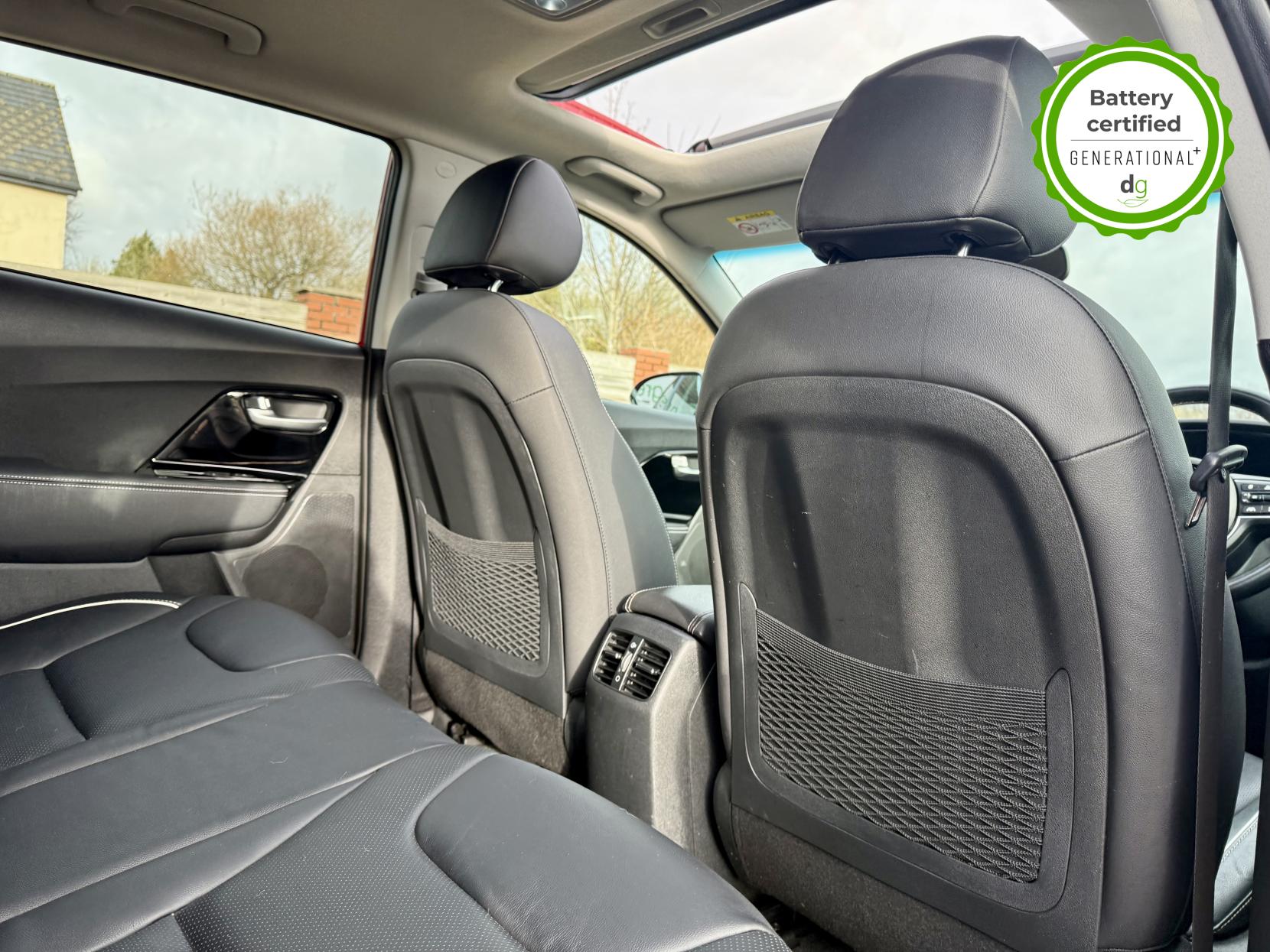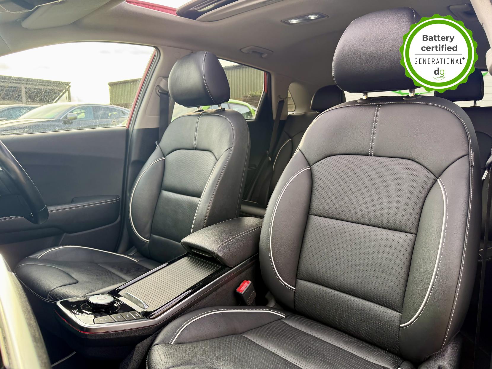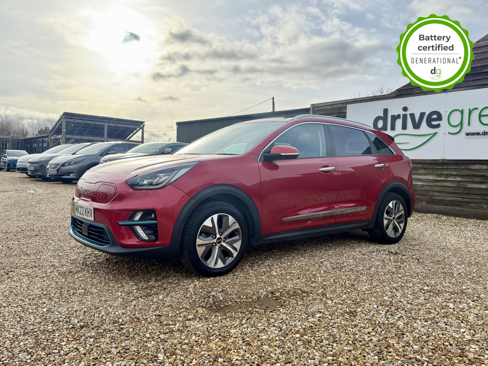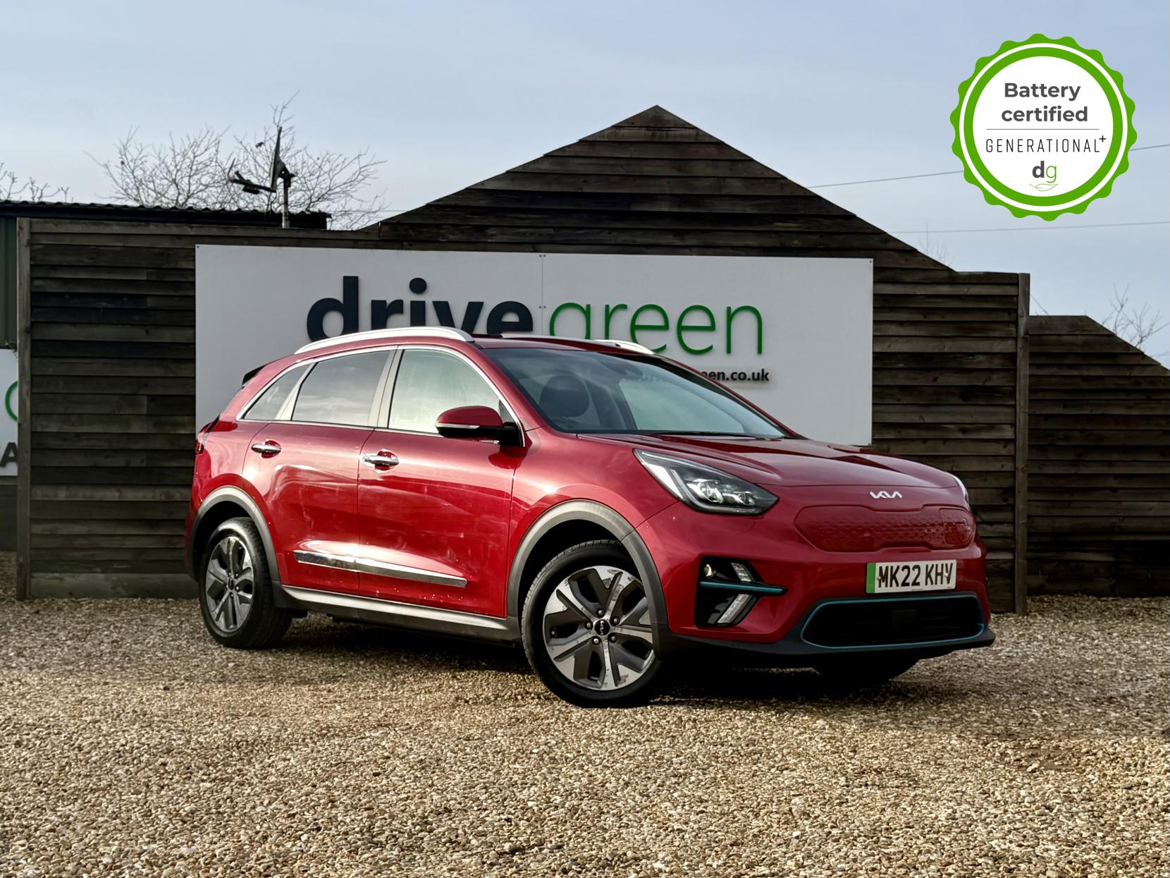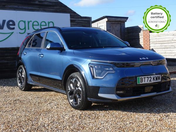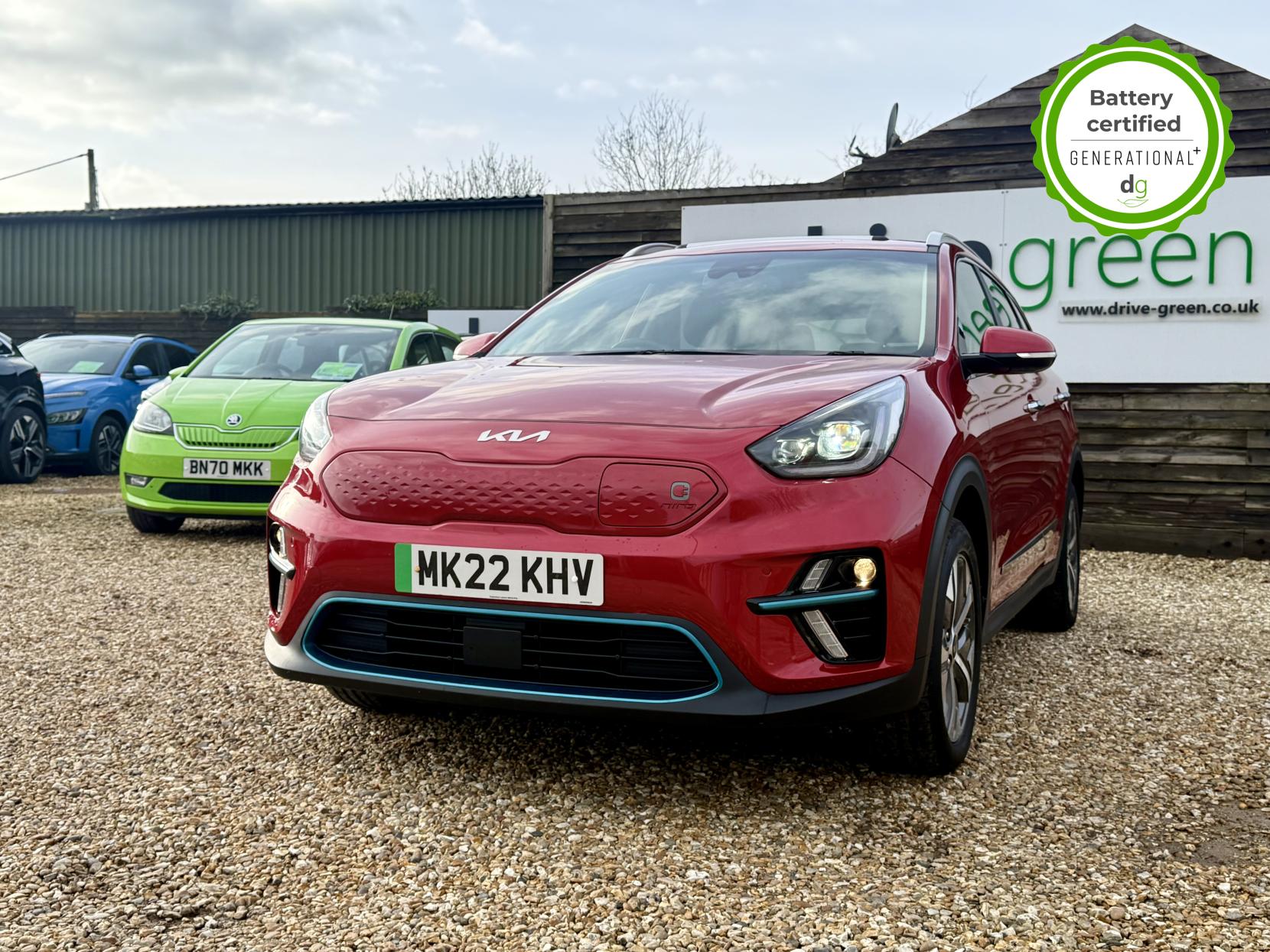 This E-Niro is in excellent condition and fully prepared to our high standard, has 2 keys, 1 previous owner and it will be December 2026 until its next service or MOT is due. It also is reading a fantastic 100% battery state of health! The E-Niro is a great all-rounder – a generously sized and practical family EV, with a real-world range of around 250-300 miles, depending on your driving style and time of year. The top spec 4+ E-Niro features some impressive spec. Opening pan roof, 17′ alloys, roof rails, power adjustable memory driver’s seat, heated leather front and rear seats, heated steering wheel, and an 8 speakers JBL premium sound system. The 4+ also comes with a HEAT PUMP, which is a high efficiency heating system to give you even greater range in the winter months. The E-Niro also features some great safety spec including adaptive cruise control with lane and follow assist, emergency stop signalling and a forward collision avoidance system. If you are looking for a long range practically sized family EV, this could be the perfect car for you. Unlike Car Supermarkets we have no hidden admin fees, there is no pressure selling, and we offer low finance rates. We also perform battery health checks on all our vehicles, so you can have the comfort of knowing the battery state of health of the EV you choose. Hopefully you will choose to buy your EV from Drive Green, as we are a multi award winning EV specialist and sustainable business, here to help you get the most from your switch to electric driving. Contact us to book an appointment to view and test drive this car, or to find out more about switching to electric driving, and to discuss purchase options, including buying on finance, and our remote buying and delivery service. We are also able to supply your home charge point also, making the switch to electric driving super easy for you. Drive Green is a true EV specialist and the UK’s biggest electric car only dealership, since 2017. FORECOURT VISITS AND TEST DRIVES BY APPOINTMENT ONLY.
