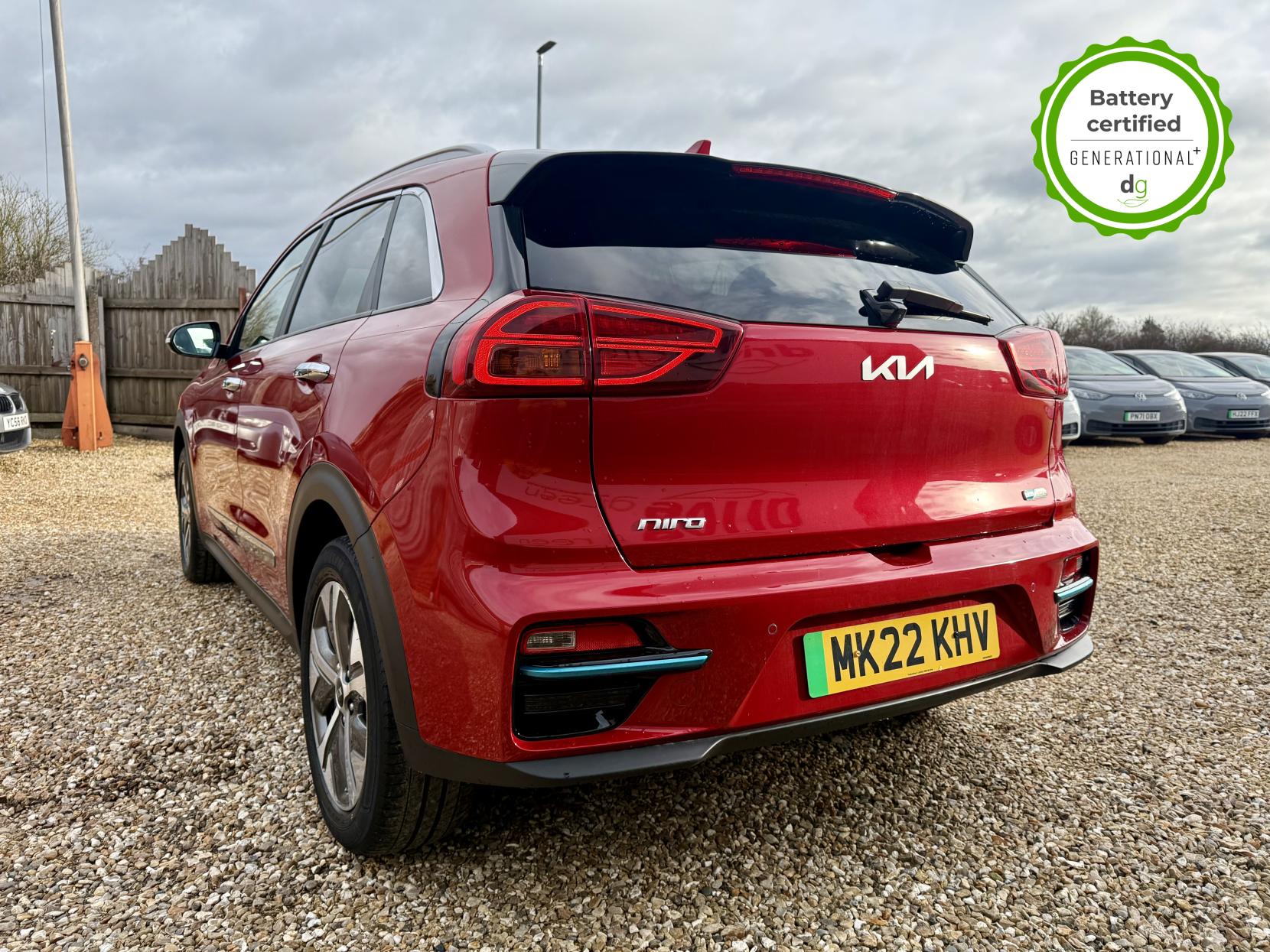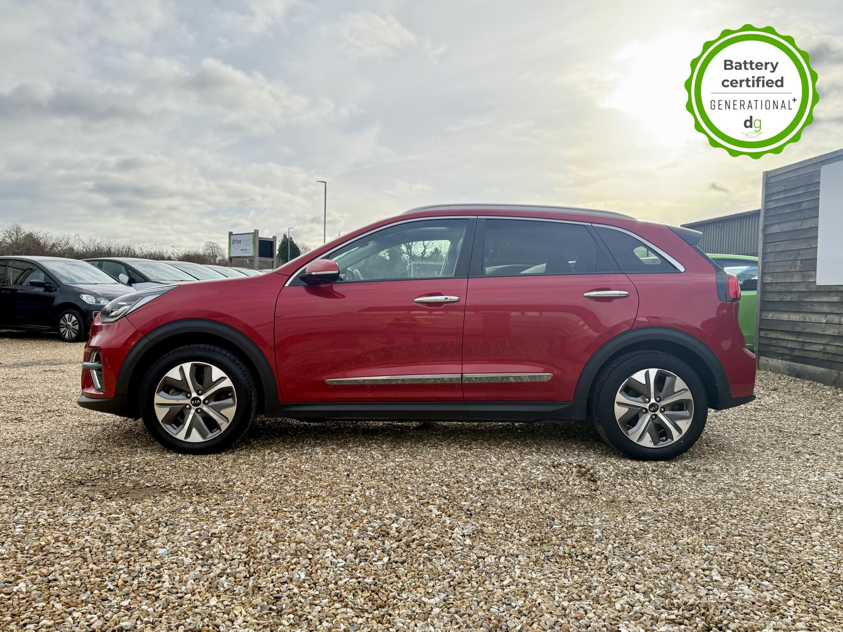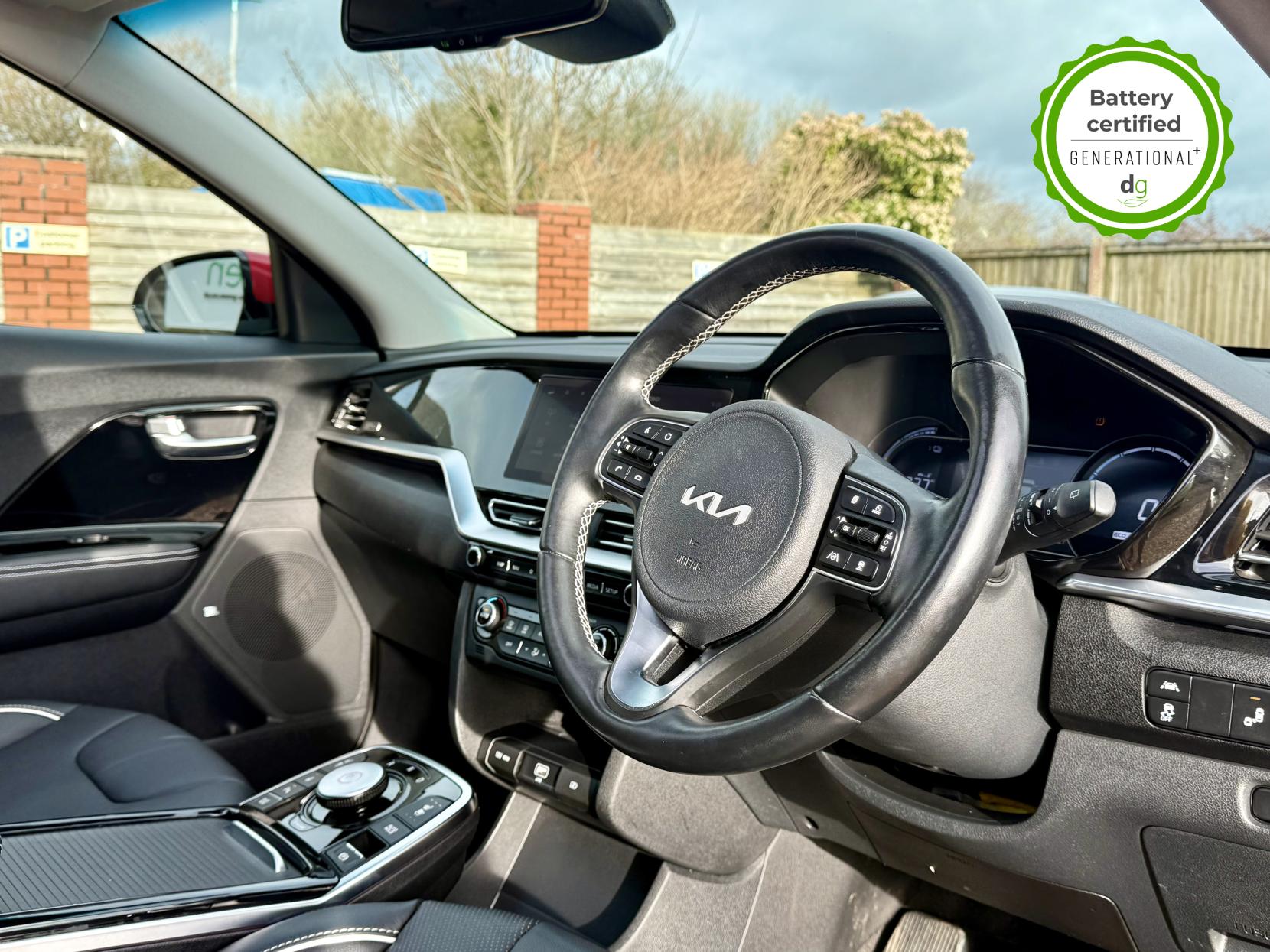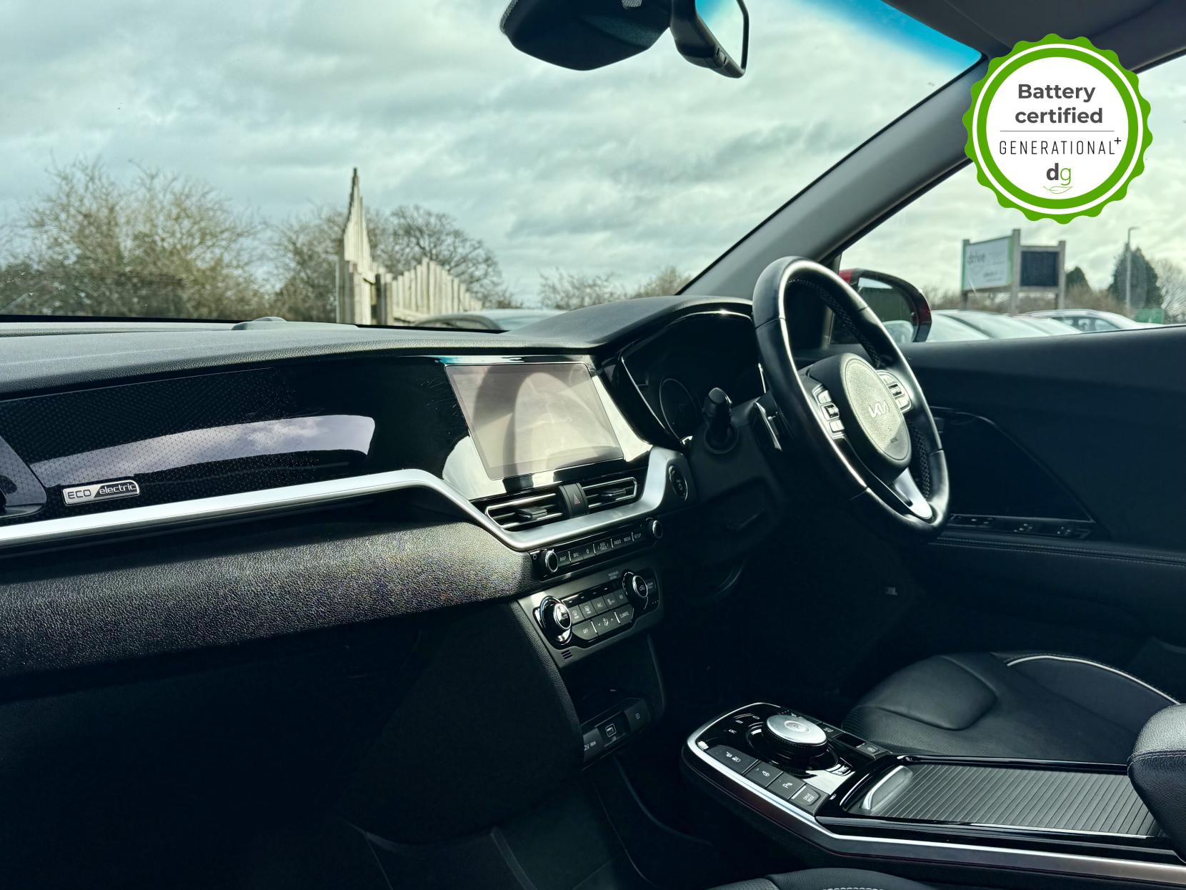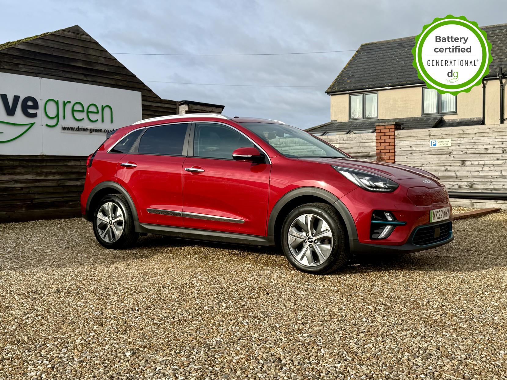 This E-Niro is in excellent condition and fully prepared to our high standard, has 2 keys, 1 previous owner and it will be December 2026 until its next service or MOT is due. It also is reading a fantastic 100% battery state of health! The E-Niro is a great all-rounder – a generously sized and practical family EV, with a real-world range of around 250-300 miles, depending on your driving style and time of year. The top spec 4+ E-Niro features some impressive spec. Opening pan roof, 17′ alloys, roof rails, power adjustable memory driver’s seat, heated leather front and rear seats, heated steering wheel, and an 8 speakers JBL premium sound system. The 4+ also comes with a HEAT PUMP, which is a high efficiency heating system to give you even greater range in the winter months. The E-Niro also features some great safety spec including adaptive cruise control with lane and follow assist, emergency stop signalling and a forward collision avoidance system. If you are looking for a long range practically sized family EV, this could be the perfect car for you. Unlike Car Supermarkets we have no hidden admin fees, there is no pressure selling, and we offer low finance rates. We also perform battery health checks on all our vehicles, so you can have the comfort of knowing the battery state of health of the EV you choose. Hopefully you will choose to buy your EV from Drive Green, as we are a multi award winning EV specialist and sustainable business, here to help you get the most from your switch to electric driving. Contact us to book an appointment to view and test drive this car, or to find out more about switching to electric driving, and to discuss purchase options, including buying on finance, and our remote buying and delivery service. We are also able to supply your home charge point also, making the switch to electric driving super easy for you. Drive Green is a true EV specialist and the UK’s biggest electric car only dealership, since 2017. FORECOURT VISITS AND TEST DRIVES BY APPOINTMENT ONLY.