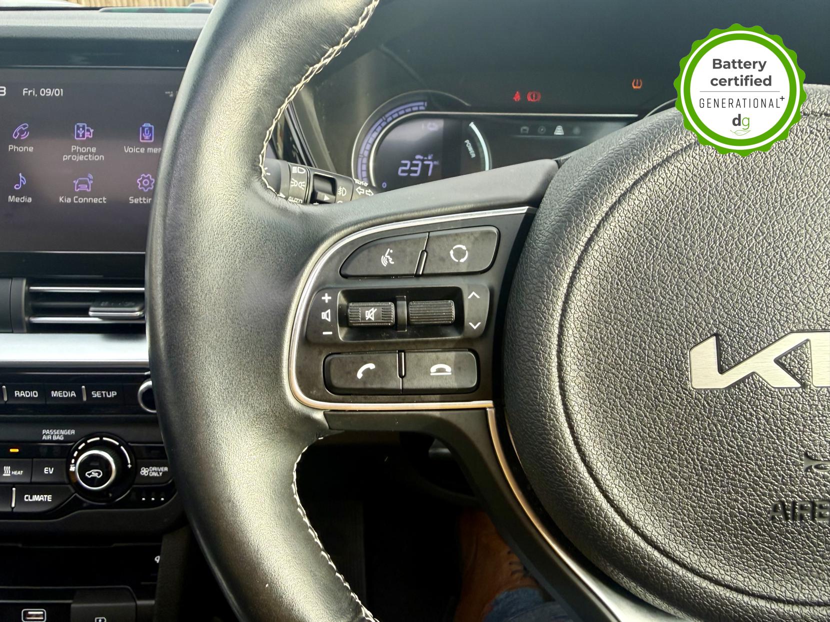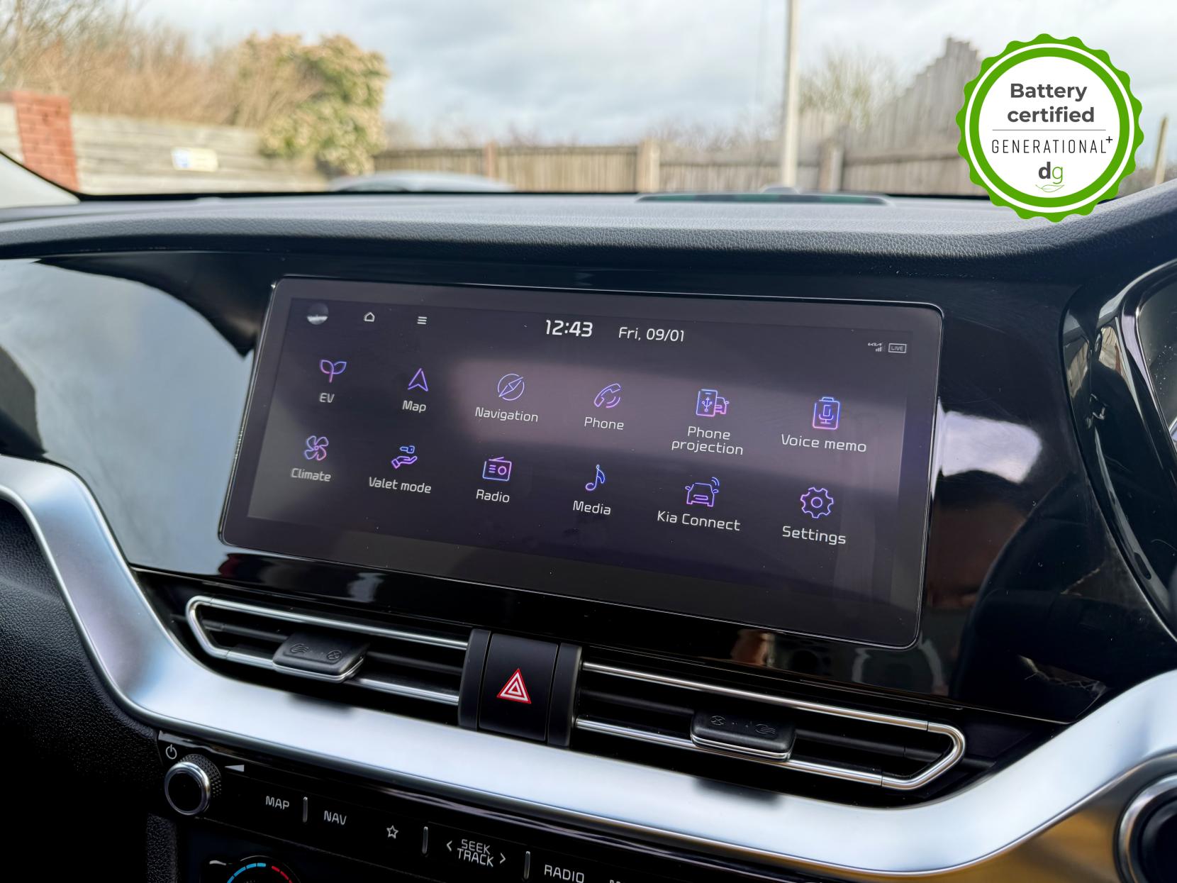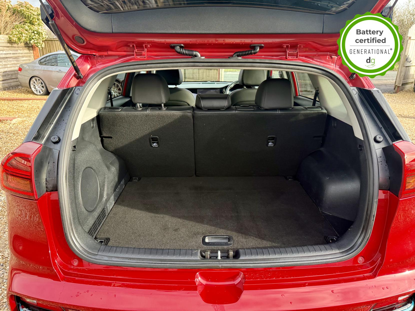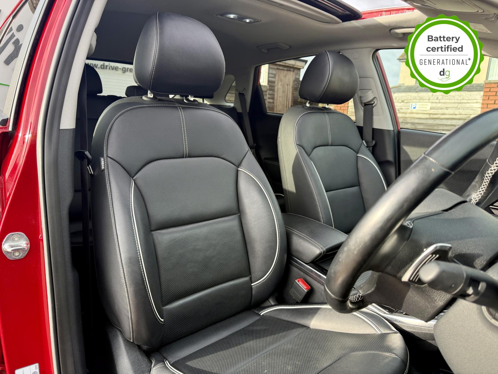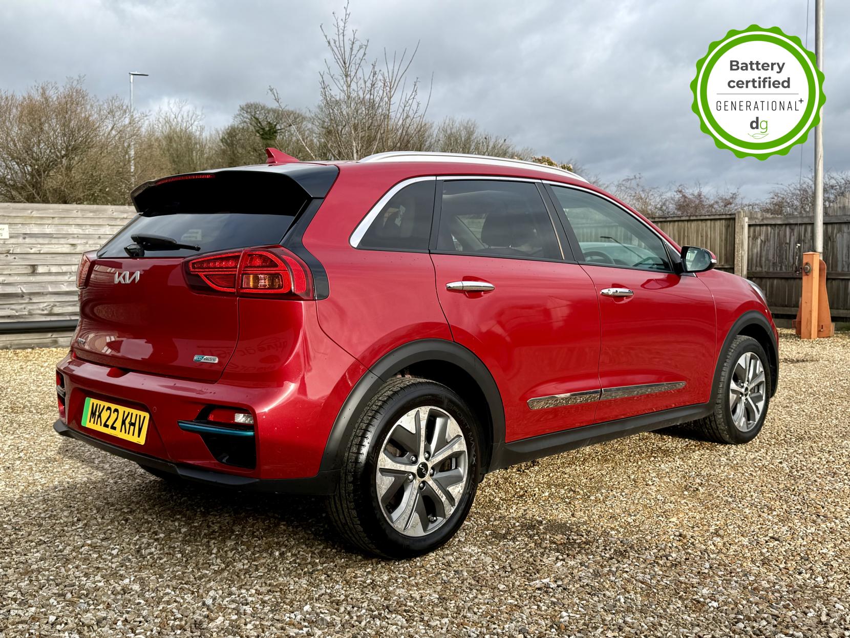 This E-Niro is in excellent condition and fully prepared to our high standard, has 2 keys, 1 previous owner and it will be December 2026 until its next service or MOT is due. It also is reading a fantastic 100% battery state of health! The E-Niro is a great all-rounder – a generously sized and practical family EV, with a real-world range of around 250-300 miles, depending on your driving style and time of year. The top spec 4+ E-Niro features some impressive spec. Opening pan roof, 17′ alloys, roof rails, power adjustable memory driver’s seat, heated leather front and rear seats, heated steering wheel, and an 8 speakers JBL premium sound system. The 4+ also comes with a HEAT PUMP, which is a high efficiency heating system to give you even greater range in the winter months. The E-Niro also features some great safety spec including adaptive cruise control with lane and follow assist, emergency stop signalling and a forward collision avoidance system. If you are looking for a long range practically sized family EV, this could be the perfect car for you. Unlike Car Supermarkets we have no hidden admin fees, there is no pressure selling, and we offer low finance rates. We also perform battery health checks on all our vehicles, so you can have the comfort of knowing the battery state of health of the EV you choose. Hopefully you will choose to buy your EV from Drive Green, as we are a multi award winning EV specialist and sustainable business, here to help you get the most from your switch to electric driving. Contact us to book an appointment to view and test drive this car, or to find out more about switching to electric driving, and to discuss purchase options, including buying on finance, and our remote buying and delivery service. We are also able to supply your home charge point also, making the switch to electric driving super easy for you. Drive Green is a true EV specialist and the UK’s biggest electric car only dealership, since 2017. FORECOURT VISITS AND TEST DRIVES BY APPOINTMENT ONLY.