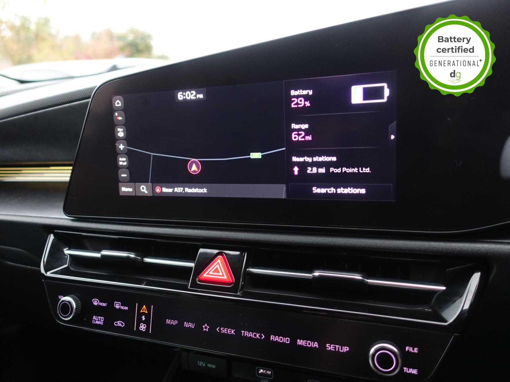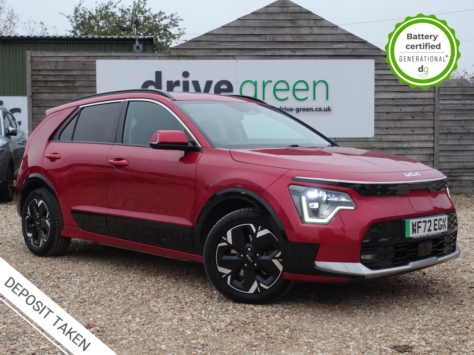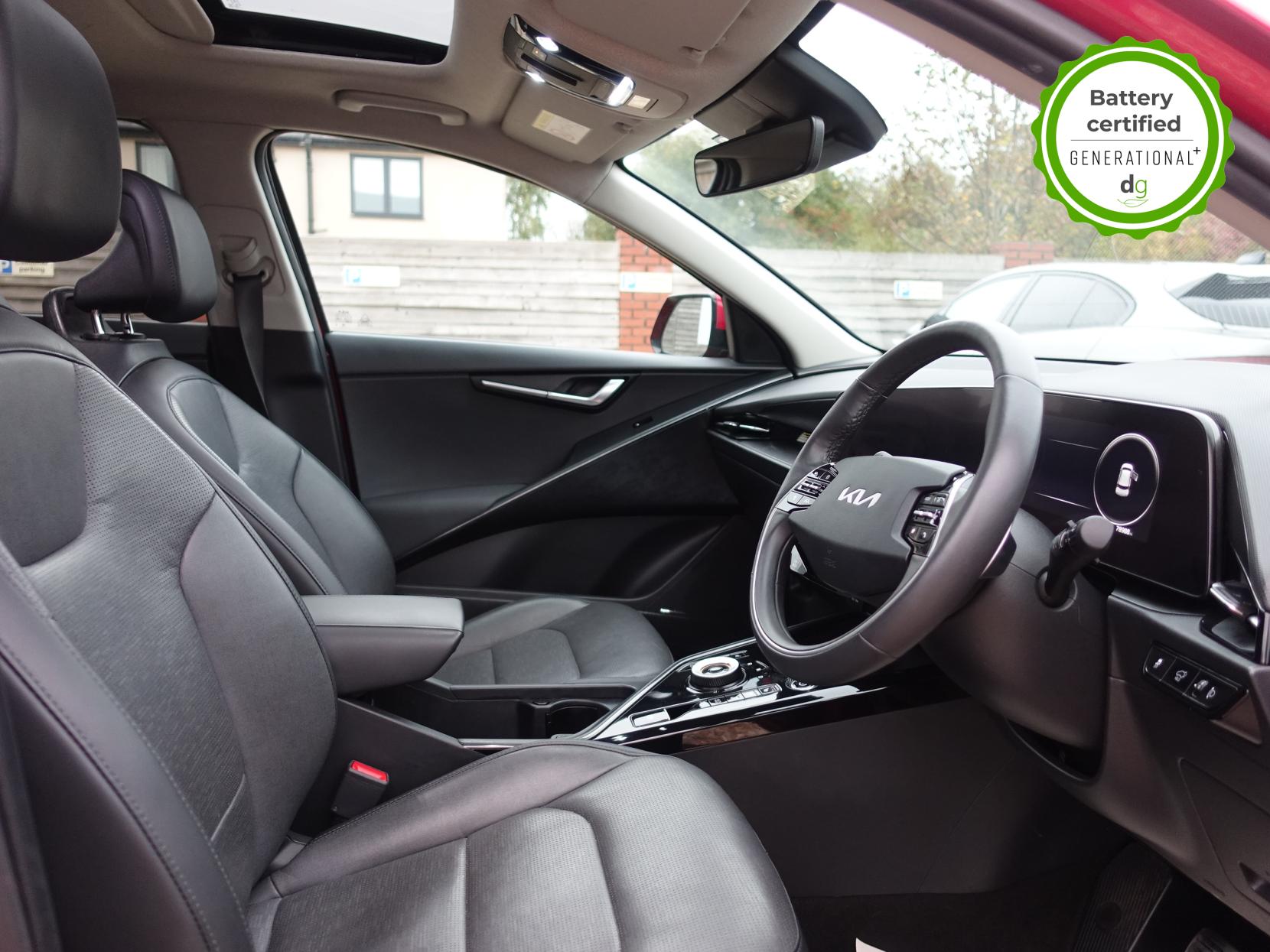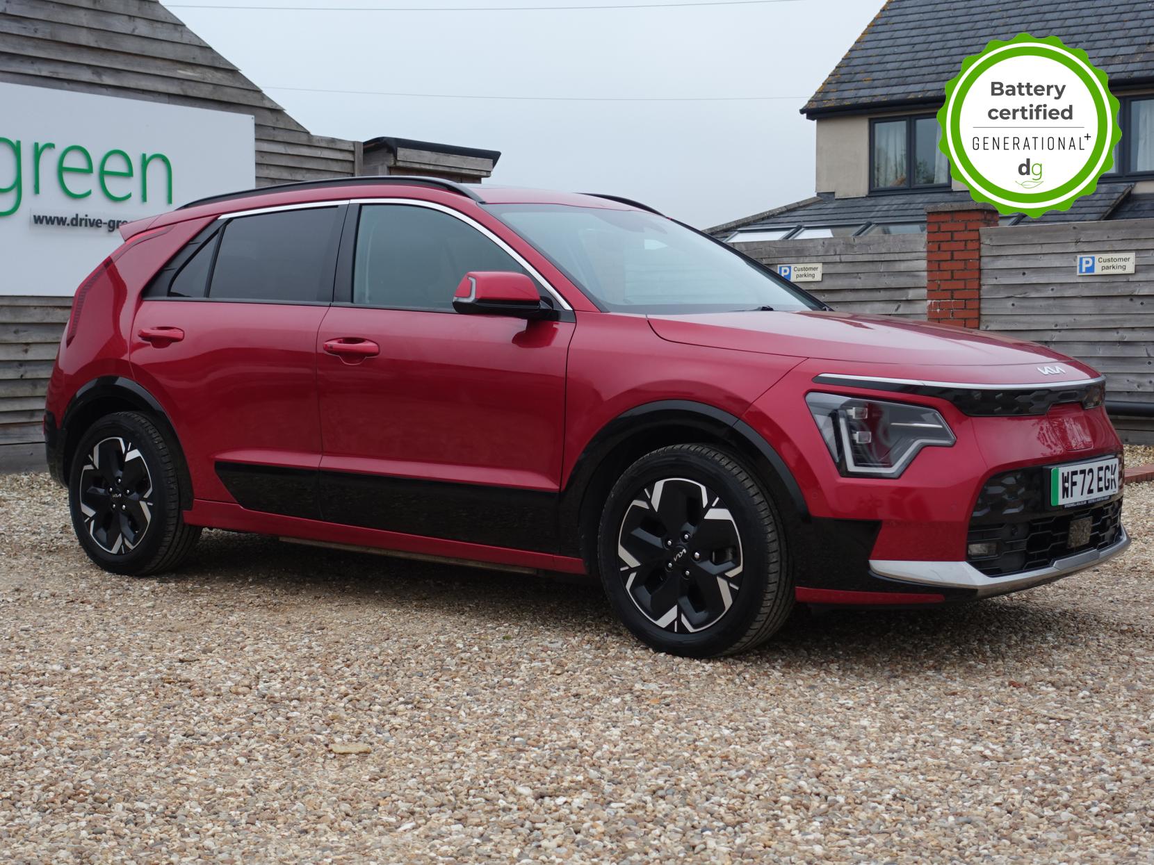 This E-Niro is in excellent condition and fully prepared to our high standard, has 2 keys, 1 previous owner, 4 prior services, and it will be October 2026 until its next service or MOT is due. It also has an excellent 97% battery health. The E-Niro is a great all-rounder – a generously sized and practical family EV, with a real-world range of around 250-300 miles, depending on your driving style and time of year. The top spec 4 E-Niro features some impressive spec. Opening pan roof, 17′ alloys, roof rails, power adjustable memory driver’s seat, heated leather front and rear seats, heated steering wheel, and an 8 speakers premium sound system. The E-Niro also features some great safety spec including adaptive cruise control with lane and follow assist, emergency stop signalling and a forward collision avoidance system. If you are looking for a long range practically sized family EV, this could be the perfect car for you. Unlike Car Supermarkets we have no hidden admin fees, there is no pressure selling, and we offer low finance rates. We also perform battery health checks on all our vehicles, so you can have the comfort of knowing the battery state of health of the EV you choose. Hopefully you will choose to buy your EV from Drive Green, as we are a multi award winning EV specialist and sustainable business, here to help you get the most from your switch to electric driving. Contact us to book an appointment to view and test drive this car, or to find out more about switching to electric driving, and to discuss purchase options, including buying on finance, and our remote buying and delivery service. We are also able to supply your home charge point also, making the switch to electric driving super easy for you. Drive Green is a true EV specialist and the UK’s biggest electric car only dealership, since 2017. FORECOURT VISITS AND TEST DRIVES BY APPOINTMENT ONLY.