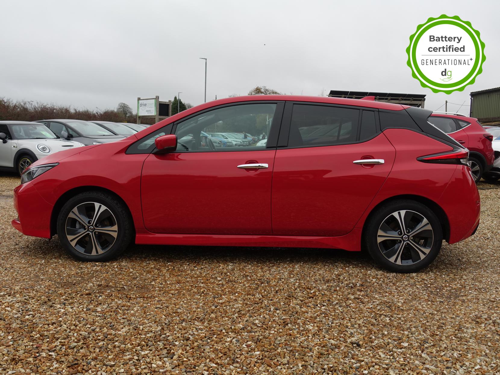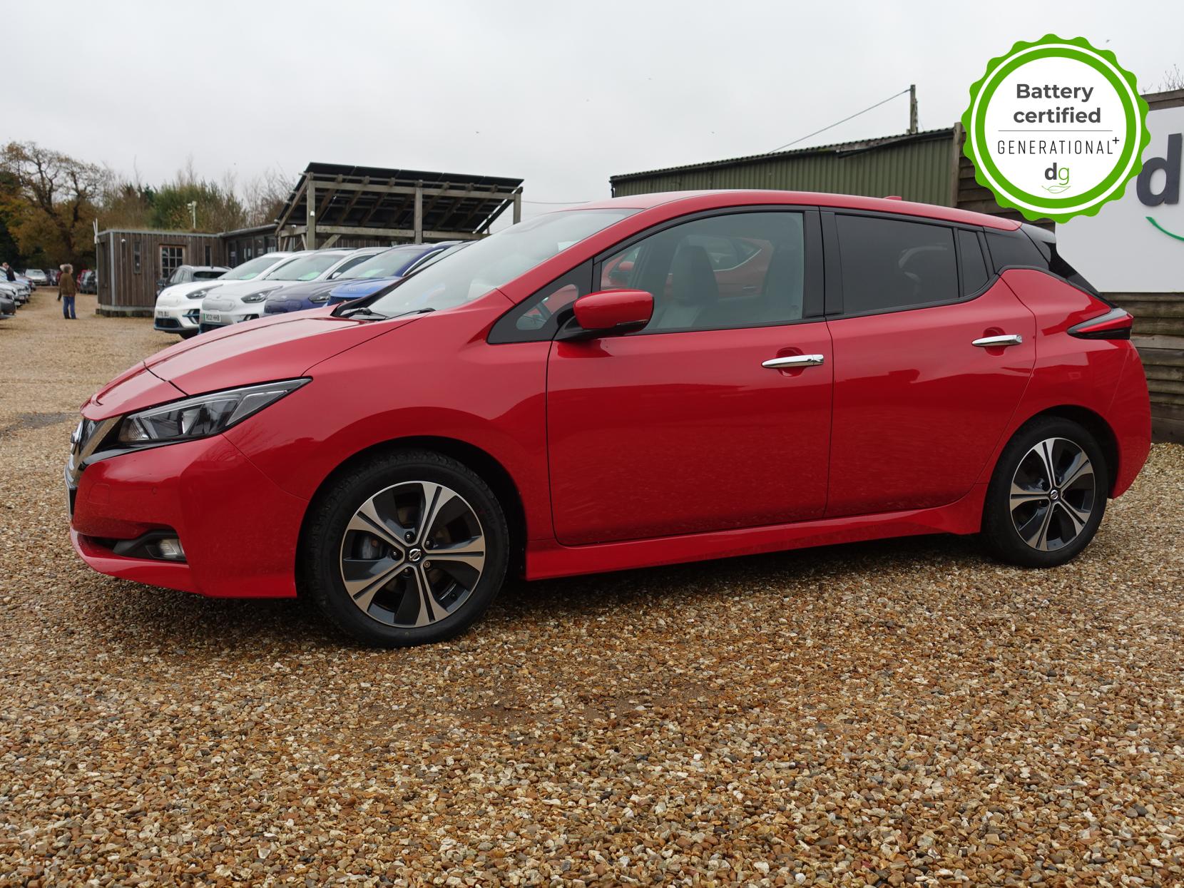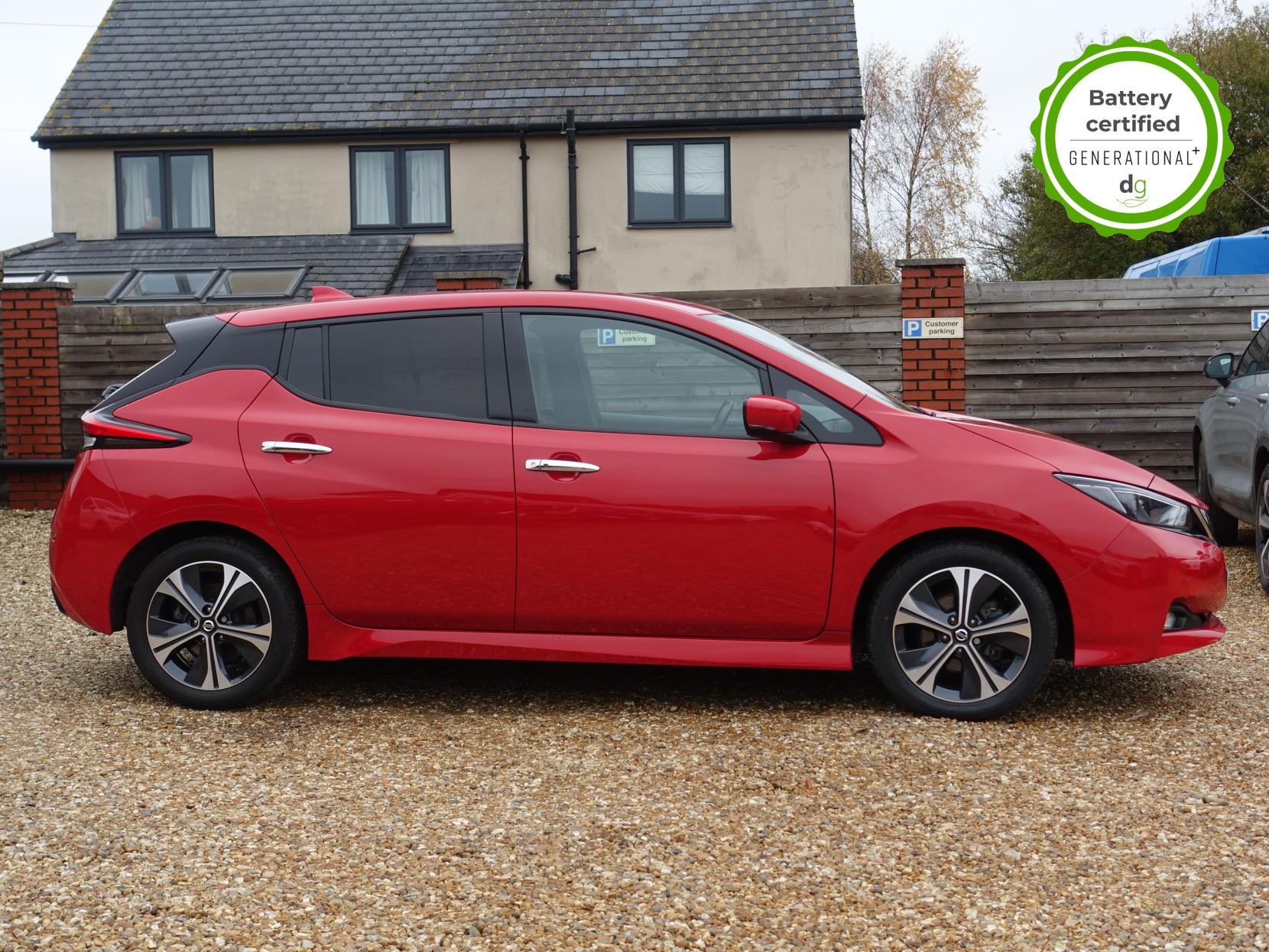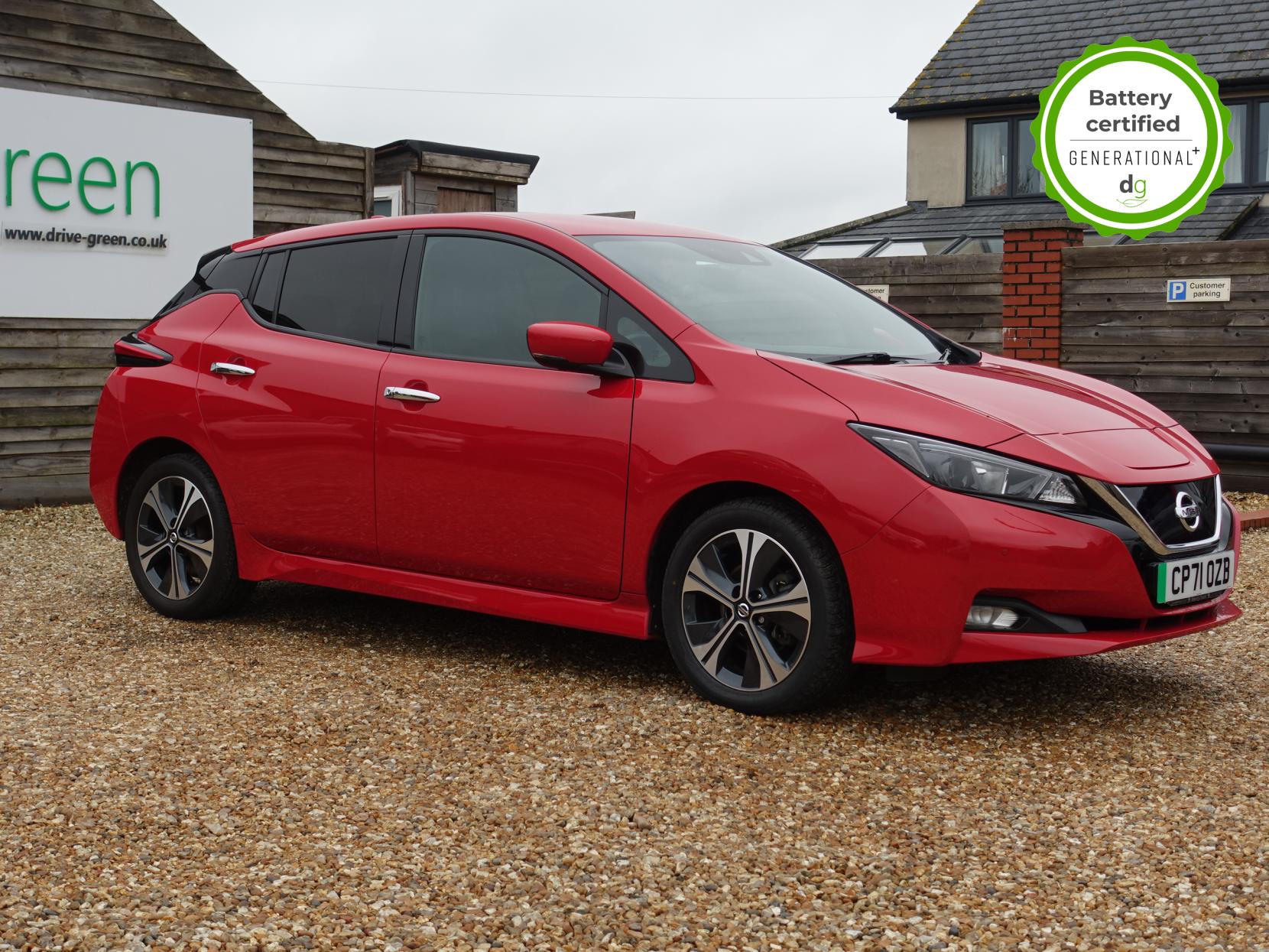 This car is in excellent condition and fully prepared to our high standard, has 2 keys, 1 previous owner, 4 prior servics, and it will be December 2026 until its next service or MOT is due. The 40kWh Leaf N-Connecta has a 140-mile real world range approx. depending on driving style and time of year, DC rapid charging (up to 80% charge in approx 50 mins). It has Nissan Safety Shield intelligent driver safety assistance, E-pedal one pedal driving mode, 360o camera system, In-built sat nav and media centre with DAB, Android Auto and Apple CarPlay, 5 seats, 4 doors and a large boot, quality build, cabin pre-heating function, Part Faux Leather interior, heated front and rear seats and a heated steering wheel, adaptive LED headlights and auto high beams. If you are looking for a spacious, well-made, and practical family EV with great spec, at a great value price point, this could be the ideal car for you. Unlike Car Supermarkets we have no hidden admin fees, there is no pressure selling, and we offer low finance rates. We also perform battery health checks on all our vehicles, so you can have the comfort of knowing the battery state of health of the EV you choose. Hopefully you will choose to buy your EV from Drive Green, as we are a multi award winning EV specialist and sustainable business, here to help you get the most from your switch to electric driving. Contact us to book an appointment to view and test drive this car, or to find out more about switching to electric driving, and to discuss purchase options, including buying on finance, and our remote buying and delivery service. We are also able to supply your home charge point also, making the switch to electric driving super easy for you. Drive Green is a true EV specialist and the UK’s biggest electric car only dealership, since 2017. FORECOURT VISITS AND TEST DRIVES BY APPOINTMENT ONLY.