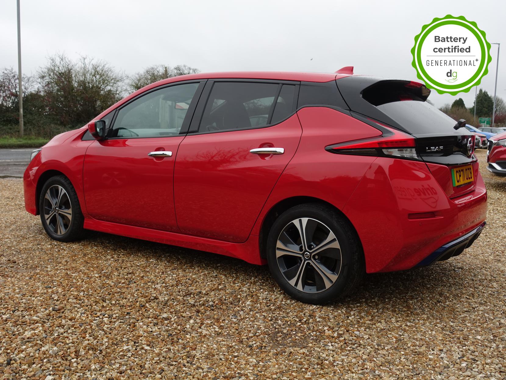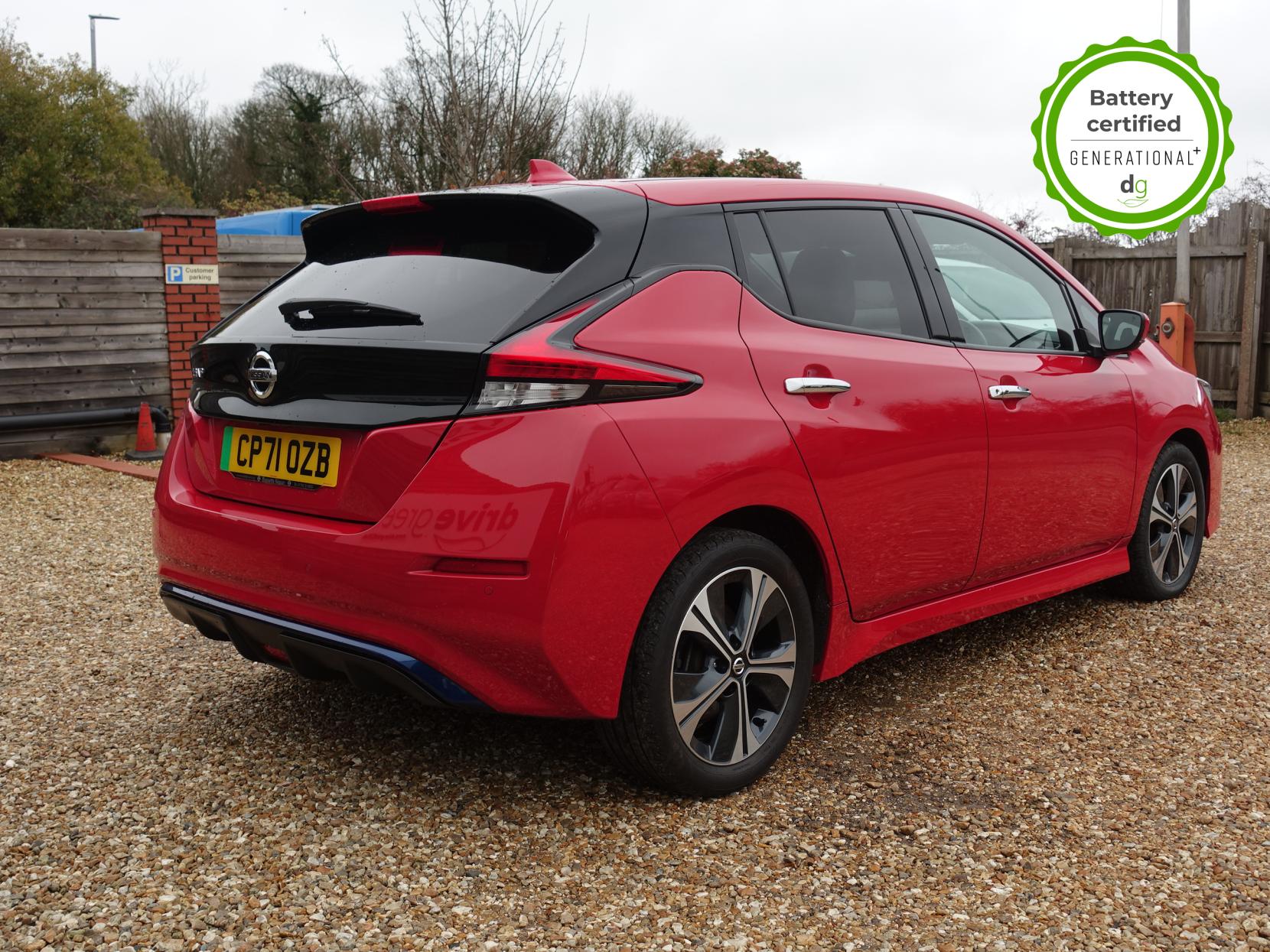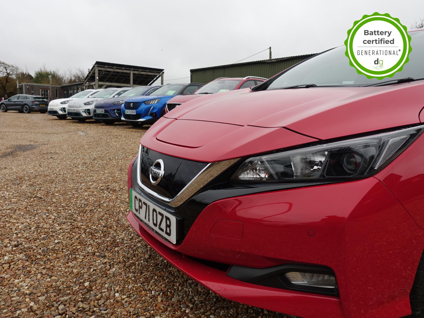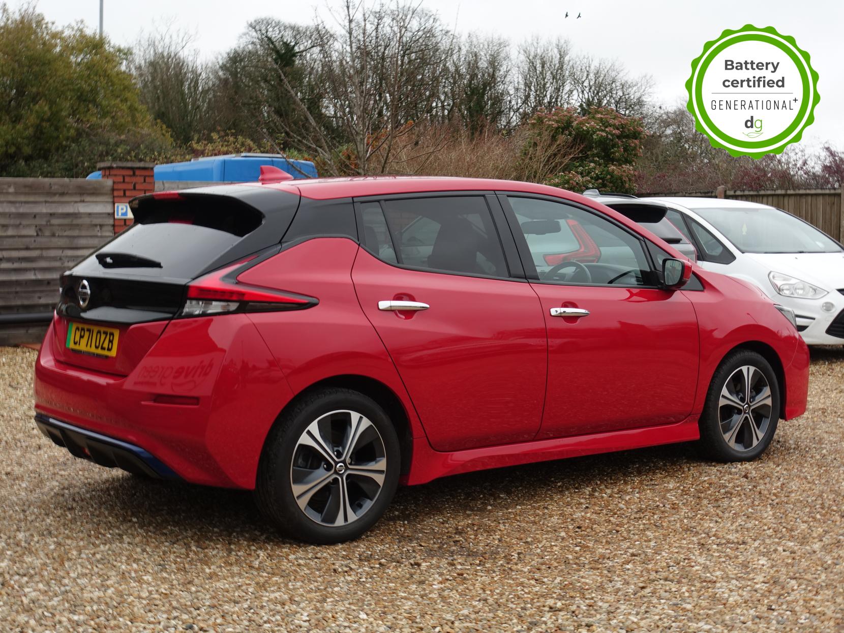 This car is in excellent condition and fully prepared to our high standard, has 2 keys, 1 previous owner, 4 prior servics, and it will be December 2026 until its next service or MOT is due. The 40kWh Leaf N-Connecta has a 140-mile real world range approx. depending on driving style and time of year, DC rapid charging (up to 80% charge in approx 50 mins). It has Nissan Safety Shield intelligent driver safety assistance, E-pedal one pedal driving mode, 360o camera system, In-built sat nav and media centre with DAB, Android Auto and Apple CarPlay, 5 seats, 4 doors and a large boot, quality build, cabin pre-heating function, Part Faux Leather interior, heated front and rear seats and a heated steering wheel, adaptive LED headlights and auto high beams. If you are looking for a spacious, well-made, and practical family EV with great spec, at a great value price point, this could be the ideal car for you. Unlike Car Supermarkets we have no hidden admin fees, there is no pressure selling, and we offer low finance rates. We also perform battery health checks on all our vehicles, so you can have the comfort of knowing the battery state of health of the EV you choose. Hopefully you will choose to buy your EV from Drive Green, as we are a multi award winning EV specialist and sustainable business, here to help you get the most from your switch to electric driving. Contact us to book an appointment to view and test drive this car, or to find out more about switching to electric driving, and to discuss purchase options, including buying on finance, and our remote buying and delivery service. We are also able to supply your home charge point also, making the switch to electric driving super easy for you. Drive Green is a true EV specialist and the UK’s biggest electric car only dealership, since 2017. FORECOURT VISITS AND TEST DRIVES BY APPOINTMENT ONLY.