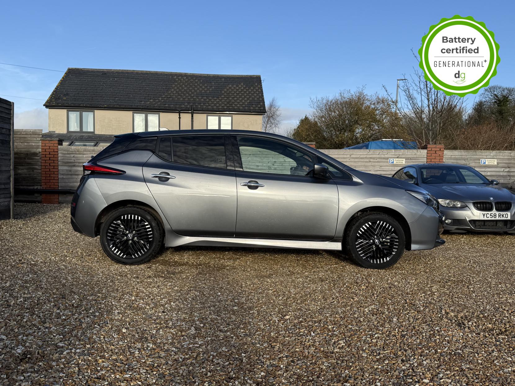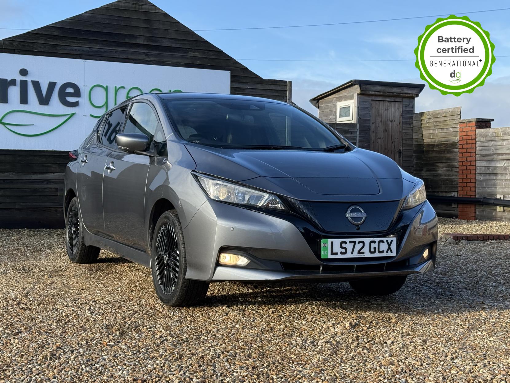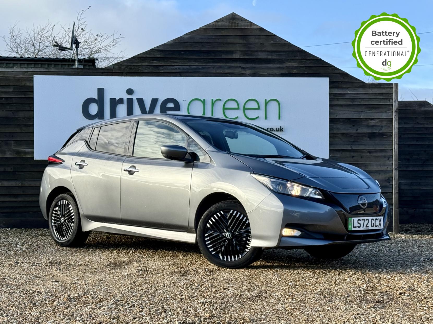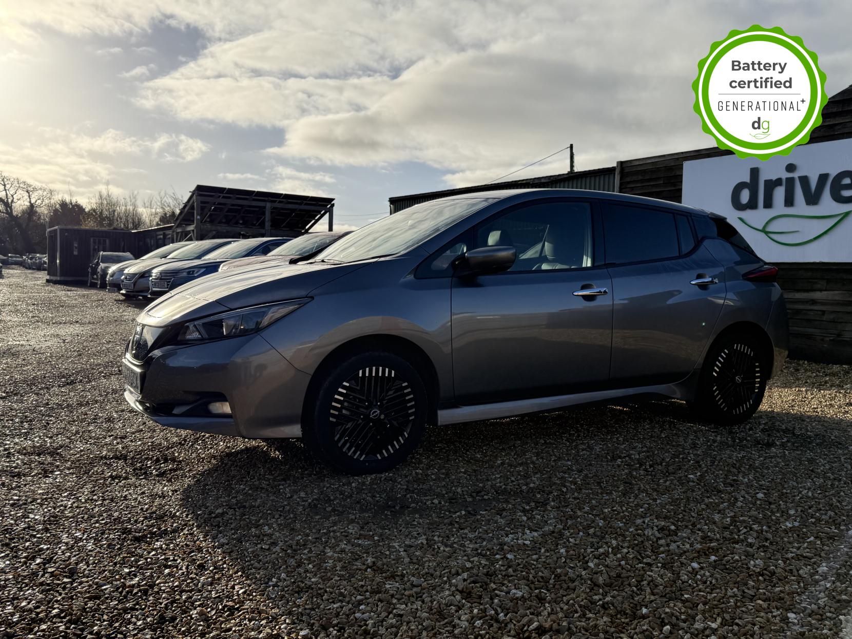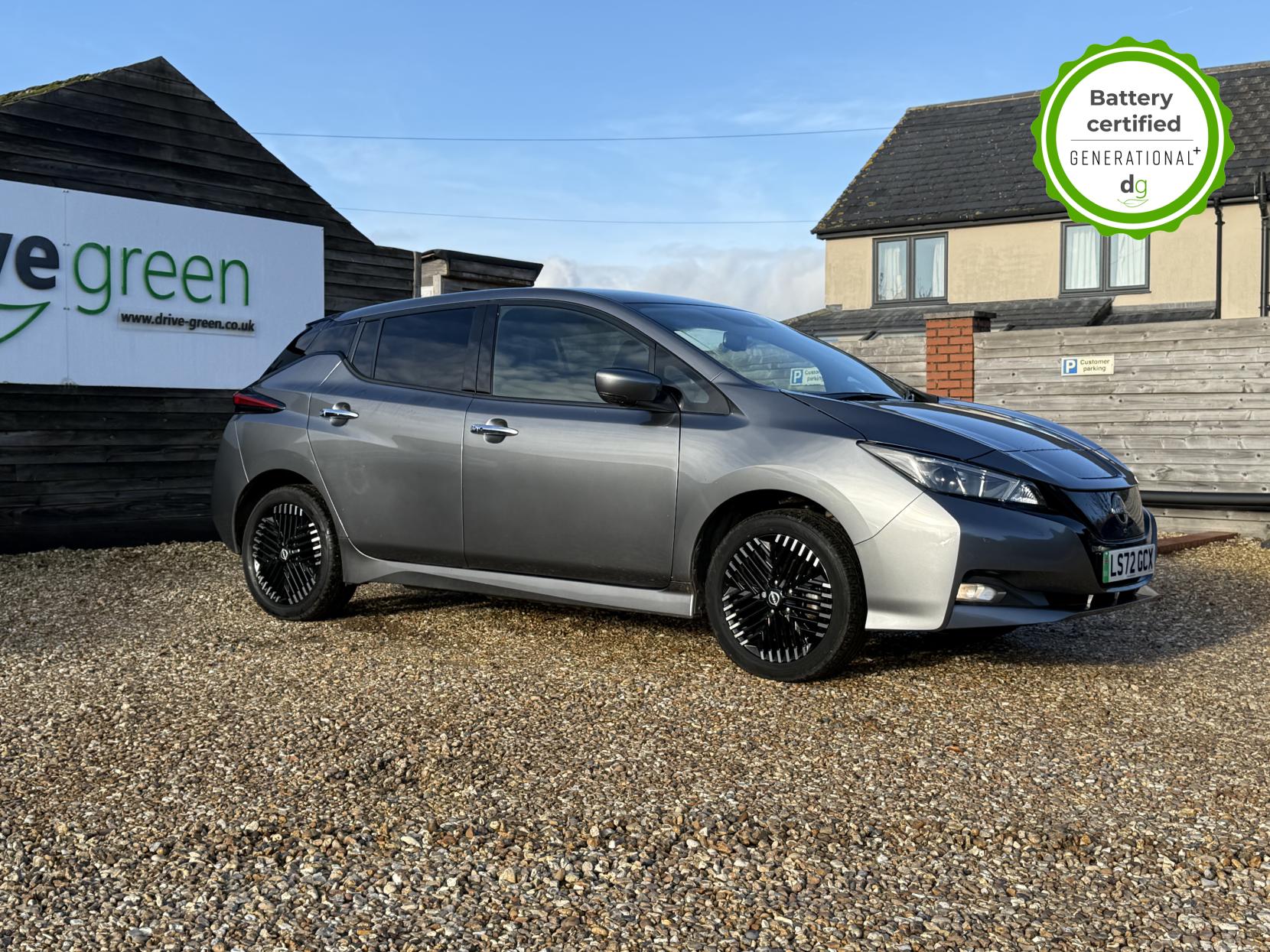 This car is in excellent condition and fully prepared to our high standard, has 2 keys, 1 previous owner, 3 prior servcies, and it is the end of October 2026 until its next service or MOT is due. The Nissan Leaf E+N-Connecta comes packed with lots of tech and features including lots of hi-tech driver safety features. It also has heated front and rear seats and steering wheel, and a 360o camera system with front and rear sensors. It has half faux Leather seats, and is also Apple Car Play and Android Auto integrated. The 59kWh gies this leaf a 240 mile real world range approx. depending on driving style and time of year. DC rapid charging (up to 80% charge in approx. 50 mins). If you are looking for a high spec, spacious, well-made, and practical family EV, this is a very high-quality car, and could be the ideal EV for you. Unlike Car Supermarkets we have no hidden admin fees, there is no pressure selling, and we offer low finance rates. We also perform battery health checks on all our vehicles, so you can have the comfort of knowing the battery state of health of the EV you choose. Hopefully you will choose to buy your EV from Drive Green, as we are a multi award winning EV specialist and sustainable business, here to help you get the most from your switch to electric driving. Contact us to book an appointment to view and test drive this car, or to find out more about switching to electric driving, and to discuss purchase options, including buying on finance, and our remote buying and delivery service. We are also able to supply your home charge point also, making the switch to electric driving super easy for you. Drive Green is a true EV specialist and the UK’s biggest electric car only dealership, since 2017. FORECOURT VISITS AND TEST DRIVES BY APPOINTMENT ONLY.