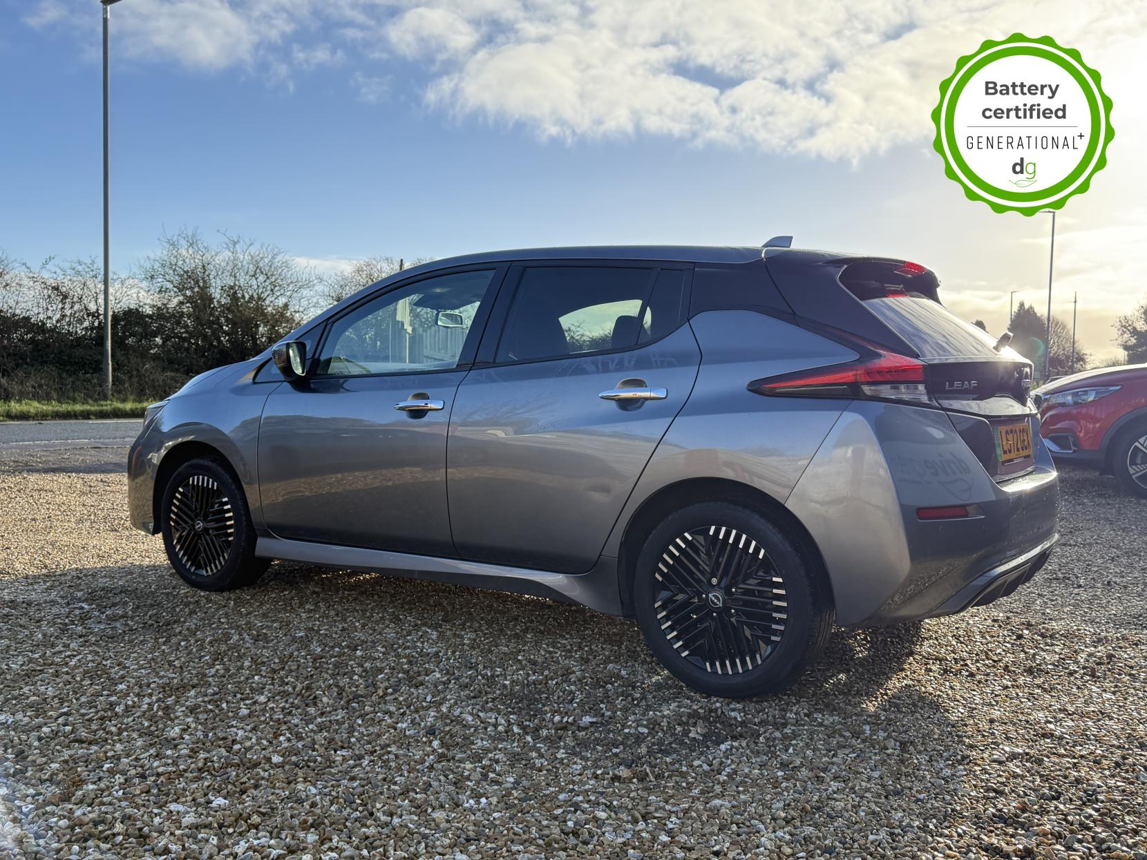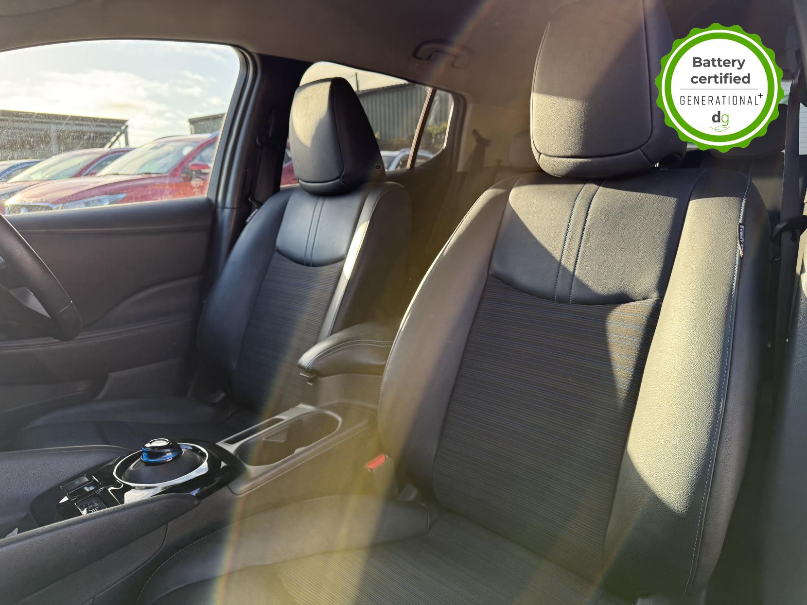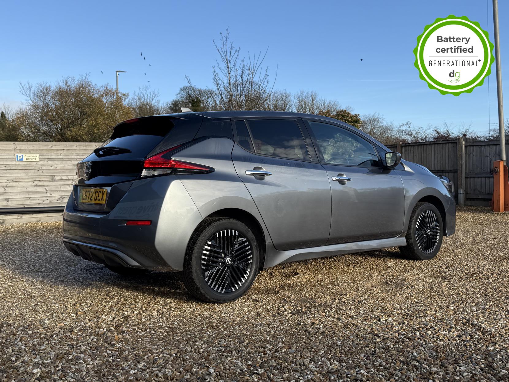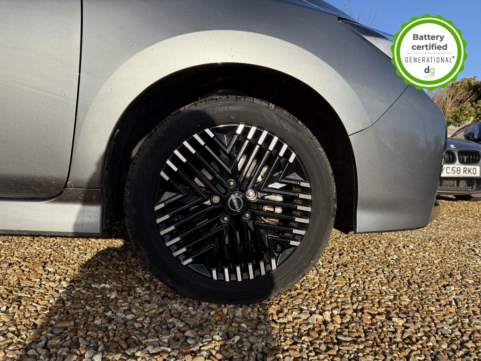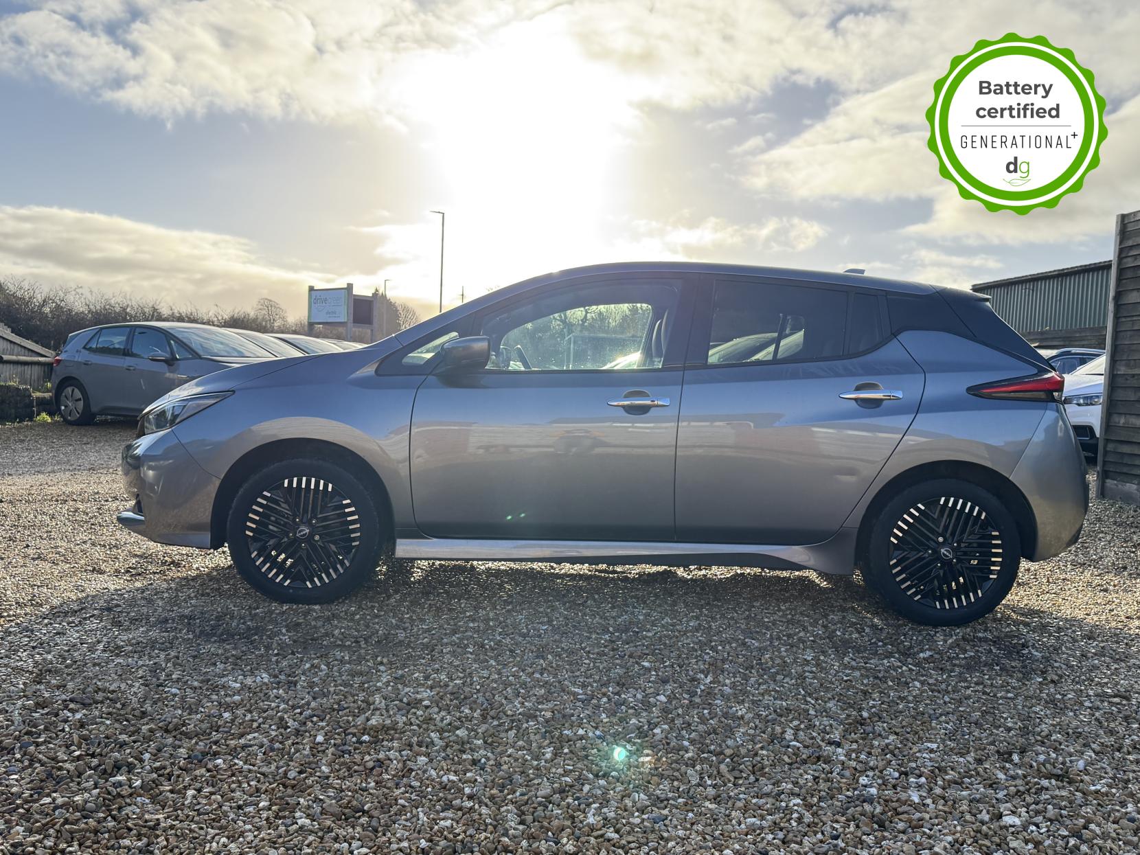 This car is in excellent condition and fully prepared to our high standard, has 2 keys, 1 previous owner, 3 prior servcies, and it is the end of October 2026 until its next service or MOT is due. The Nissan Leaf E+N-Connecta comes packed with lots of tech and features including lots of hi-tech driver safety features. It also has heated front and rear seats and steering wheel, and a 360o camera system with front and rear sensors. It has half faux Leather seats, and is also Apple Car Play and Android Auto integrated. The 59kWh gies this leaf a 240 mile real world range approx. depending on driving style and time of year. DC rapid charging (up to 80% charge in approx. 50 mins). If you are looking for a high spec, spacious, well-made, and practical family EV, this is a very high-quality car, and could be the ideal EV for you. Unlike Car Supermarkets we have no hidden admin fees, there is no pressure selling, and we offer low finance rates. We also perform battery health checks on all our vehicles, so you can have the comfort of knowing the battery state of health of the EV you choose. Hopefully you will choose to buy your EV from Drive Green, as we are a multi award winning EV specialist and sustainable business, here to help you get the most from your switch to electric driving. Contact us to book an appointment to view and test drive this car, or to find out more about switching to electric driving, and to discuss purchase options, including buying on finance, and our remote buying and delivery service. We are also able to supply your home charge point also, making the switch to electric driving super easy for you. Drive Green is a true EV specialist and the UK’s biggest electric car only dealership, since 2017. FORECOURT VISITS AND TEST DRIVES BY APPOINTMENT ONLY.