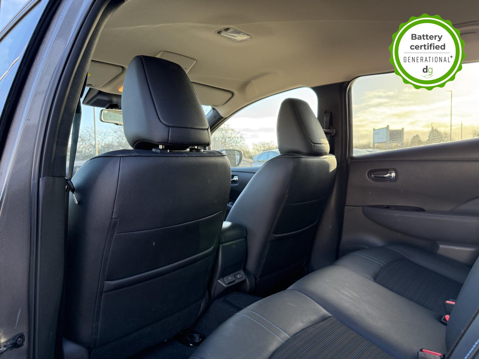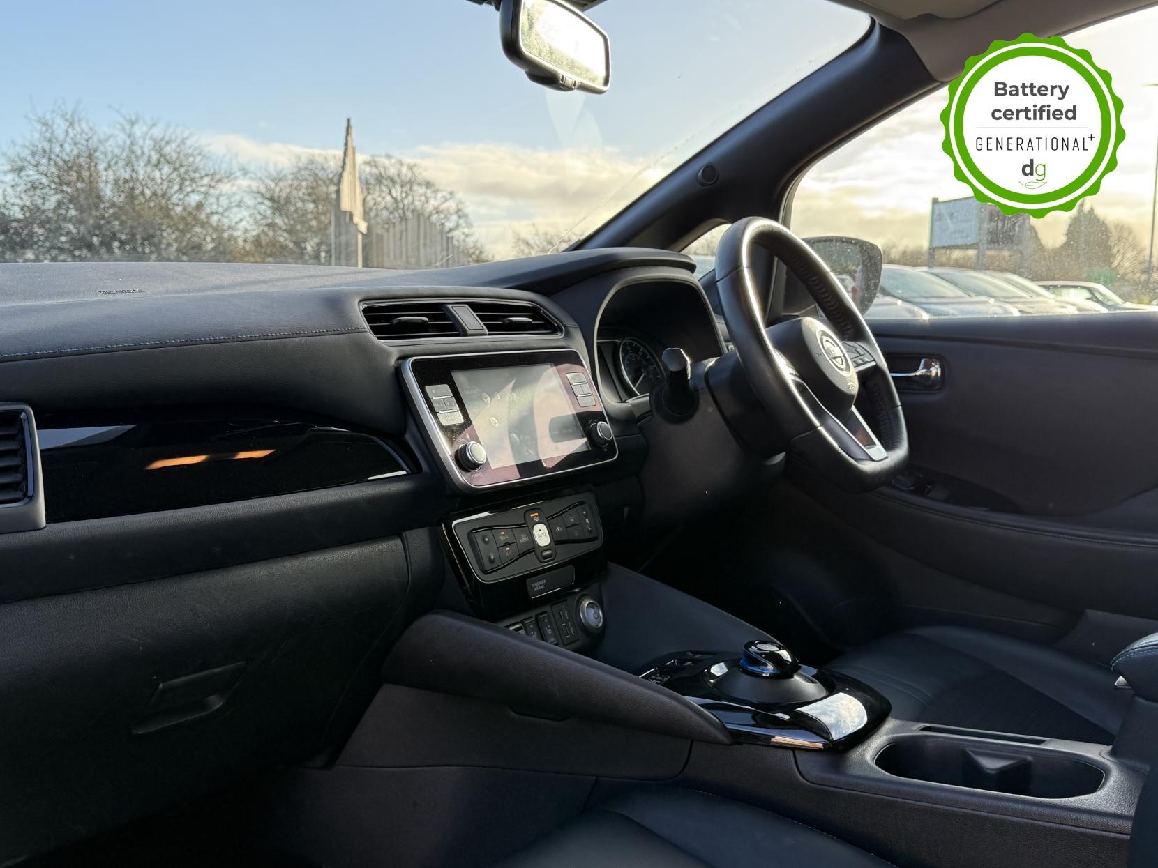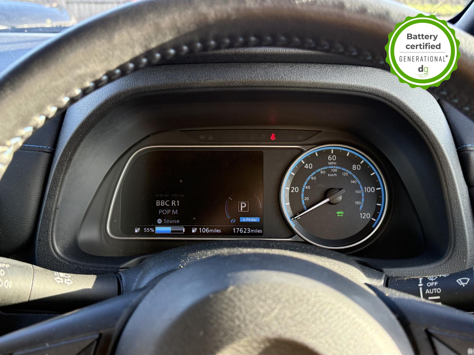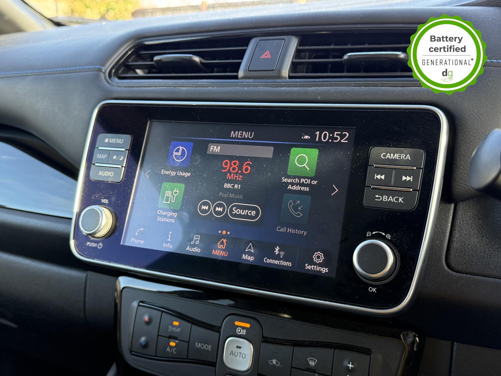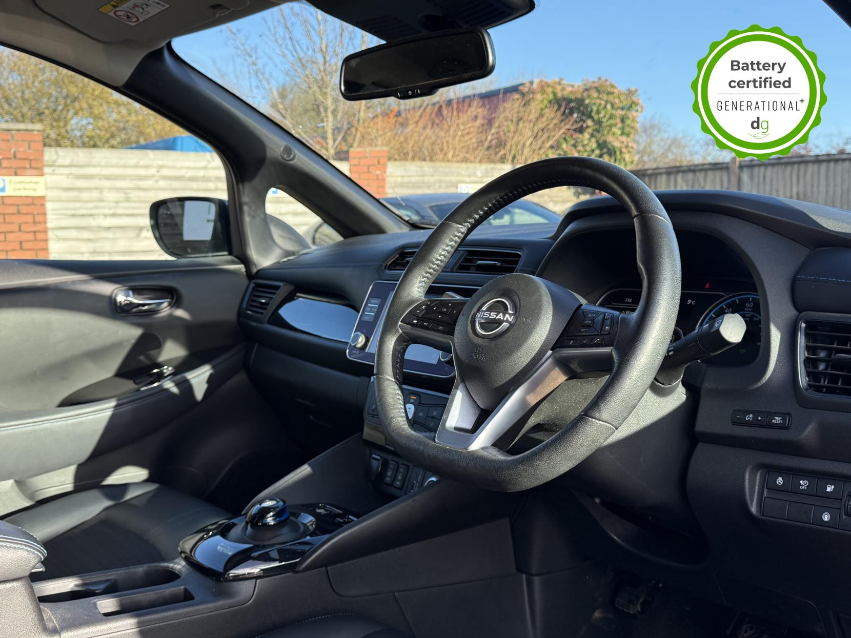 This car is in excellent condition and fully prepared to our high standard, has 2 keys, 1 previous owner, 3 prior servcies, and it is the end of October 2026 until its next service or MOT is due. The Nissan Leaf E+N-Connecta comes packed with lots of tech and features including lots of hi-tech driver safety features. It also has heated front and rear seats and steering wheel, and a 360o camera system with front and rear sensors. It has half faux Leather seats, and is also Apple Car Play and Android Auto integrated. The 59kWh gies this leaf a 240 mile real world range approx. depending on driving style and time of year. DC rapid charging (up to 80% charge in approx. 50 mins). If you are looking for a high spec, spacious, well-made, and practical family EV, this is a very high-quality car, and could be the ideal EV for you. Unlike Car Supermarkets we have no hidden admin fees, there is no pressure selling, and we offer low finance rates. We also perform battery health checks on all our vehicles, so you can have the comfort of knowing the battery state of health of the EV you choose. Hopefully you will choose to buy your EV from Drive Green, as we are a multi award winning EV specialist and sustainable business, here to help you get the most from your switch to electric driving. Contact us to book an appointment to view and test drive this car, or to find out more about switching to electric driving, and to discuss purchase options, including buying on finance, and our remote buying and delivery service. We are also able to supply your home charge point also, making the switch to electric driving super easy for you. Drive Green is a true EV specialist and the UK’s biggest electric car only dealership, since 2017. FORECOURT VISITS AND TEST DRIVES BY APPOINTMENT ONLY.