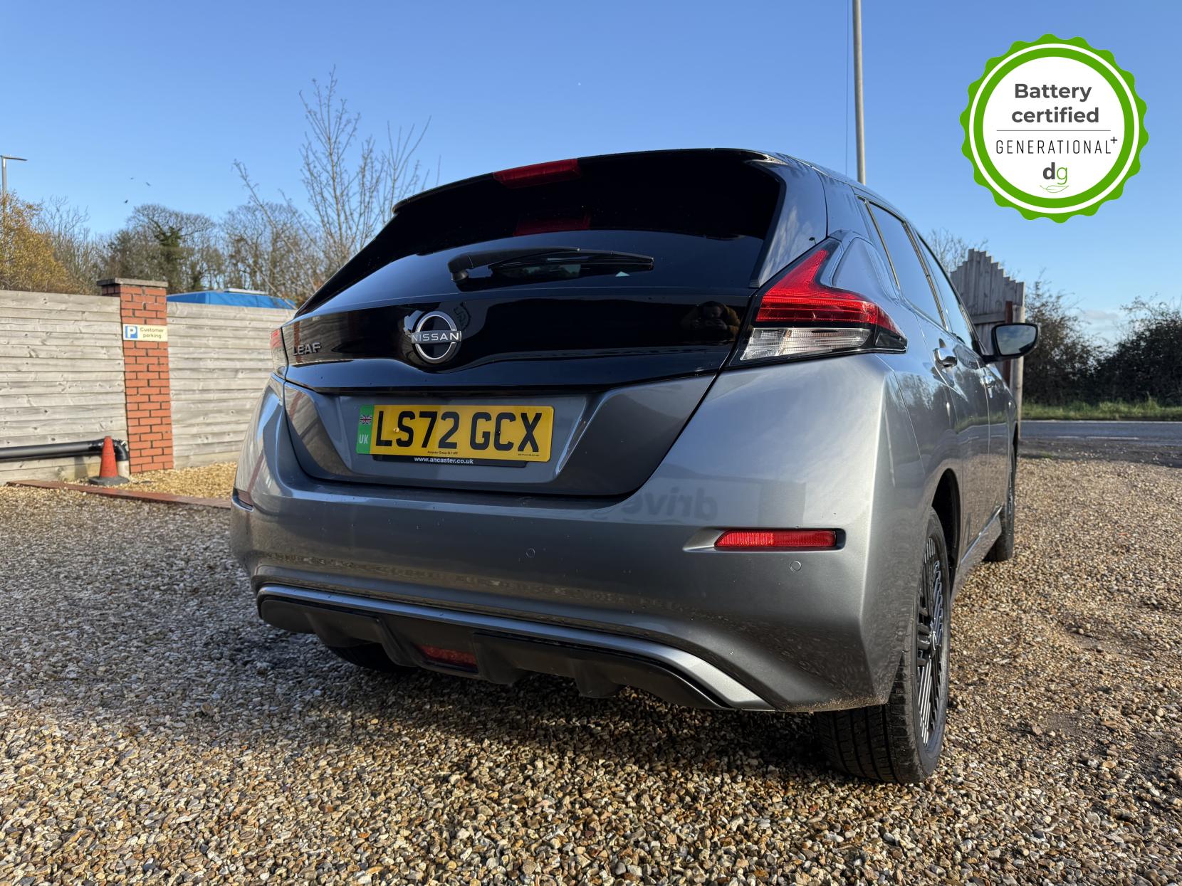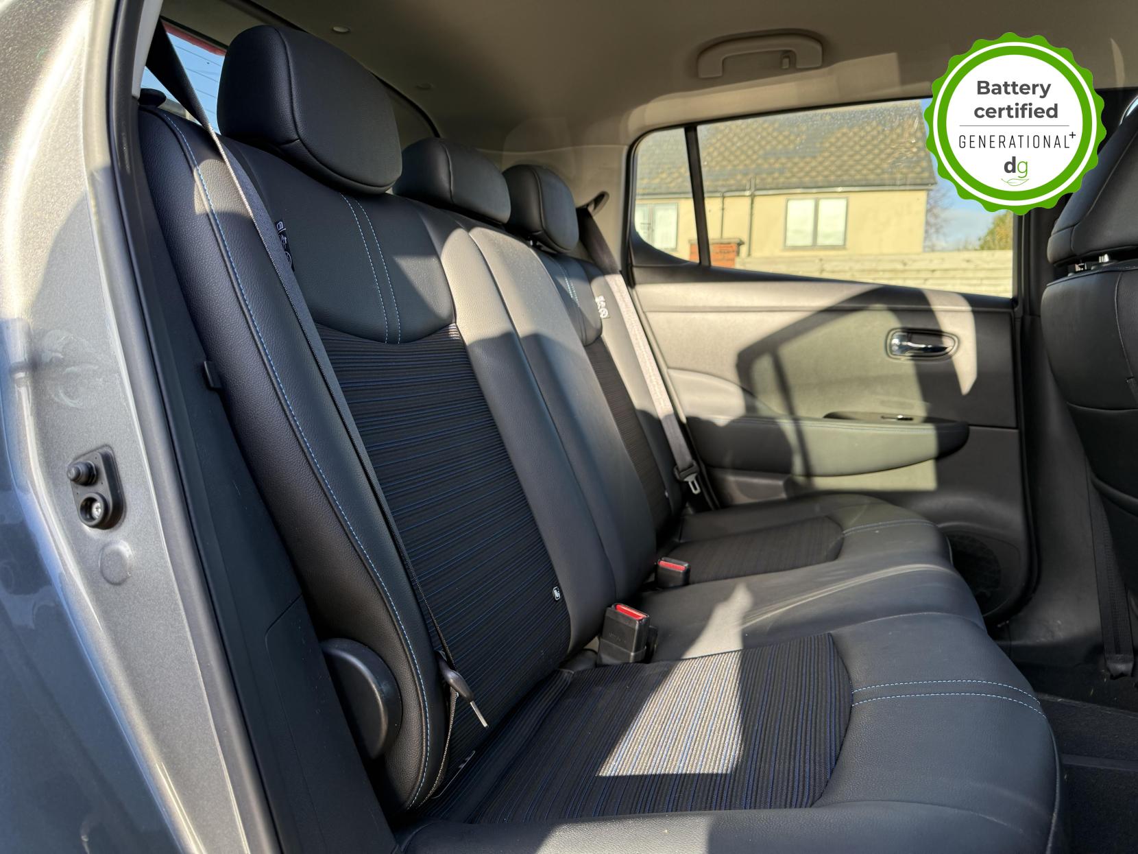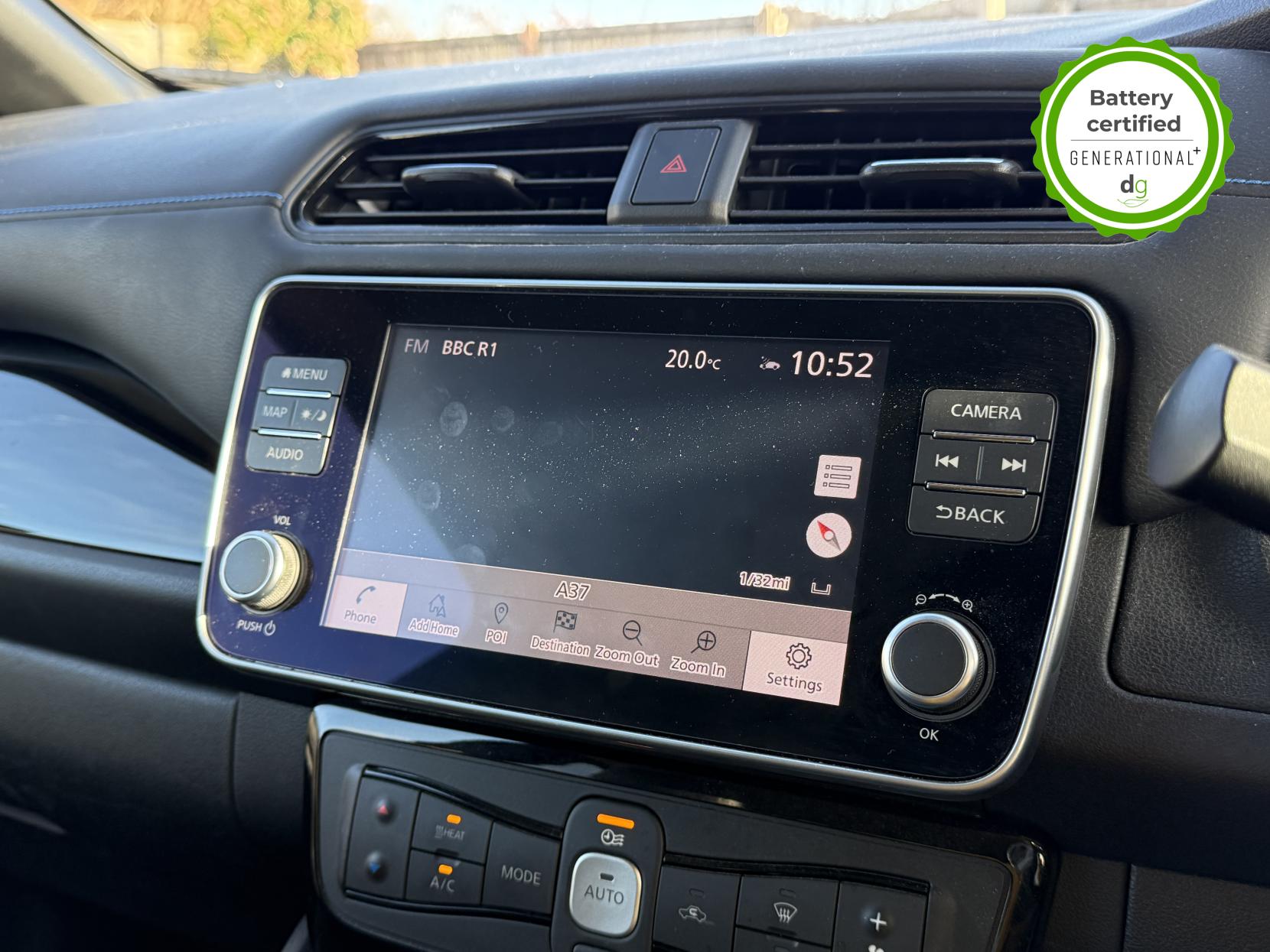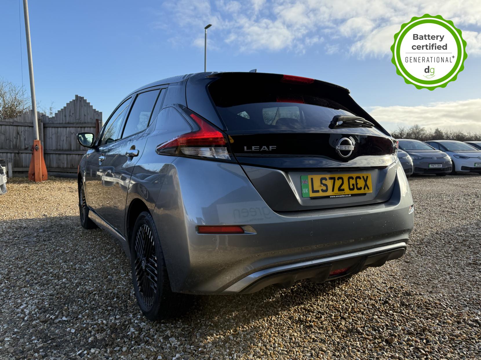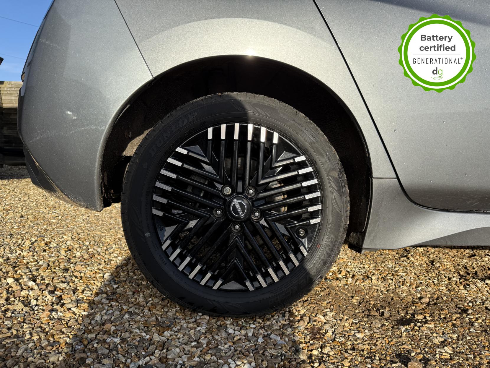 This car is in excellent condition and fully prepared to our high standard, has 2 keys, 1 previous owner, 3 prior servcies, and it is the end of October 2026 until its next service or MOT is due. The Nissan Leaf E+N-Connecta comes packed with lots of tech and features including lots of hi-tech driver safety features. It also has heated front and rear seats and steering wheel, and a 360o camera system with front and rear sensors. It has half faux Leather seats, and is also Apple Car Play and Android Auto integrated. The 59kWh gies this leaf a 240 mile real world range approx. depending on driving style and time of year. DC rapid charging (up to 80% charge in approx. 50 mins). If you are looking for a high spec, spacious, well-made, and practical family EV, this is a very high-quality car, and could be the ideal EV for you. Unlike Car Supermarkets we have no hidden admin fees, there is no pressure selling, and we offer low finance rates. We also perform battery health checks on all our vehicles, so you can have the comfort of knowing the battery state of health of the EV you choose. Hopefully you will choose to buy your EV from Drive Green, as we are a multi award winning EV specialist and sustainable business, here to help you get the most from your switch to electric driving. Contact us to book an appointment to view and test drive this car, or to find out more about switching to electric driving, and to discuss purchase options, including buying on finance, and our remote buying and delivery service. We are also able to supply your home charge point also, making the switch to electric driving super easy for you. Drive Green is a true EV specialist and the UK’s biggest electric car only dealership, since 2017. FORECOURT VISITS AND TEST DRIVES BY APPOINTMENT ONLY.