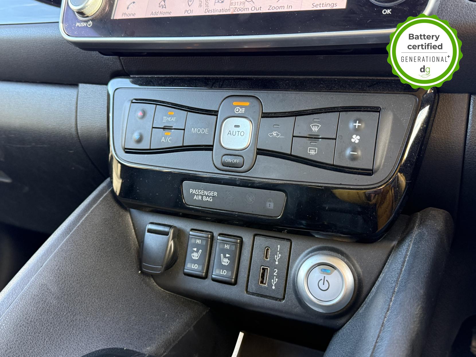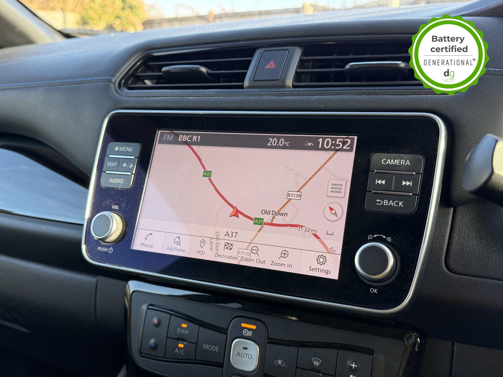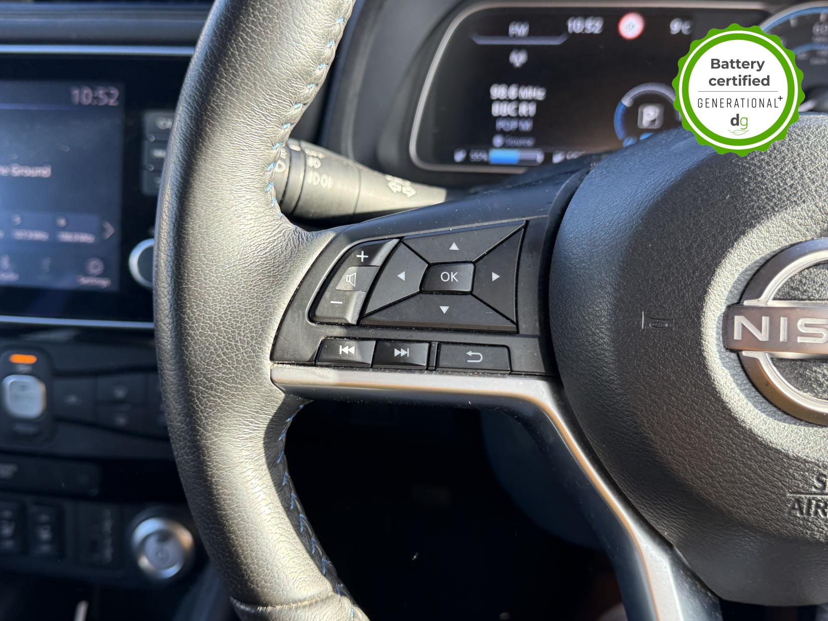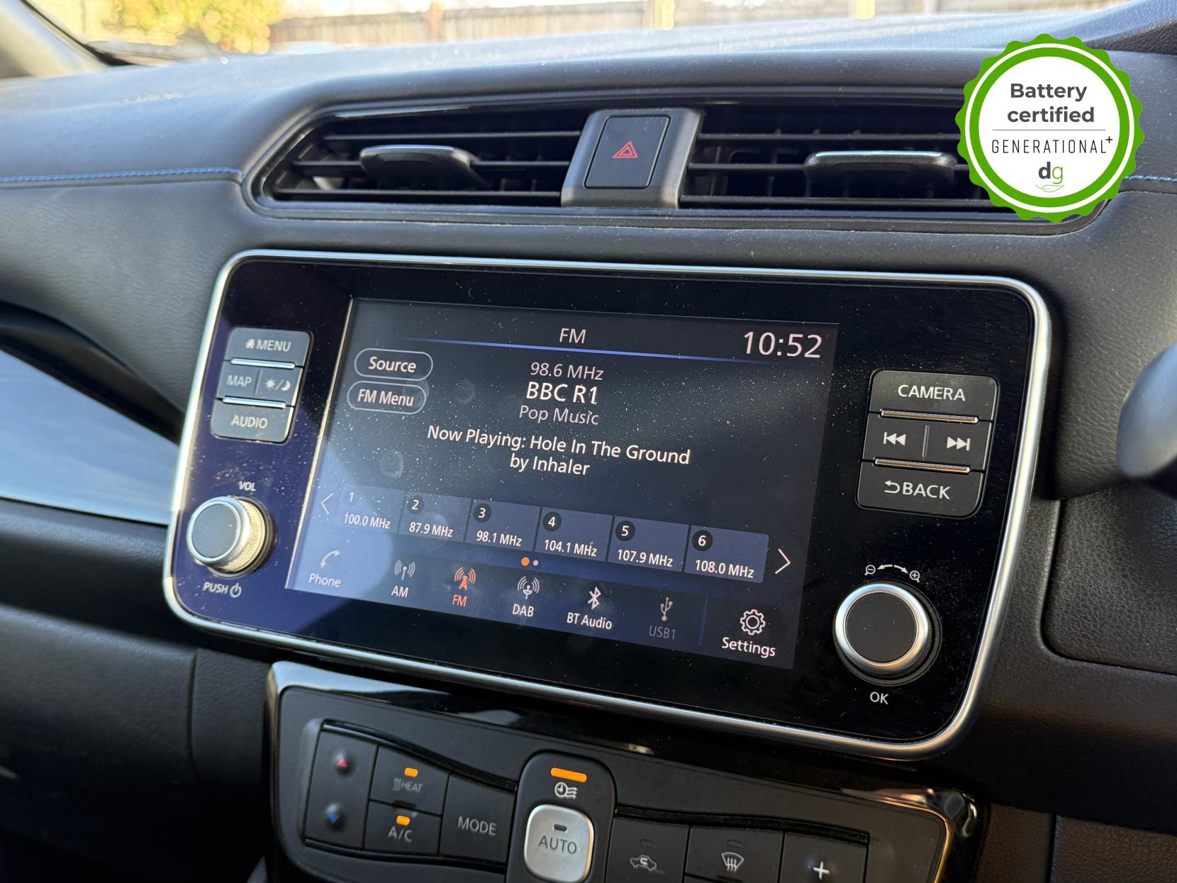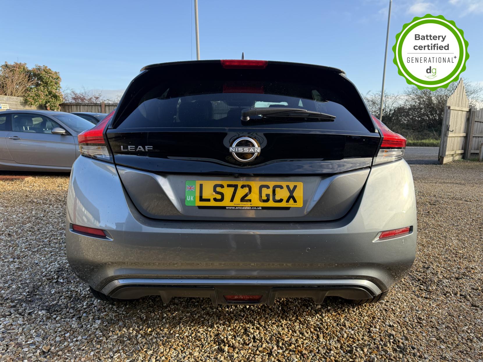This car is in excellent condition and fully prepared to our high standard, has 2 keys, 1 previous owner, 3 prior servcies, and it is the end of October 2026 until its next service or MOT is due. The Nissan Leaf E+N-Connecta comes packed with lots of tech and features including lots of hi-tech driver safety features. It also has heated front and rear seats and steering wheel, and a 360o camera system with front and rear sensors. It has half faux Leather seats, and is also Apple Car Play and Android Auto integrated. The 59kWh gies this leaf a 240 mile real world range approx. depending on driving style and time of year. DC rapid charging (up to 80% charge in approx. 50 mins). If you are looking for a high spec, spacious, well-made, and practical family EV, this is a very high-quality car, and could be the ideal EV for you. Unlike Car Supermarkets we have no hidden admin fees, there is no pressure selling, and we offer low finance rates. We also perform battery health checks on all our vehicles, so you can have the comfort of knowing the battery state of health of the EV you choose. Hopefully you will choose to buy your EV from Drive Green, as we are a multi award winning EV specialist and sustainable business, here to help you get the most from your switch to electric driving. Contact us to book an appointment to view and test drive this car, or to find out more about switching to electric driving, and to discuss purchase options, including buying on finance, and our remote buying and delivery service. We are also able to supply your home charge point also, making the switch to electric driving super easy for you. Drive Green is a true EV specialist and the UK’s biggest electric car only dealership, since 2017. FORECOURT VISITS AND TEST DRIVES BY APPOINTMENT ONLY.
