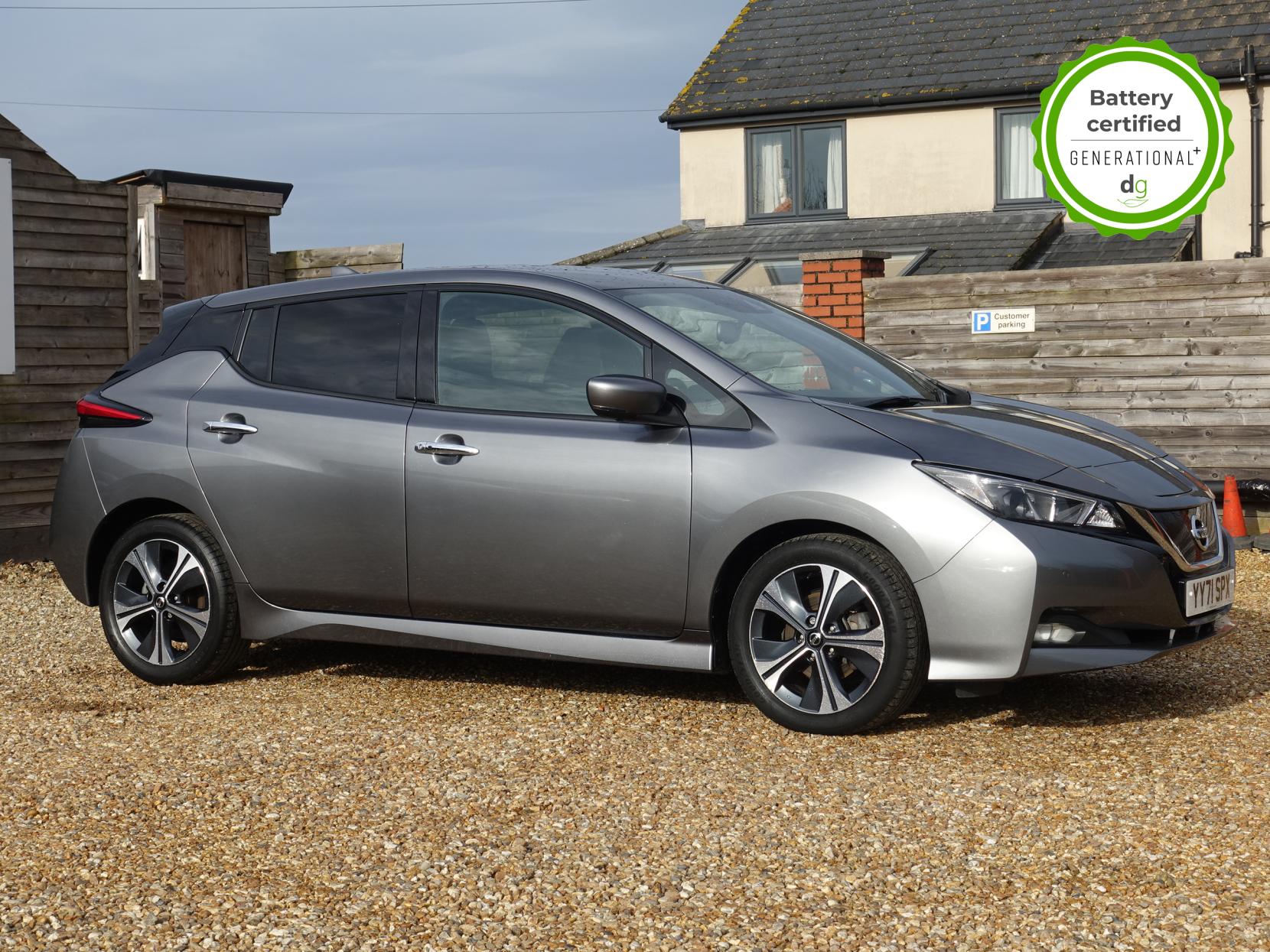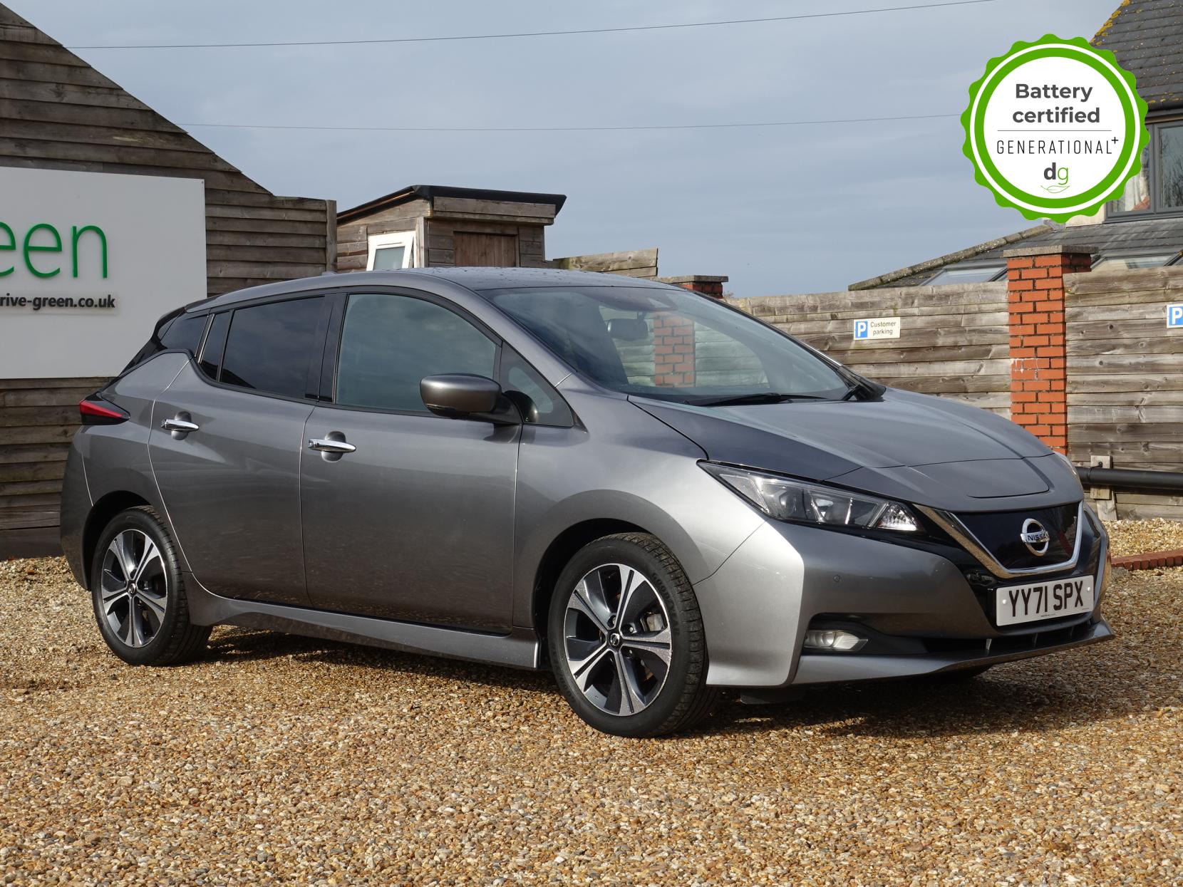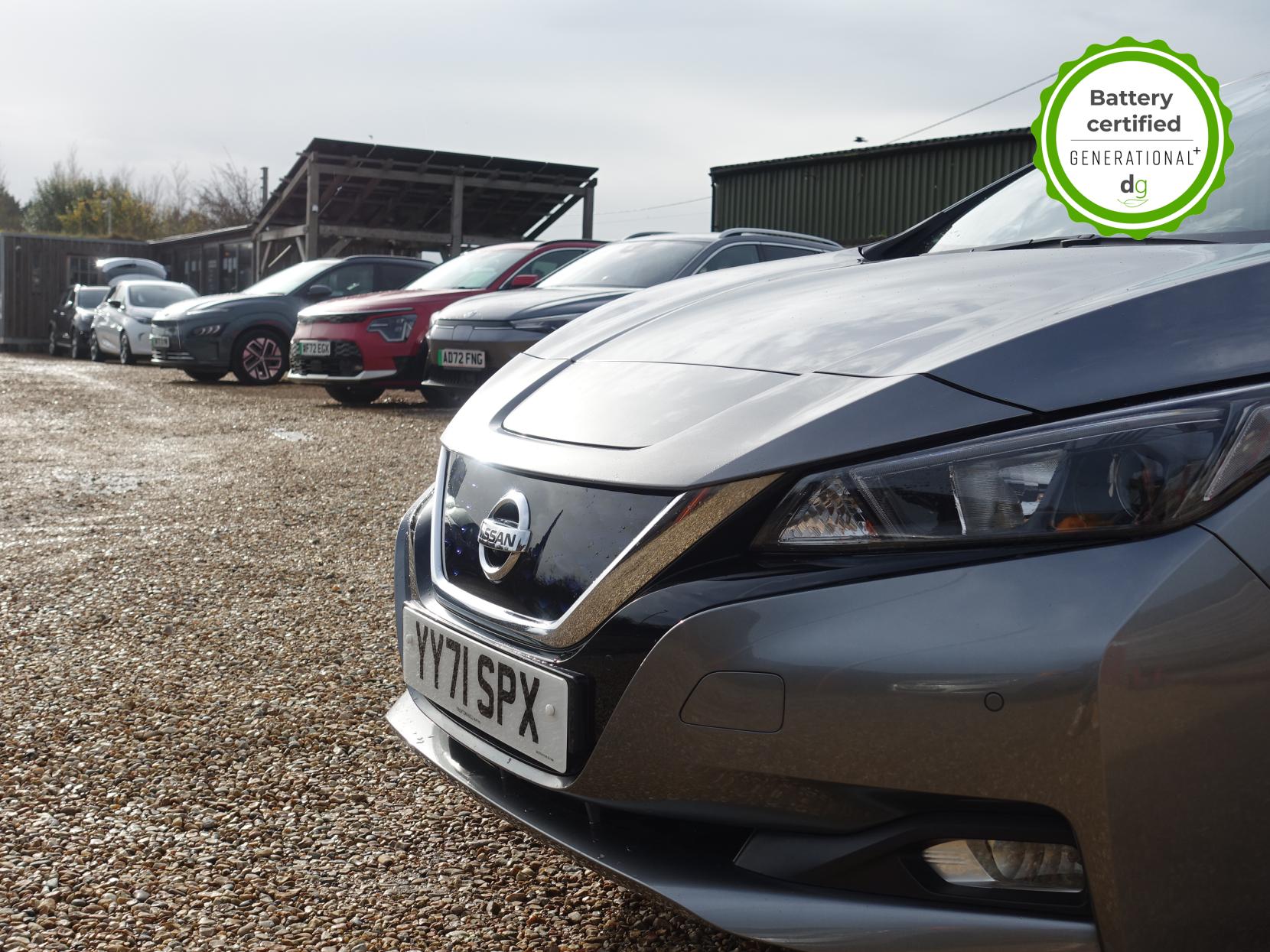 This car is in excellent condition and fully prepared to our high standard, has 2 keys, and it will be November 2026 until its next service or MOT is due. The 40kWh Leaf N-Connecta has a 140-mile real world range approx. depending on driving style and time of year, DC rapid charging (up to 80% charge in approx 50 mins). It has Nissan Safety Shield intelligent driver safety assistance, E-pedal one pedal driving mode, 360o camera system, In-built sat nav and media centre with DAB, Android Auto and Apple CarPlay, 5 seats, 4 doors and a large boot, quality build, cabin pre-heating function, Part Faux Leather interior, heated front and rear seats and a heated steering wheel, adaptive LED headlights and auto high beams. If you are looking for a spacious, well-made, and practical family EV with great spec, at a great value price point, this could be the ideal car for you. Unlike Car Supermarkets we have no hidden admin fees, there is no pressure selling, and we offer low finance rates. We also perform battery health checks on all our vehicles, so you can have the comfort of knowing the battery state of health of the EV you choose. Hopefully you will choose to buy your EV from Drive Green, as we are a multi award winning EV specialist and sustainable business, here to help you get the most from your switch to electric driving. Contact us to book an appointment to view and test drive this car, or to find out more about switching to electric driving, and to discuss purchase options, including buying on finance, and our remote buying and delivery service. We are also able to supply your home charge point also, making the switch to electric driving super easy for you. Drive Green is a true EV specialist and the UK’s biggest electric car only dealership, since 2017. FORECOURT VISITS AND TEST DRIVES BY APPOINTMENT ONLY.