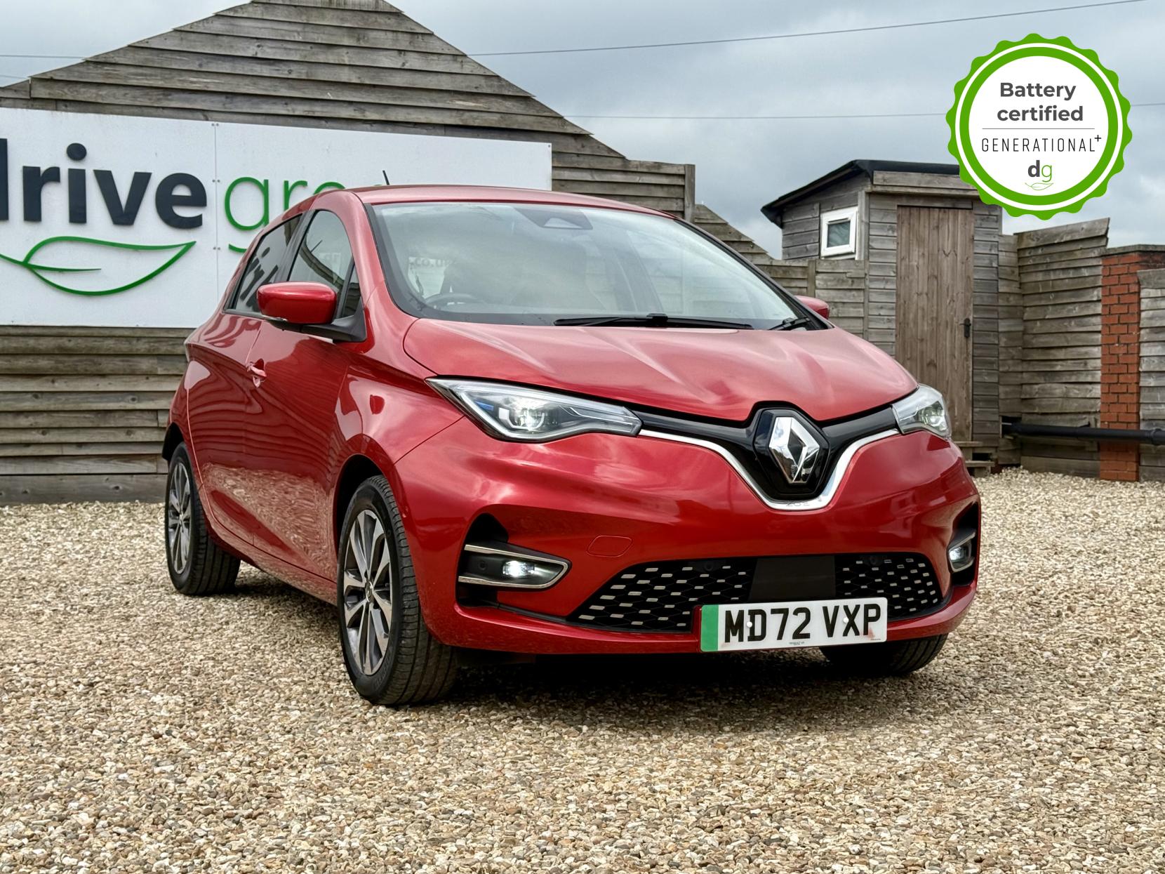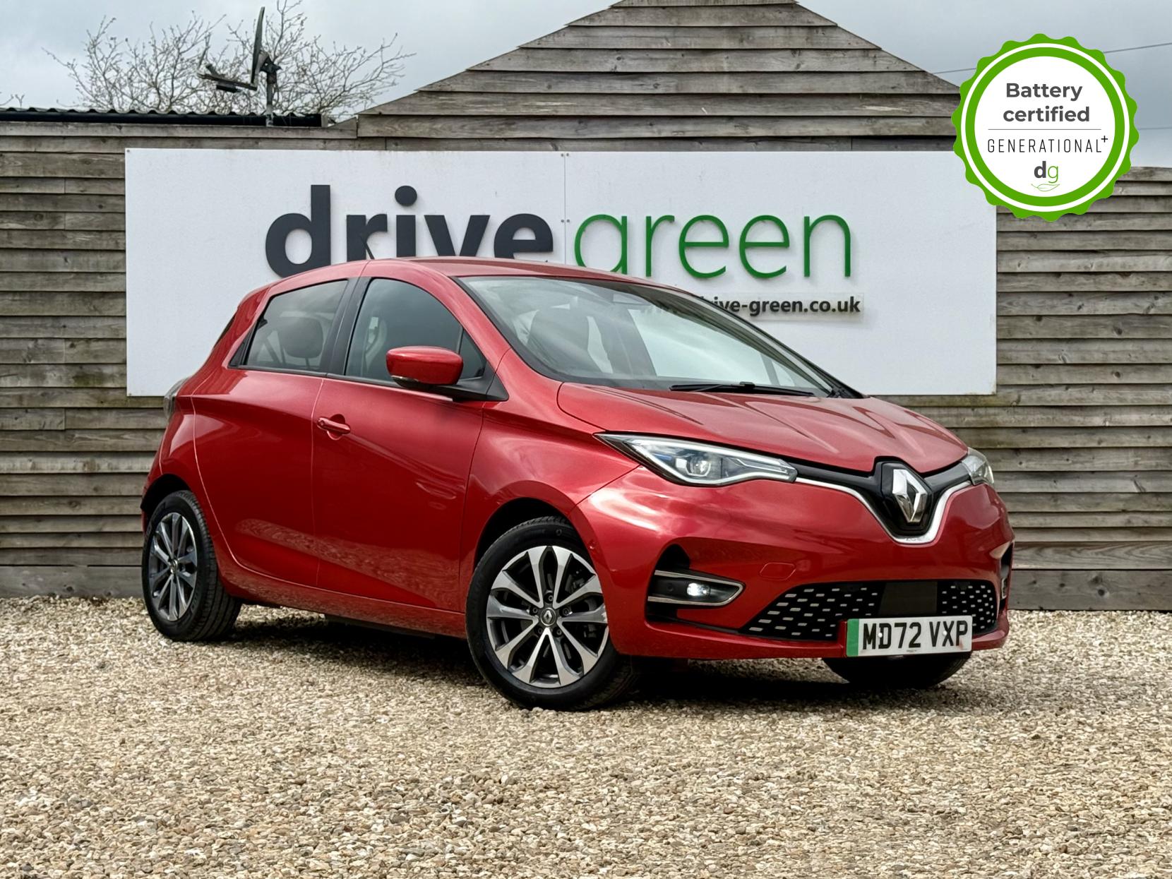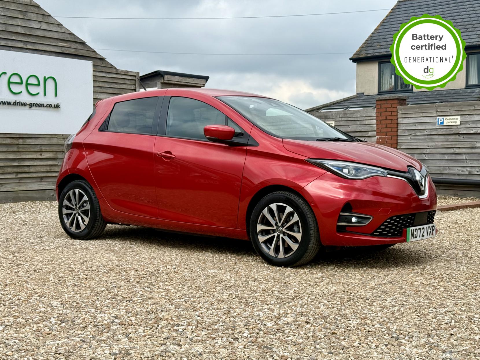 This particular Zoe is in excellent condition and fully prepared to our high standard, has 2 keys, 1 previous owner, and it is December 2026 until its next service or MOT is due. It is also showing an excellent and well above average battery health of 97%. The 50kWh Renault Zoe has approx. 200-220 miles of driving range, depending on your driving style and time of year, and comes standard with LED headlights, an electronic handbrake and rear sweeping indicators. The particular car comes with the optional rapid charge feature, which means you can charge about 100 miles of range back into the car in a 30 minute charging stop. The GT LINE trim level includes some great spec, including automatic lights and wipers, cruise control, front fog lights keyless entry, 9.3′ infotainment screen with SAT NAV, front and rear parking sensors and a reversing camera and stylish diamond cut alloys. If you are after a great value EV with 200+ miles of driving range and plenty of style and spec this could be the perfect EV for you. Unlike Car Supermarkets we have no hidden admin fees, there is no pressure selling, and we offer low finance rates. We also perform battery health checks on all our vehicles, so you can have the comfort of knowing the battery state of health of the EV you choose. Hopefully you will choose to buy your EV from Drive Green, as we are a multi award winning EV specialist and sustainable business, here to help you get the most from your switch to electric driving. Contact us to book an appointment to view and test drive this car, or to find out more about switching to electric driving, and to discuss purchase options, including buying on finance, and our remote buying and delivery service. We are also able to supply your home charge point also, making the switch to electric driving super easy for you. Drive Green is a true EV specialist and the UK’s biggest electric car only dealership, since 2017. FORECOURT VISITS AND TEST DRIVES BY APPOINTMENT ONLY.