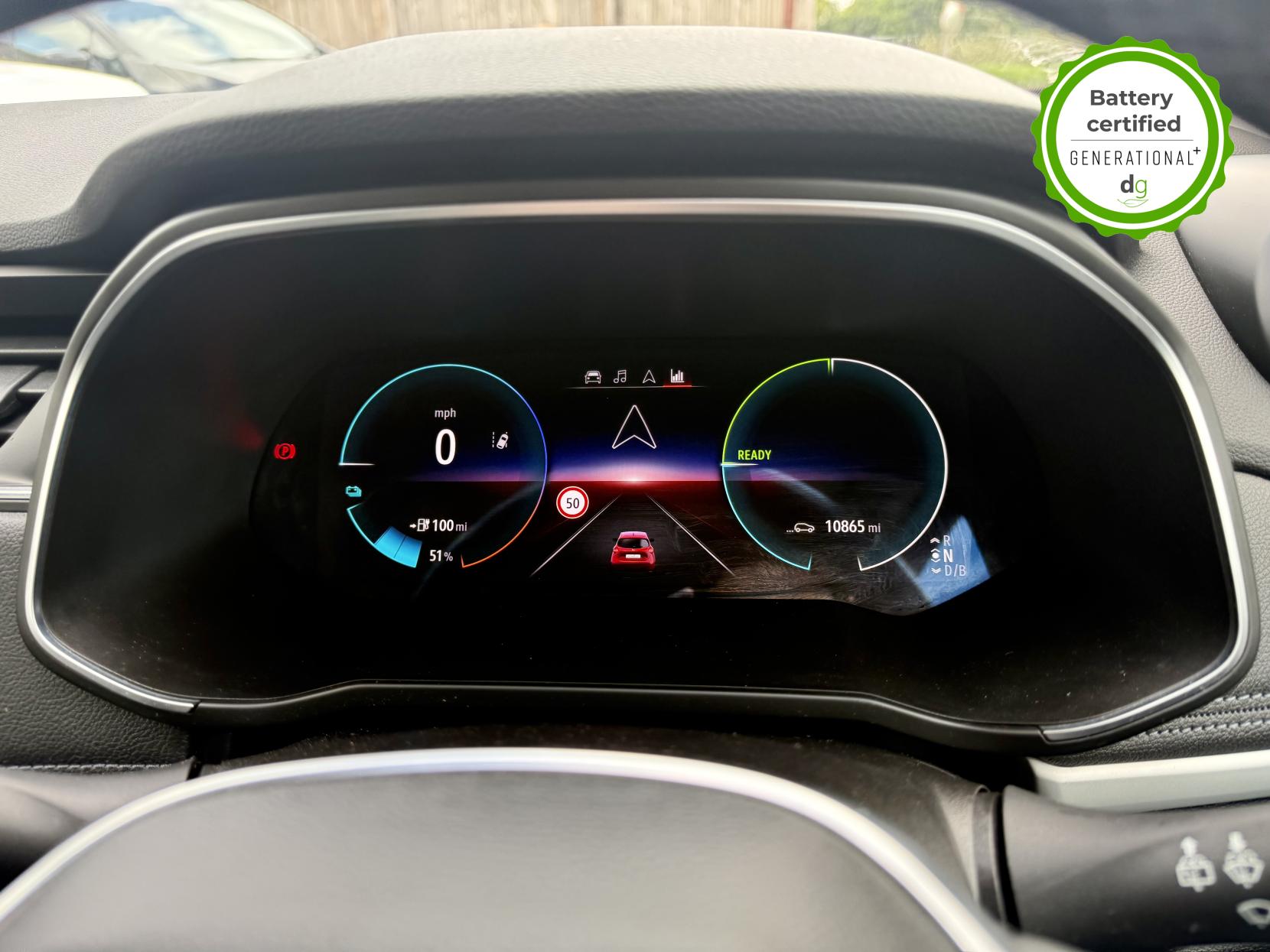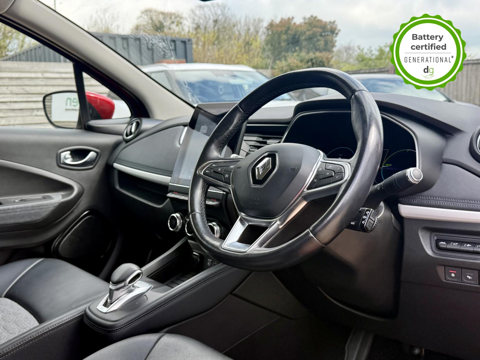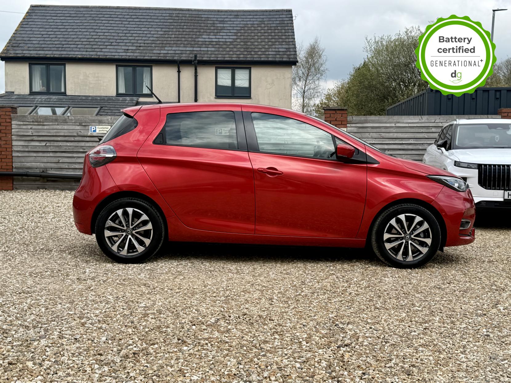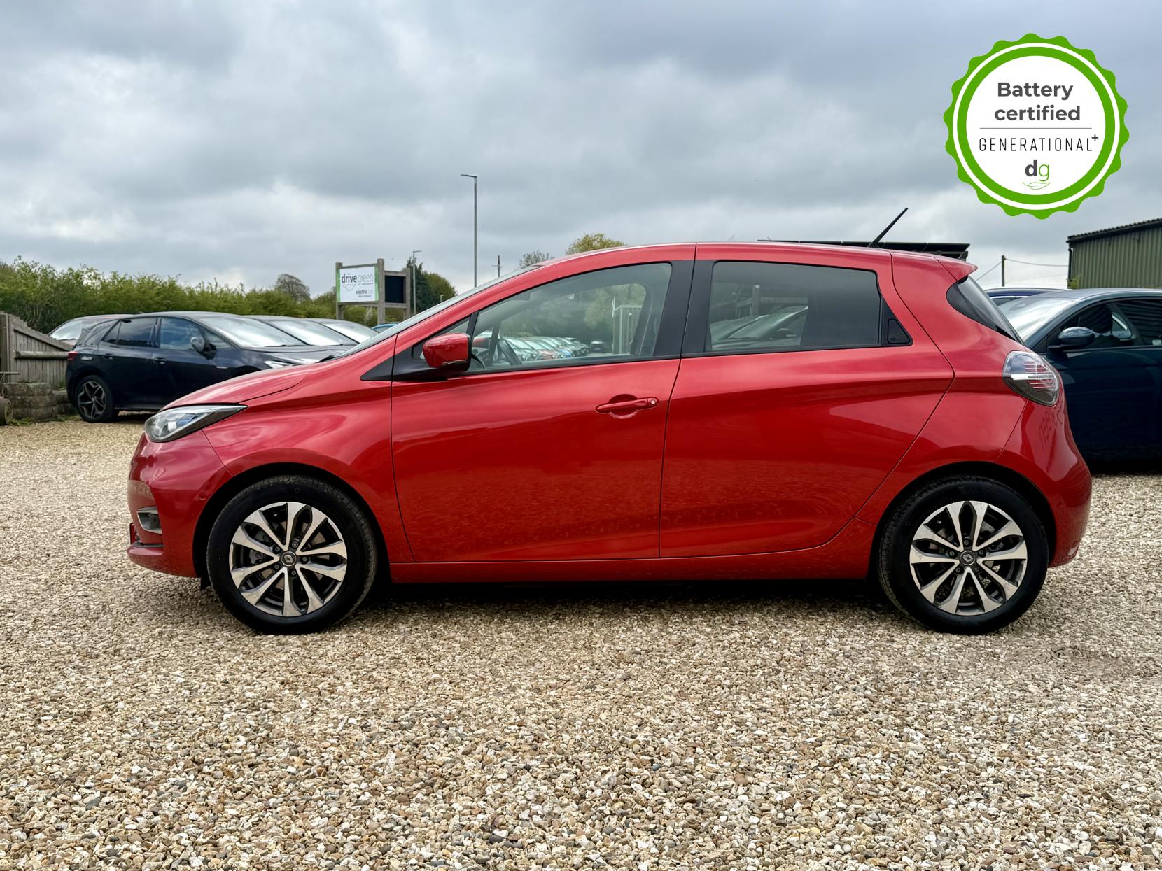 This particular Zoe is in excellent condition and fully prepared to our high standard, has 2 keys, 1 previous owner, and it is December 2026 until its next service or MOT is due. It is also showing an excellent and well above average battery health of 97%. The 50kWh Renault Zoe has approx. 200-220 miles of driving range, depending on your driving style and time of year, and comes standard with LED headlights, an electronic handbrake and rear sweeping indicators. The particular car comes with the optional rapid charge feature, which means you can charge about 100 miles of range back into the car in a 30 minute charging stop. The GT LINE trim level includes some great spec, including automatic lights and wipers, cruise control, front fog lights keyless entry, 9.3′ infotainment screen with SAT NAV, front and rear parking sensors and a reversing camera and stylish diamond cut alloys. If you are after a great value EV with 200+ miles of driving range and plenty of style and spec this could be the perfect EV for you. Unlike Car Supermarkets we have no hidden admin fees, there is no pressure selling, and we offer low finance rates. We also perform battery health checks on all our vehicles, so you can have the comfort of knowing the battery state of health of the EV you choose. Hopefully you will choose to buy your EV from Drive Green, as we are a multi award winning EV specialist and sustainable business, here to help you get the most from your switch to electric driving. Contact us to book an appointment to view and test drive this car, or to find out more about switching to electric driving, and to discuss purchase options, including buying on finance, and our remote buying and delivery service. We are also able to supply your home charge point also, making the switch to electric driving super easy for you. Drive Green is a true EV specialist and the UK’s biggest electric car only dealership, since 2017. FORECOURT VISITS AND TEST DRIVES BY APPOINTMENT ONLY.