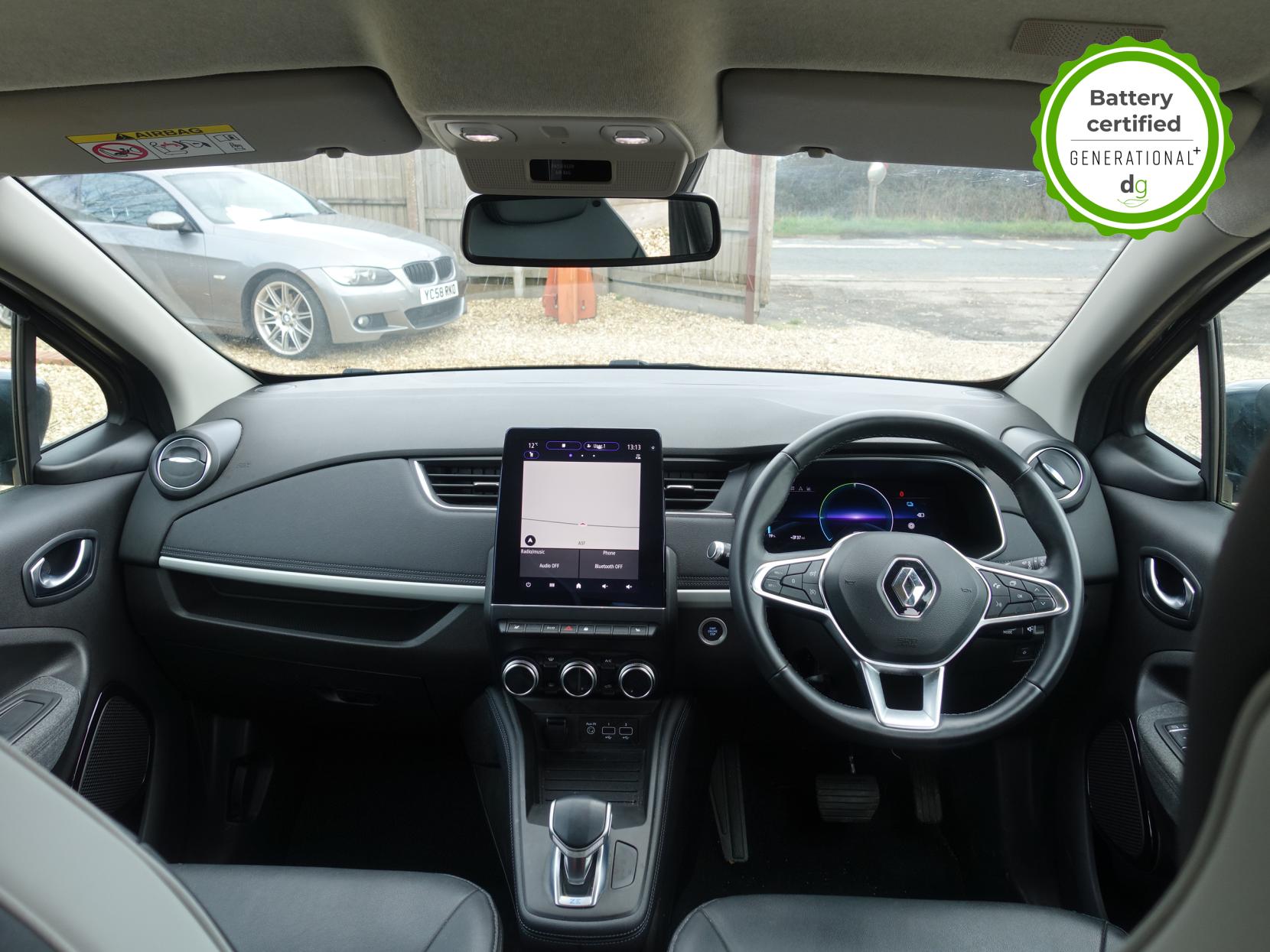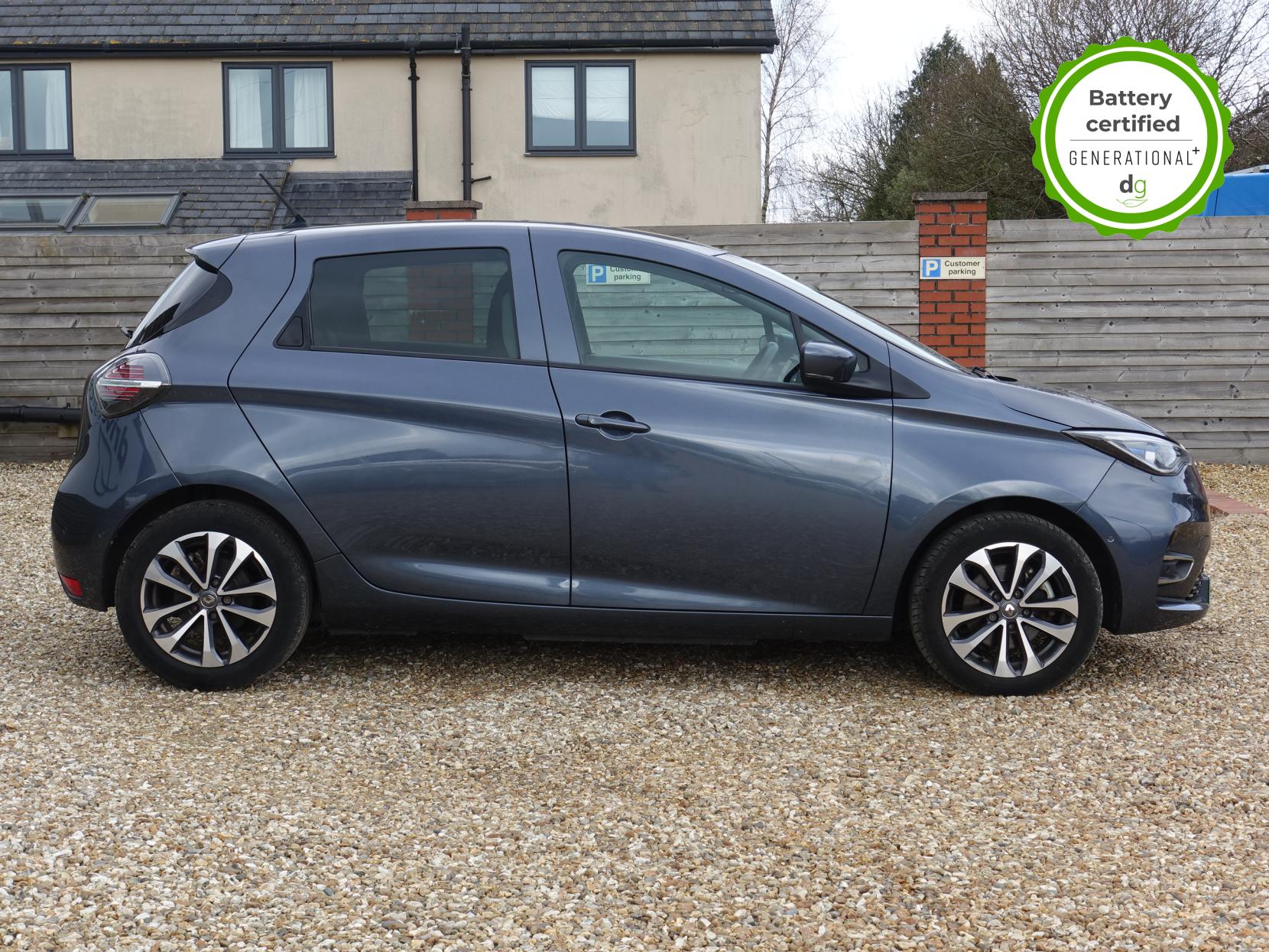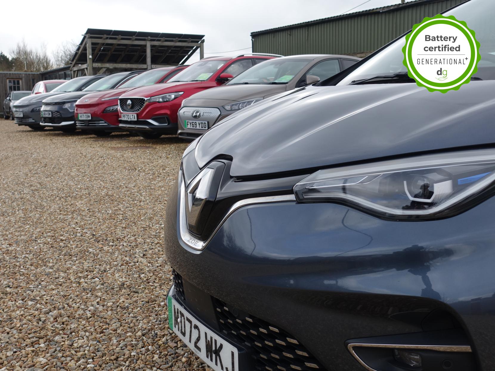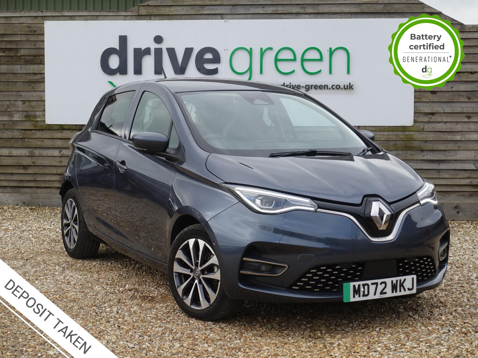 This particular Zoe is in excellent condition and fully prepared to our high standard, has 2 keys, 1 previous owner, and it will be February 2027 until its next service and the end of December 2026 when its MOT is due. It also has an excellent 96% battery health which is very good for a Zoe, and well above average. This car also has the Winter pack upgrade giving it heated seats and a heated steering wheel.The 50kWh Renault Zoe has approx. 200-220 miles of driving range, depending on your driving style and time of year, and comes standard with LED headlights, an electronic handbrake and rear sweeping indicators. The particular car comes with the optional rapid charge feature, which means you can charge about 100 miles of range back into the car in a 30 minute charging stop. The GT LINE trim level includes some great spec, including automatic lights and wipers, cruise control, front fog lights keyless entry, 9.3′ infotainment screen with SAT NAV, front and rear parking sensors and a reversing camera and stylish diamond cut alloys. If you are after a great value EV with 200+ miles of driving range and plenty of style and spec this could be the perfect EV for you. Unlike Car Supermarkets we have no hidden admin fees, there is no pressure selling, and we offer low finance rates. We also perform battery health checks on all our vehicles, so you can have the comfort of knowing the battery state of health of the EV you choose. Hopefully you will choose to buy your EV from Drive Green, as we are a multi award winning EV specialist and sustainable business, here to help you get the most from your switch to electric driving. Contact us to book an appointment to view and test drive this car, or to find out more about switching to electric driving, and to discuss purchase options, including buying on finance, and our remote buying and delivery service. We are also able to supply your home charge point also, making the switch to electric driving super easy for you. Drive Green is a true EV specialist and the UK’s biggest electric car only dealership, since 2017. FORECOURT VISITS AND TEST DRIVES BY APPOINTMENT ONLY.