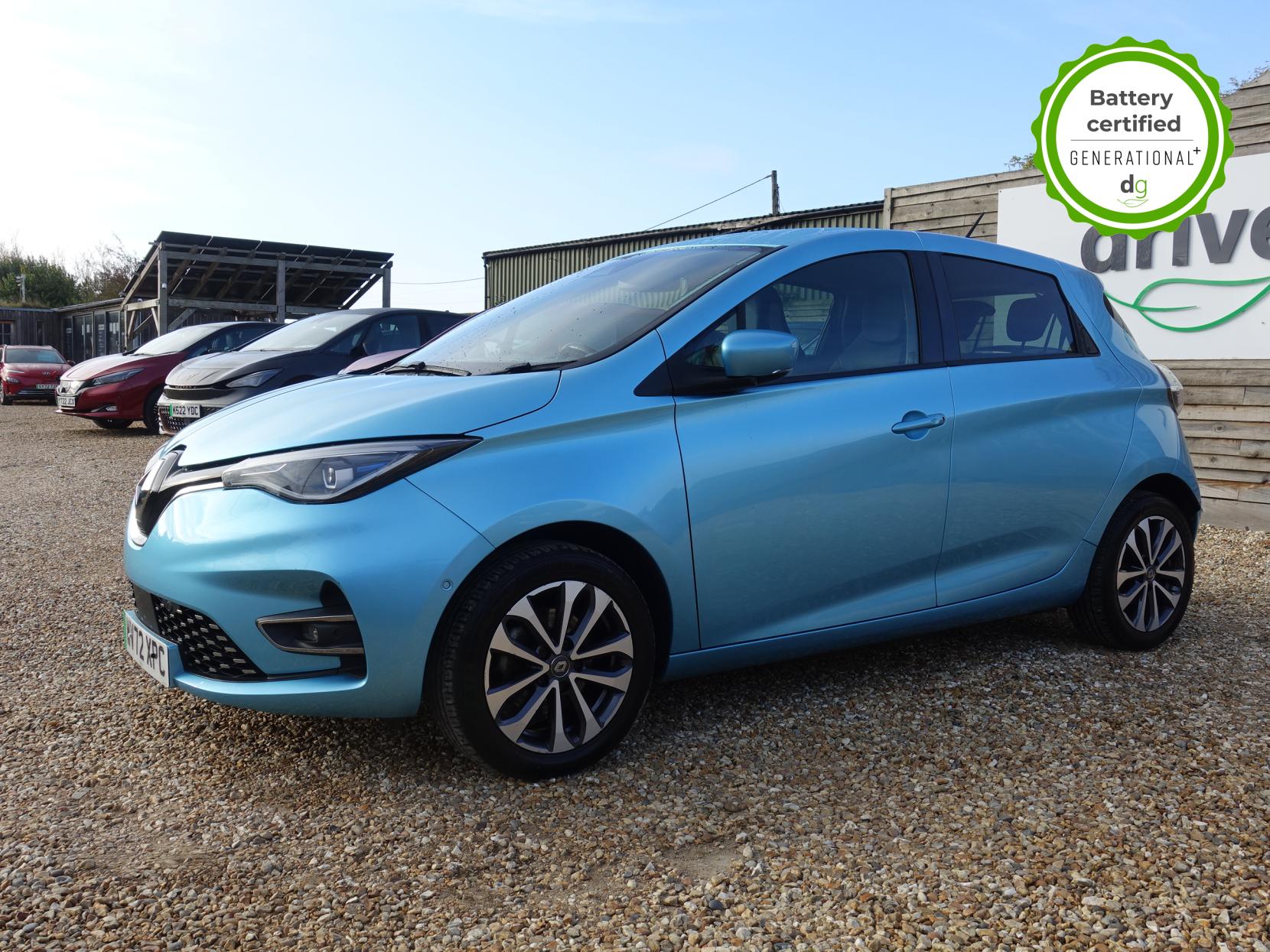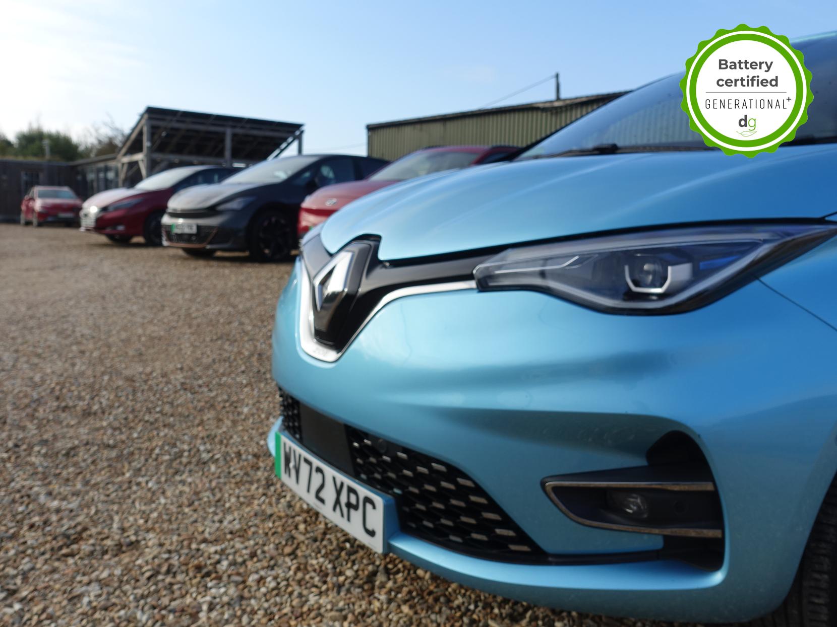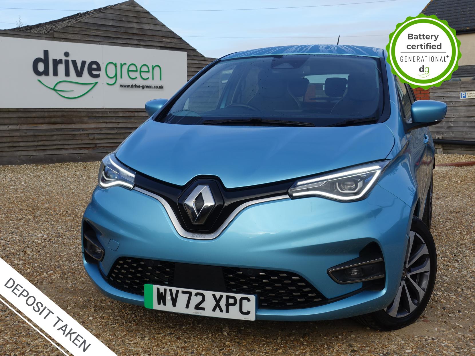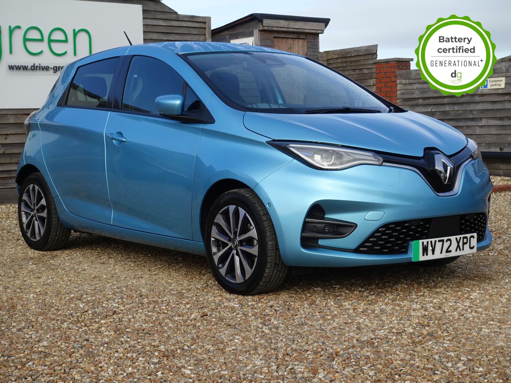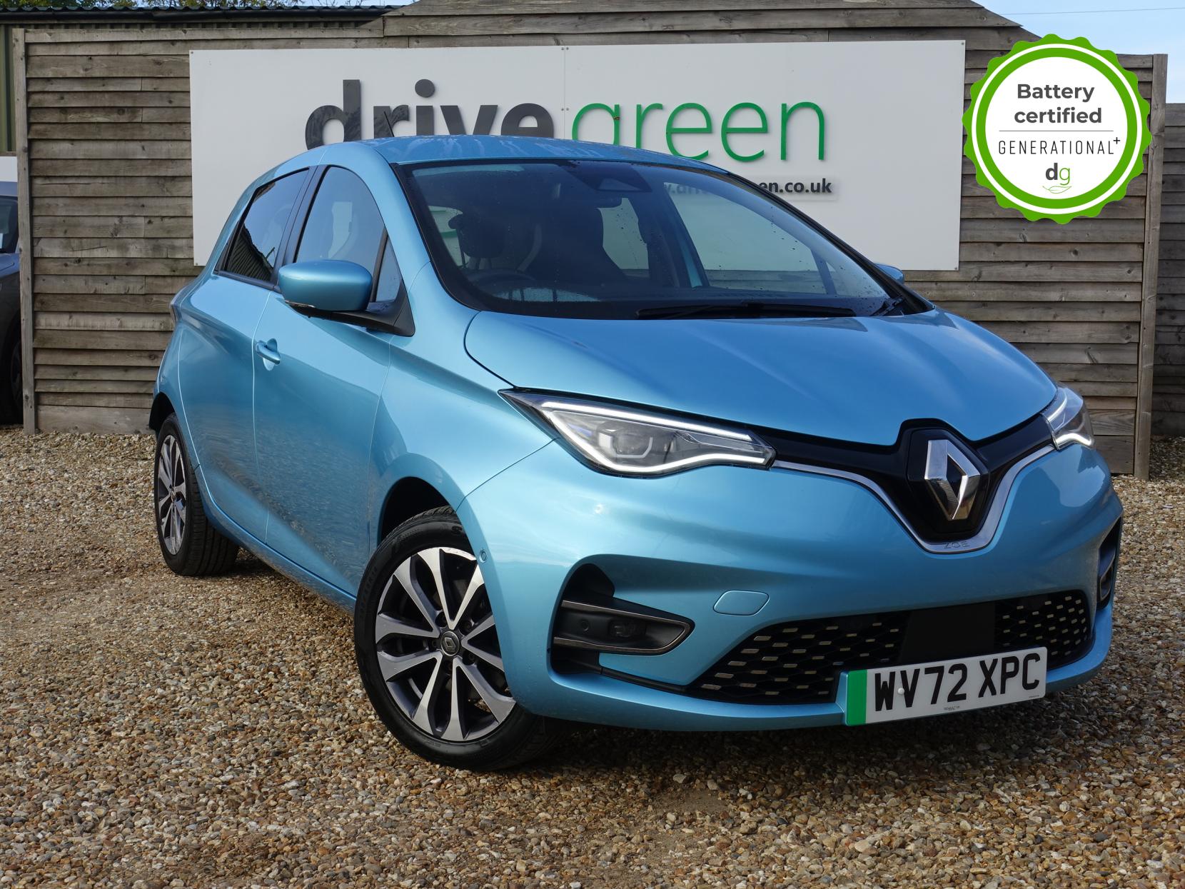 OVER £700 OF OPTIONAL EXTRAS! This particular Zoe is in excellent condition and fully prepared to our high standard and will have a minimum of 6 months until its next service or MOT is due. The 50kWh Renault Zoe has approx. 200-220 miles of driving range, depending on your driving style and time of year, H#has heated seats and steering wheel, and comes standard with LED headlights, an electronic handbrake and rear sweeping indicators. The particular car comes with the optional rapid charge feature, which means you can charge about 100 miles of range back into the car in a 30 minute charging stop. The GT LINE trim level includes some great spec, including automatic lights and wipers, cruise control, front fog lights keyless entry, 9.3′ infotainment screen with SAT NAV, front and rear parking sensors and a reversing camera and stylish diamond cut alloys. If you are after a great value EV with 200+ miles of driving range and plenty of style and spec this could be the perfect EV for you. Unlike Car Supermarkets we have no hidden admin fees, there is no pressure selling, and we offer low finance rates. We also perform battery health checks on all our vehicles, so you can have the comfort of knowing the battery state of health of the EV you choose. Hopefully you will choose to buy your EV from Drive Green, as we are a multi award winning EV specialist and sustainable business, here to help you get the most from your switch to electric driving. Contact us to book an appointment to view and test drive this car, or to find out more about switching to electric driving, and to discuss purchase options, including buying on finance, and our remote buying and delivery service. We are also able to supply your home charge point also, making the switch to electric driving super easy for you. Drive Green is a true EV specialist and the UK’s biggest electric car only dealership, since 2017. FORECOURT VISITS AND TEST DRIVES BY APPOINTMENT ONLY.