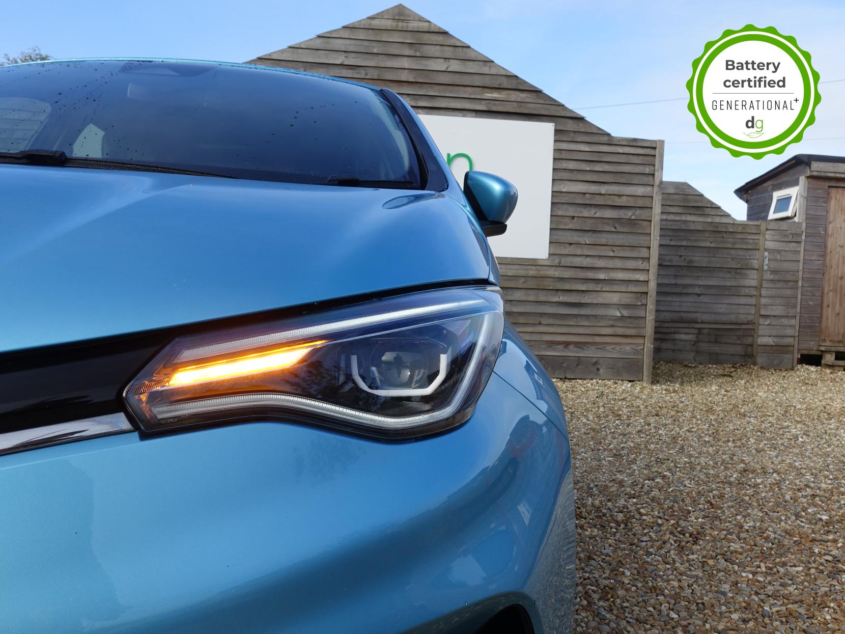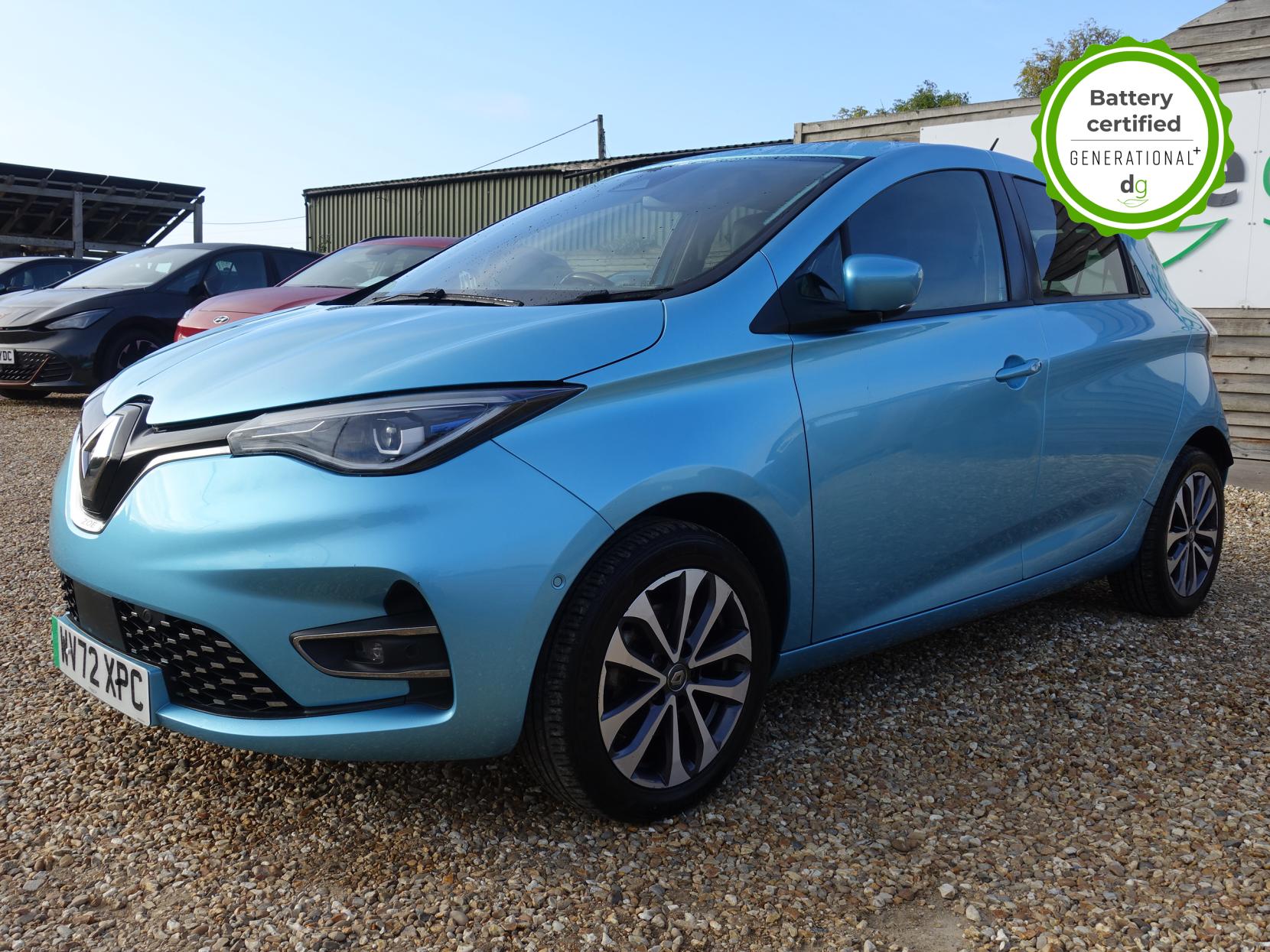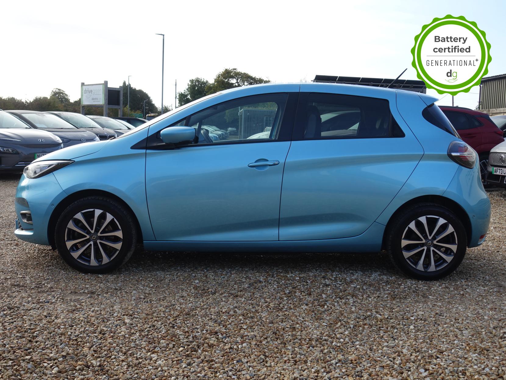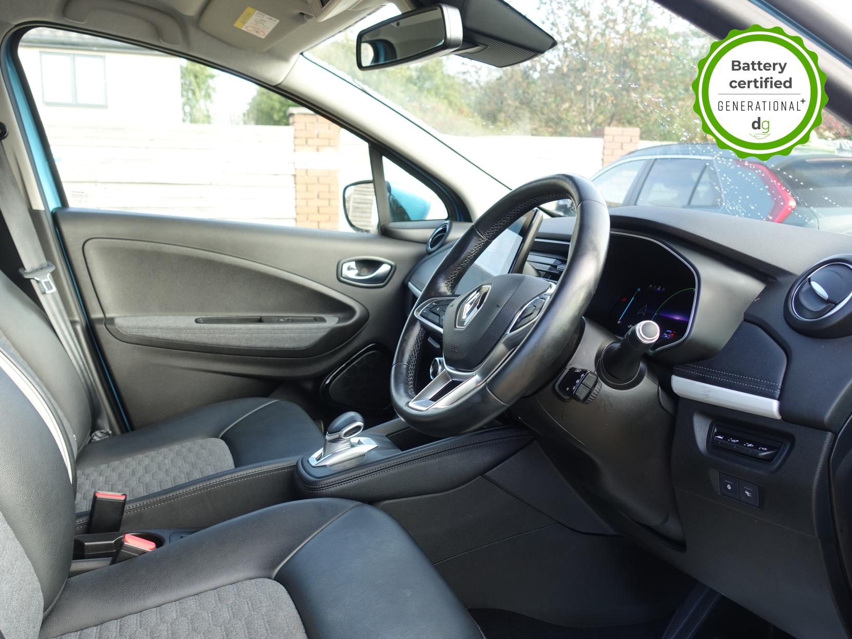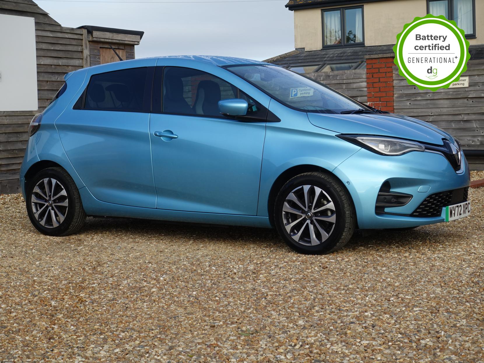 OVER £700 OF OPTIONAL EXTRAS! This particular Zoe is in excellent condition and fully prepared to our high standard and will have a minimum of 6 months until its next service or MOT is due. The 50kWh Renault Zoe has approx. 200-220 miles of driving range, depending on your driving style and time of year, H#has heated seats and steering wheel, and comes standard with LED headlights, an electronic handbrake and rear sweeping indicators. The particular car comes with the optional rapid charge feature, which means you can charge about 100 miles of range back into the car in a 30 minute charging stop. The GT LINE trim level includes some great spec, including automatic lights and wipers, cruise control, front fog lights keyless entry, 9.3′ infotainment screen with SAT NAV, front and rear parking sensors and a reversing camera and stylish diamond cut alloys. If you are after a great value EV with 200+ miles of driving range and plenty of style and spec this could be the perfect EV for you. Unlike Car Supermarkets we have no hidden admin fees, there is no pressure selling, and we offer low finance rates. We also perform battery health checks on all our vehicles, so you can have the comfort of knowing the battery state of health of the EV you choose. Hopefully you will choose to buy your EV from Drive Green, as we are a multi award winning EV specialist and sustainable business, here to help you get the most from your switch to electric driving. Contact us to book an appointment to view and test drive this car, or to find out more about switching to electric driving, and to discuss purchase options, including buying on finance, and our remote buying and delivery service. We are also able to supply your home charge point also, making the switch to electric driving super easy for you. Drive Green is a true EV specialist and the UK’s biggest electric car only dealership, since 2017. FORECOURT VISITS AND TEST DRIVES BY APPOINTMENT ONLY.