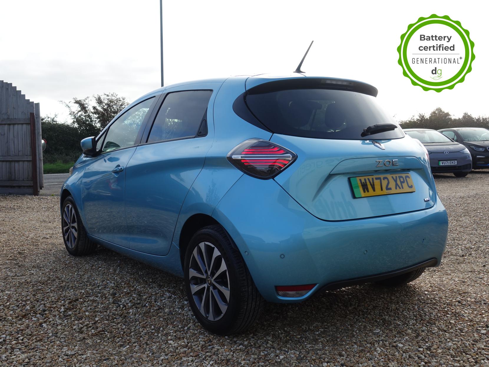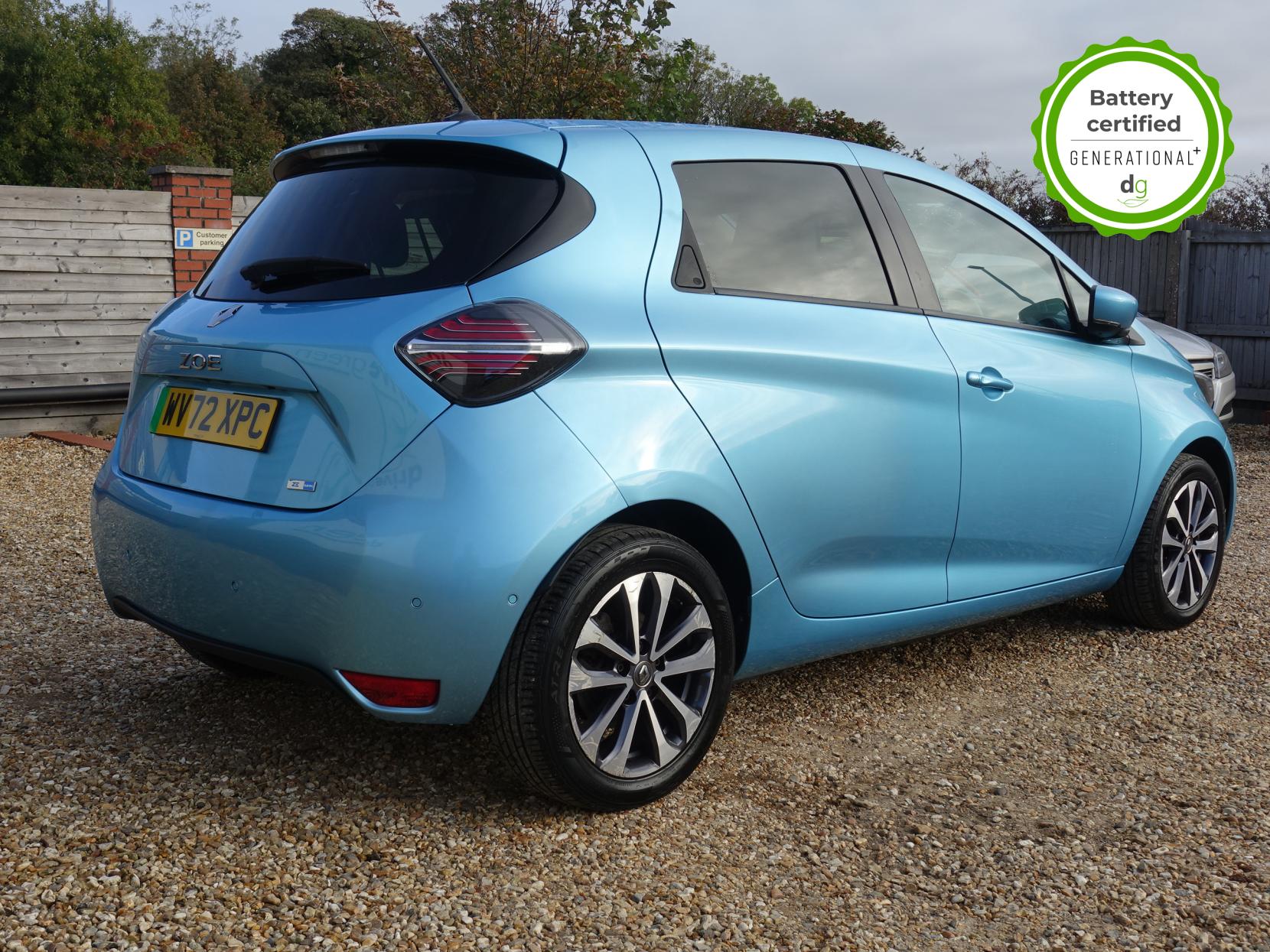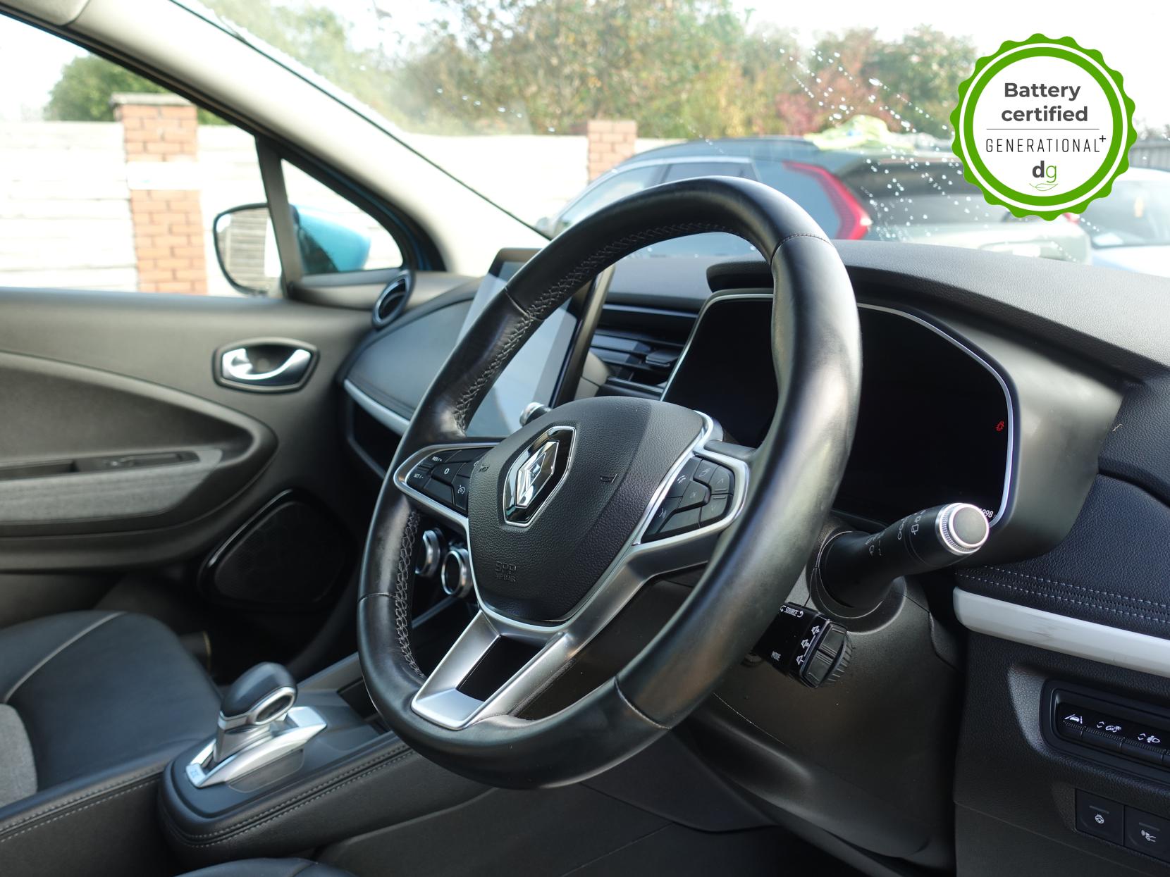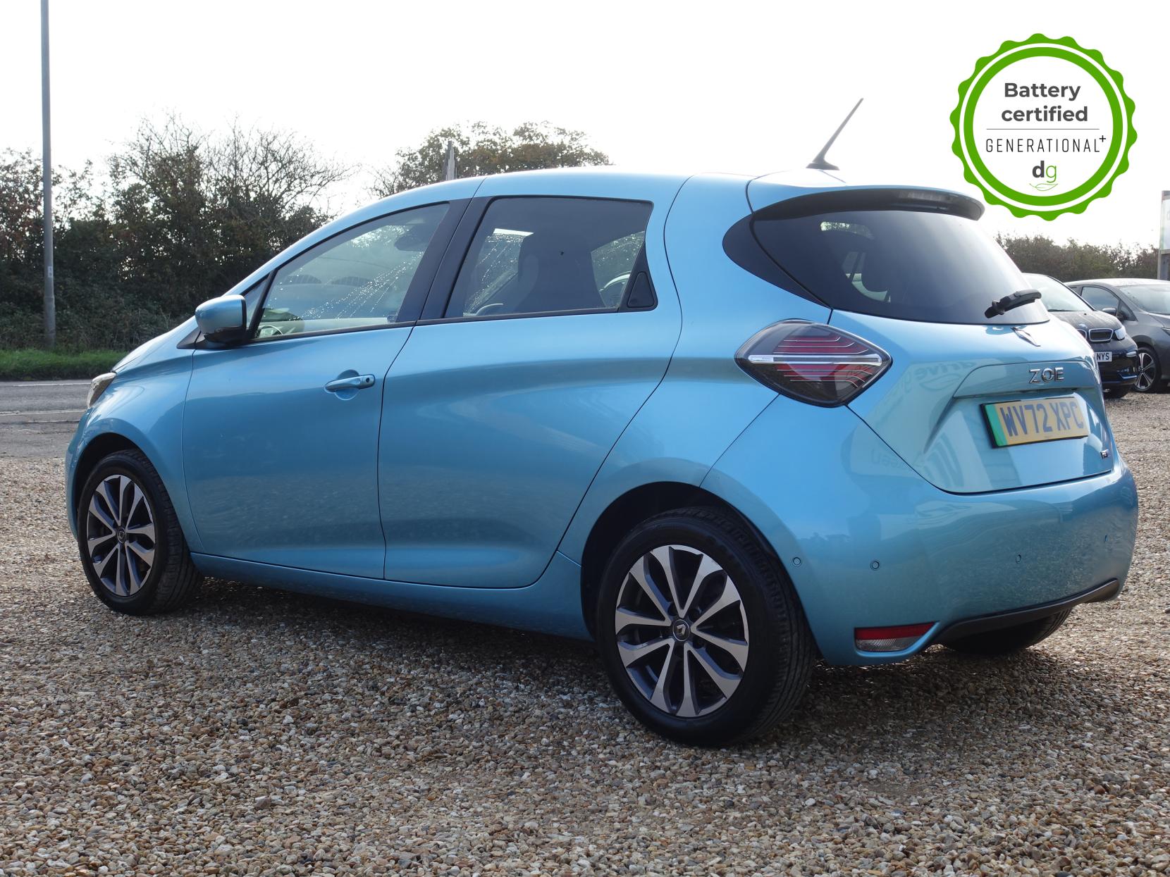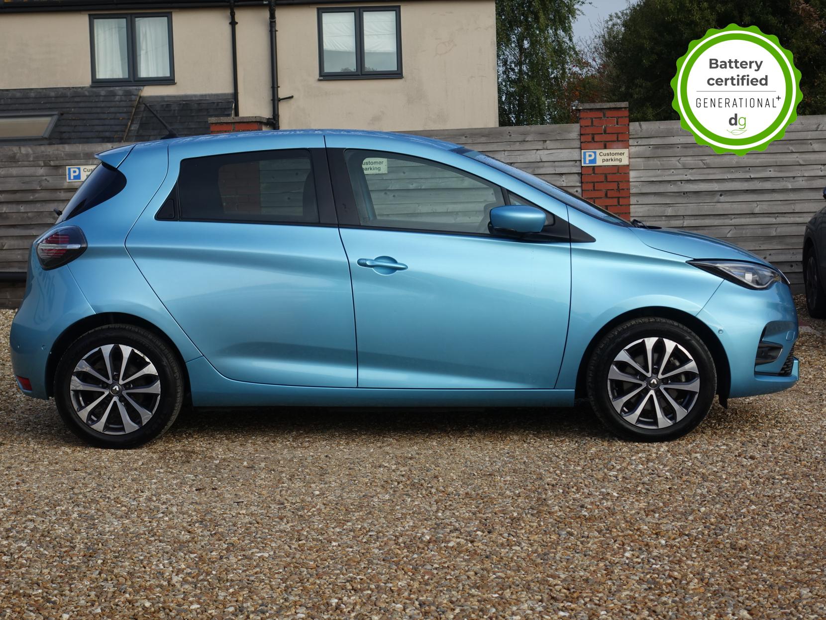 OVER £700 OF OPTIONAL EXTRAS! This particular Zoe is in excellent condition and fully prepared to our high standard and will have a minimum of 6 months until its next service or MOT is due. The 50kWh Renault Zoe has approx. 200-220 miles of driving range, depending on your driving style and time of year, H#has heated seats and steering wheel, and comes standard with LED headlights, an electronic handbrake and rear sweeping indicators. The particular car comes with the optional rapid charge feature, which means you can charge about 100 miles of range back into the car in a 30 minute charging stop. The GT LINE trim level includes some great spec, including automatic lights and wipers, cruise control, front fog lights keyless entry, 9.3′ infotainment screen with SAT NAV, front and rear parking sensors and a reversing camera and stylish diamond cut alloys. If you are after a great value EV with 200+ miles of driving range and plenty of style and spec this could be the perfect EV for you. Unlike Car Supermarkets we have no hidden admin fees, there is no pressure selling, and we offer low finance rates. We also perform battery health checks on all our vehicles, so you can have the comfort of knowing the battery state of health of the EV you choose. Hopefully you will choose to buy your EV from Drive Green, as we are a multi award winning EV specialist and sustainable business, here to help you get the most from your switch to electric driving. Contact us to book an appointment to view and test drive this car, or to find out more about switching to electric driving, and to discuss purchase options, including buying on finance, and our remote buying and delivery service. We are also able to supply your home charge point also, making the switch to electric driving super easy for you. Drive Green is a true EV specialist and the UK’s biggest electric car only dealership, since 2017. FORECOURT VISITS AND TEST DRIVES BY APPOINTMENT ONLY.