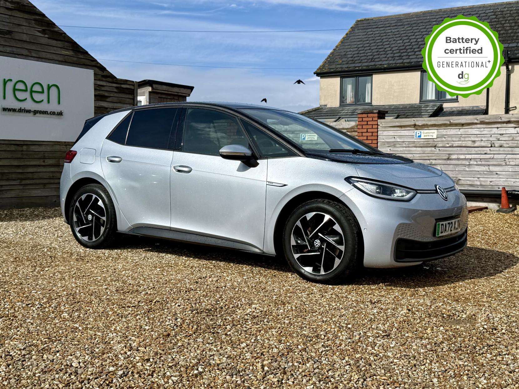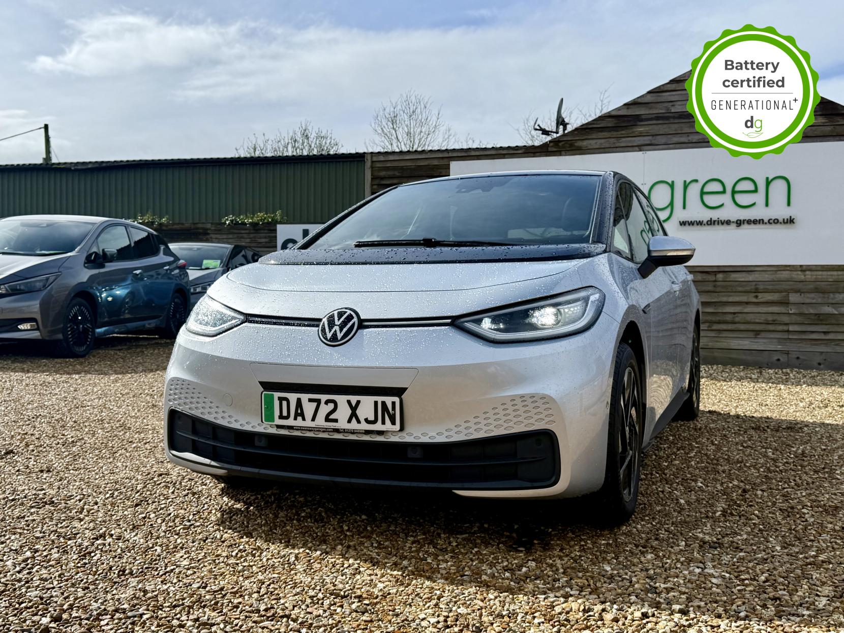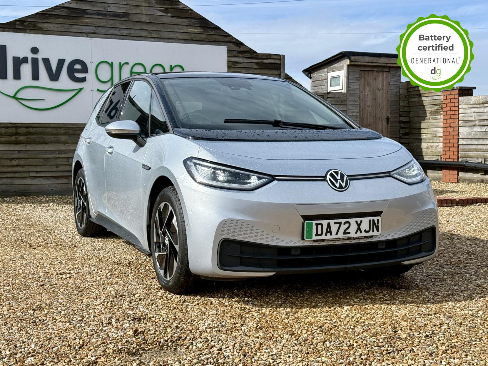 This particular iD3 is in excellent condition and fully prepared to our high standard, has 2 keys, 1 previous owner, and it will be March 2028 until its next service and November 2026 when its MOT is due. It also has an excellent well above average 95% battery health. This VW ID3 FAMILY model comes with 18” alloy wheels, 10” infotainment system with SAT Nav and the comfort pack. Lots of safety equipment comes as standard including, adaptive cruise control incl. front assist, front and rear sensors, and forward collision warning. Led exterior lighting is included and so is wireless Apple CarPlay and Android Auto. As with all ID 3s a clear and well-designed digital dash is standard, and it has an excellent easy to use infotainment system. It also has a stunning panoramic roof. The ID3 is has a real-world range of around 250 miles from its 58kWh battery. If you are looking for a stylish, practical and well spec’d iD3 in great condition this could be the perfect iD3 for you. Unlike Car Supermarkets we have no hidden admin fees, there is no pressure selling, and we offer low finance rates. We also perform battery health checks on all our vehicles, so you can have the comfort of knowing the battery state of health of the EV you choose. Hopefully you will choose to buy your EV from Drive Green, as we are a multi award winning EV specialist and sustainable business, here to help you get the most from your switch to electric driving. Contact us to book an appointment to view and test drive this car, or to find out more about switching to electric driving, and to discuss purchase options, including buying on finance, and our remote buying and delivery service. We are also able to supply your home charge point also, making the switch to electric driving super easy for you. Drive Green is a true EV specialist and the UK’s biggest electric car only dealership, since 2017. FORECOURT VISITS AND TEST DRIVES BY APPOINTMENT ONLY.