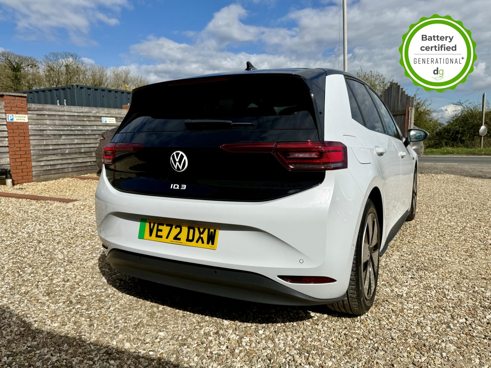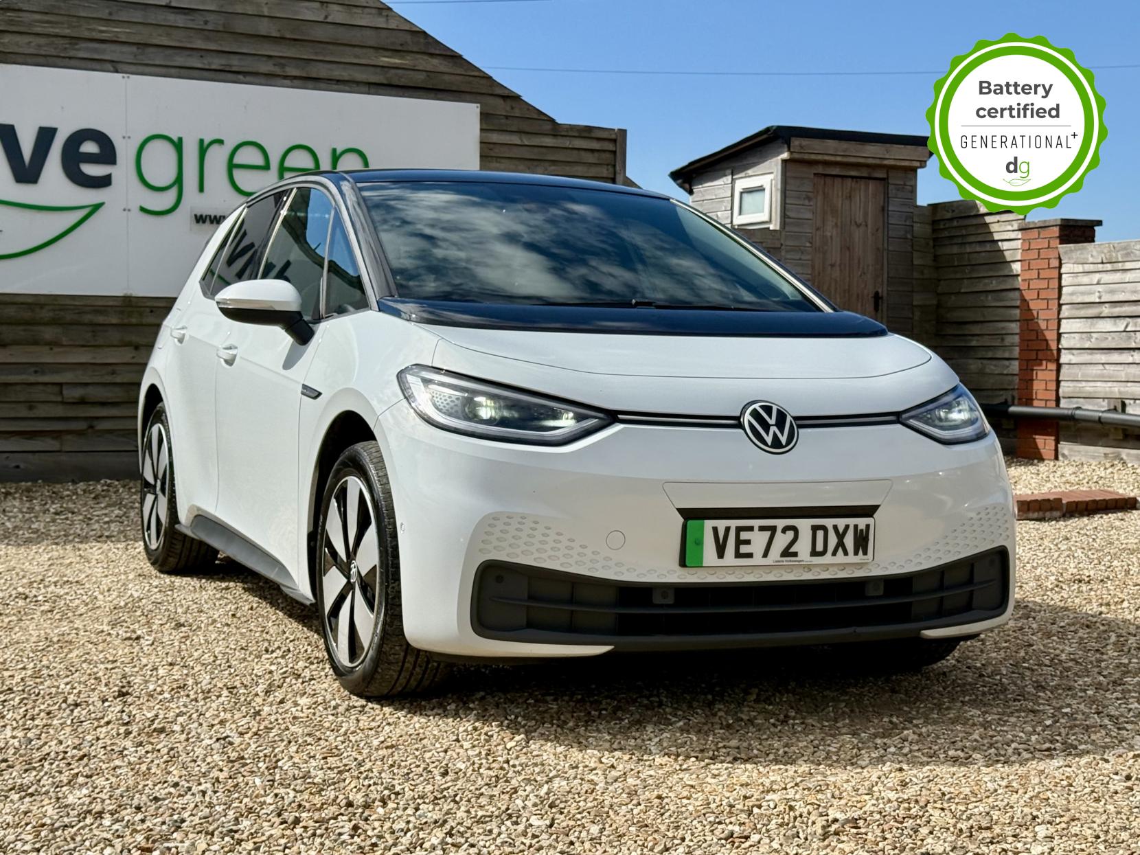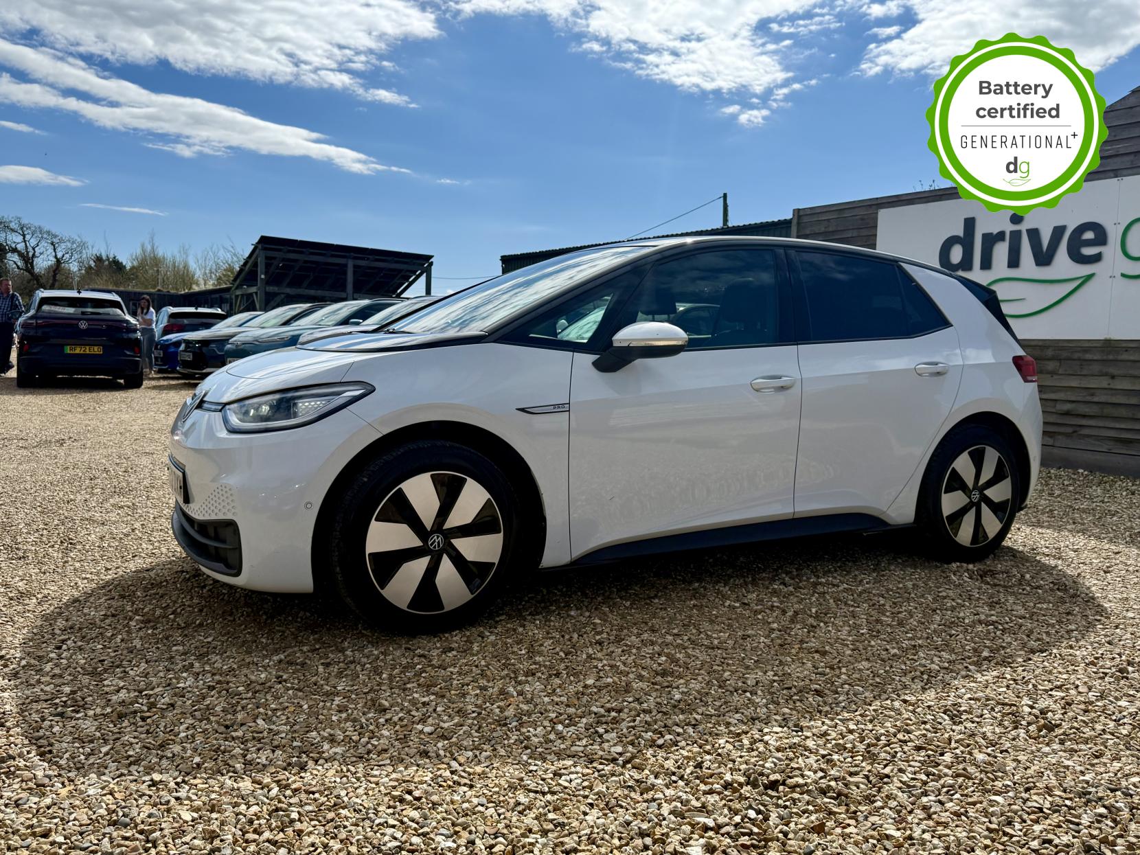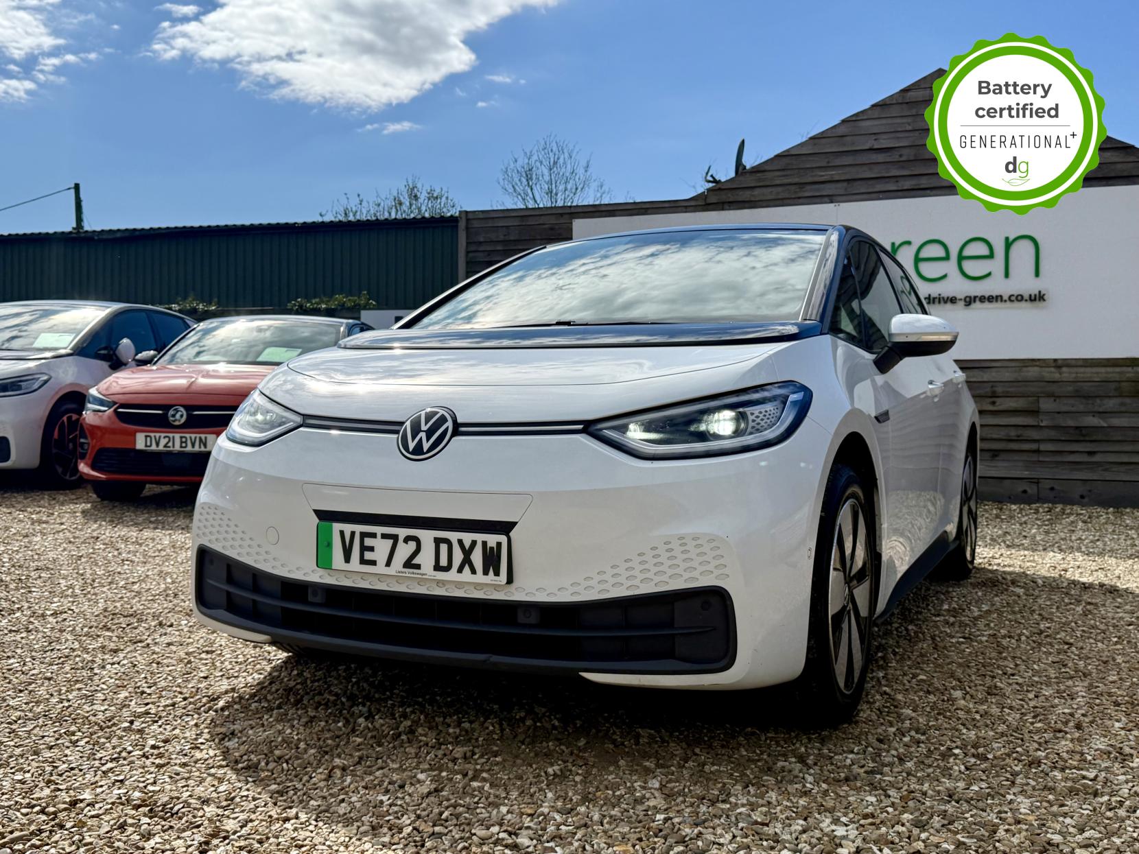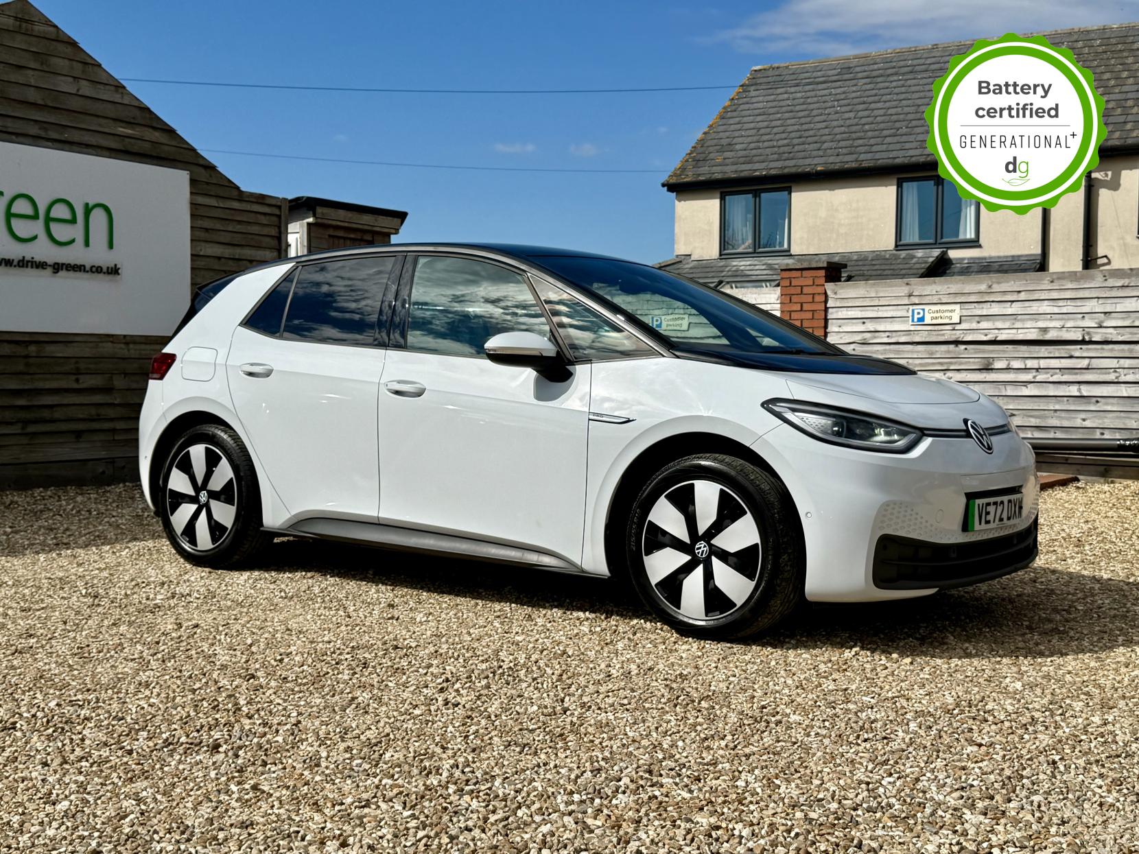 This particular iD3 is in excellent condition and fully prepared to our high standard, has 1 previous owner, and it is January 2027 until its next service and the end of December 2026 when its MOT is due. It also has an excellent and above average 94% battery health. This VW ID3 FAMILY model comes with 18” bi-colour wheels, 10” infotainment system with SAT Nav and the comfort pack. Lots of safety equipment comes as standard including, adaptive cruise control incl. front assist, front and rear sensors, and forward collision warning. Led exterior lighting is included and so is wireless Apple CarPlay and Android Auto. As with all ID 3s a clear and well-designed digital dash is standard, and it has an excellent easy to use infotainment system. It also has a stunning panoramic roof. The ID3 is has a real-world range of around 250 miles from its 58kWh battery. If you are looking for a stylish, practical and well spec’d iD3 in great condition this could be the perfect iD3 for you. Unlike Car Supermarkets we have no hidden admin fees, there is no pressure selling, and we offer low finance rates. We also perform battery health checks on all our vehicles, so you can have the comfort of knowing the battery state of health of the EV you choose. Hopefully you will choose to buy your EV from Drive Green, as we are a multi award winning EV specialist and sustainable business, here to help you get the most from your switch to electric driving. Contact us to book an appointment to view and test drive this car, or to find out more about switching to electric driving, and to discuss purchase options, including buying on finance, and our remote buying and delivery service. We are also able to supply your home charge point also, making the switch to electric driving super easy for you. Drive Green is a true EV specialist and the UK’s biggest electric car only dealership, since 2017. FORECOURT VISITS AND TEST DRIVES BY APPOINTMENT ONLY.