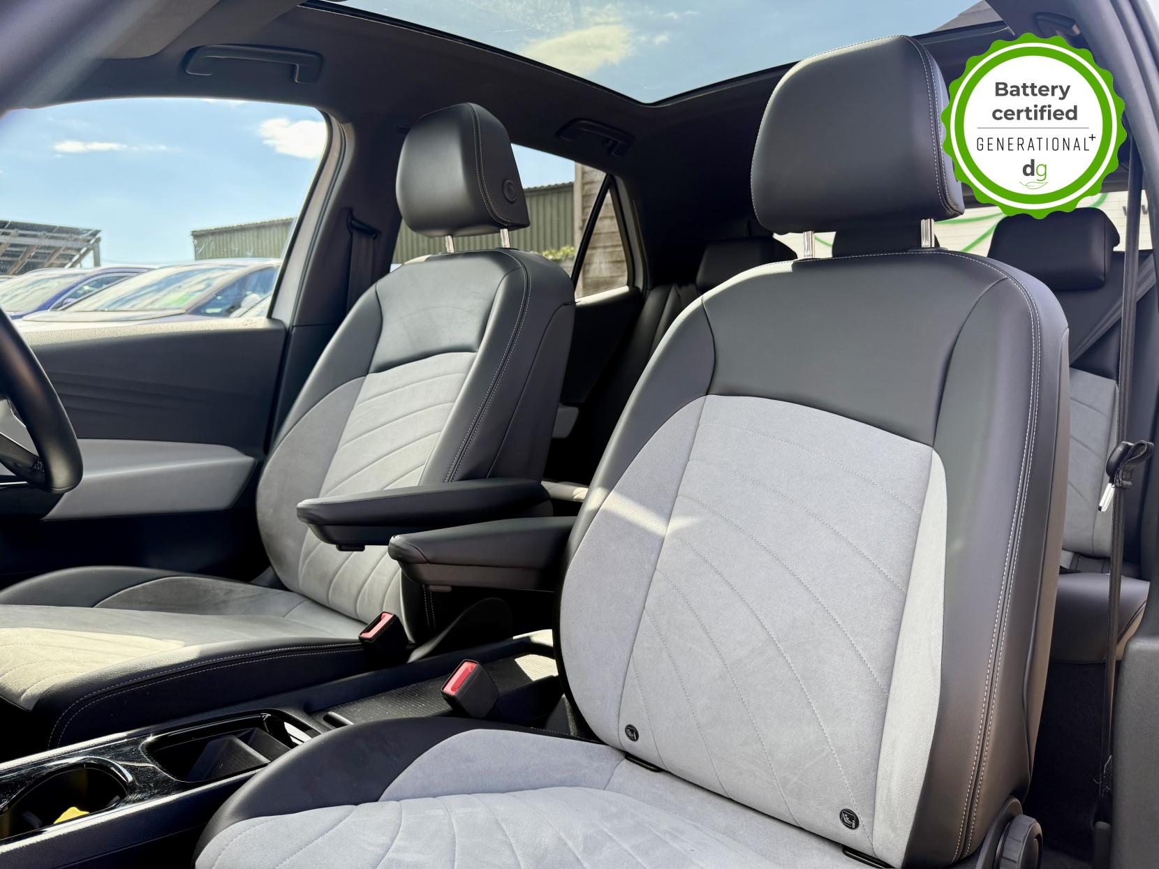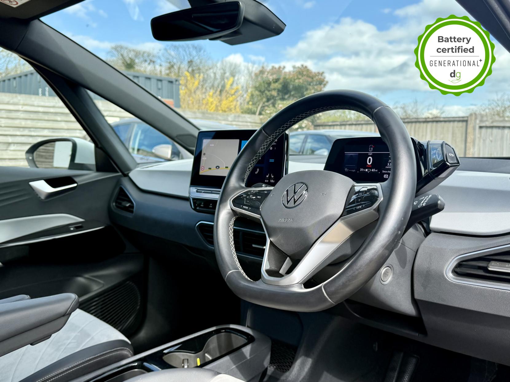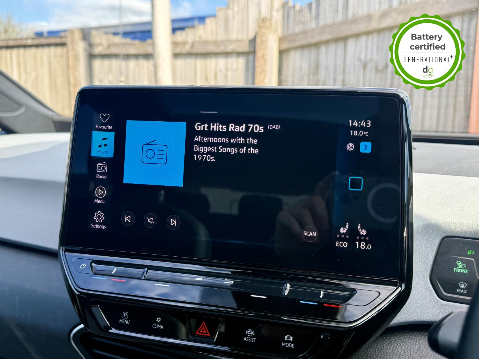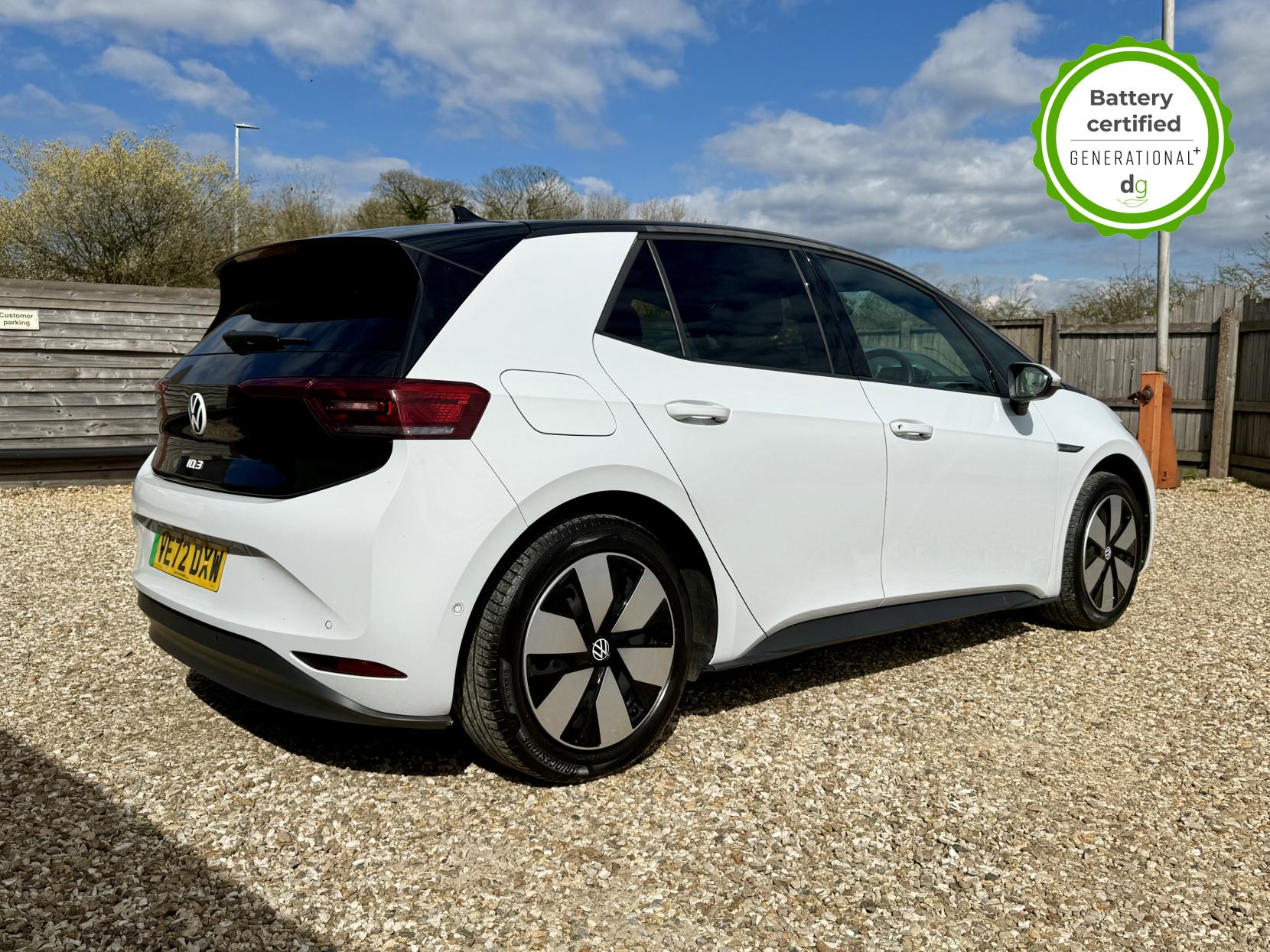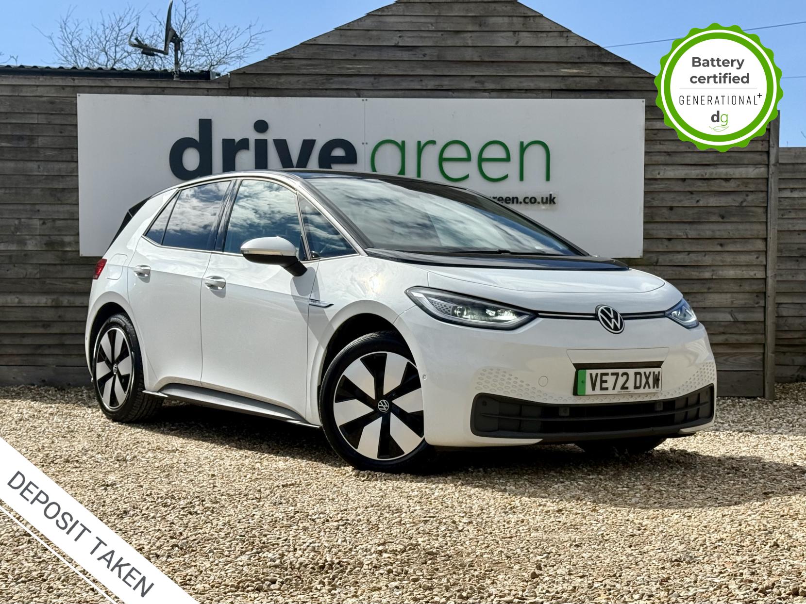 This particular iD3 is in excellent condition and fully prepared to our high standard, has 1 previous owner, and it is January 2027 until its next service and the end of December 2026 when its MOT is due. It also has an excellent and above average 94% battery health. This VW ID3 FAMILY model comes with 18” bi-colour wheels, 10” infotainment system with SAT Nav and the comfort pack. Lots of safety equipment comes as standard including, adaptive cruise control incl. front assist, front and rear sensors, and forward collision warning. Led exterior lighting is included and so is wireless Apple CarPlay and Android Auto. As with all ID 3s a clear and well-designed digital dash is standard, and it has an excellent easy to use infotainment system. It also has a stunning panoramic roof. The ID3 is has a real-world range of around 250 miles from its 58kWh battery. If you are looking for a stylish, practical and well spec’d iD3 in great condition this could be the perfect iD3 for you. Unlike Car Supermarkets we have no hidden admin fees, there is no pressure selling, and we offer low finance rates. We also perform battery health checks on all our vehicles, so you can have the comfort of knowing the battery state of health of the EV you choose. Hopefully you will choose to buy your EV from Drive Green, as we are a multi award winning EV specialist and sustainable business, here to help you get the most from your switch to electric driving. Contact us to book an appointment to view and test drive this car, or to find out more about switching to electric driving, and to discuss purchase options, including buying on finance, and our remote buying and delivery service. We are also able to supply your home charge point also, making the switch to electric driving super easy for you. Drive Green is a true EV specialist and the UK’s biggest electric car only dealership, since 2017. FORECOURT VISITS AND TEST DRIVES BY APPOINTMENT ONLY.