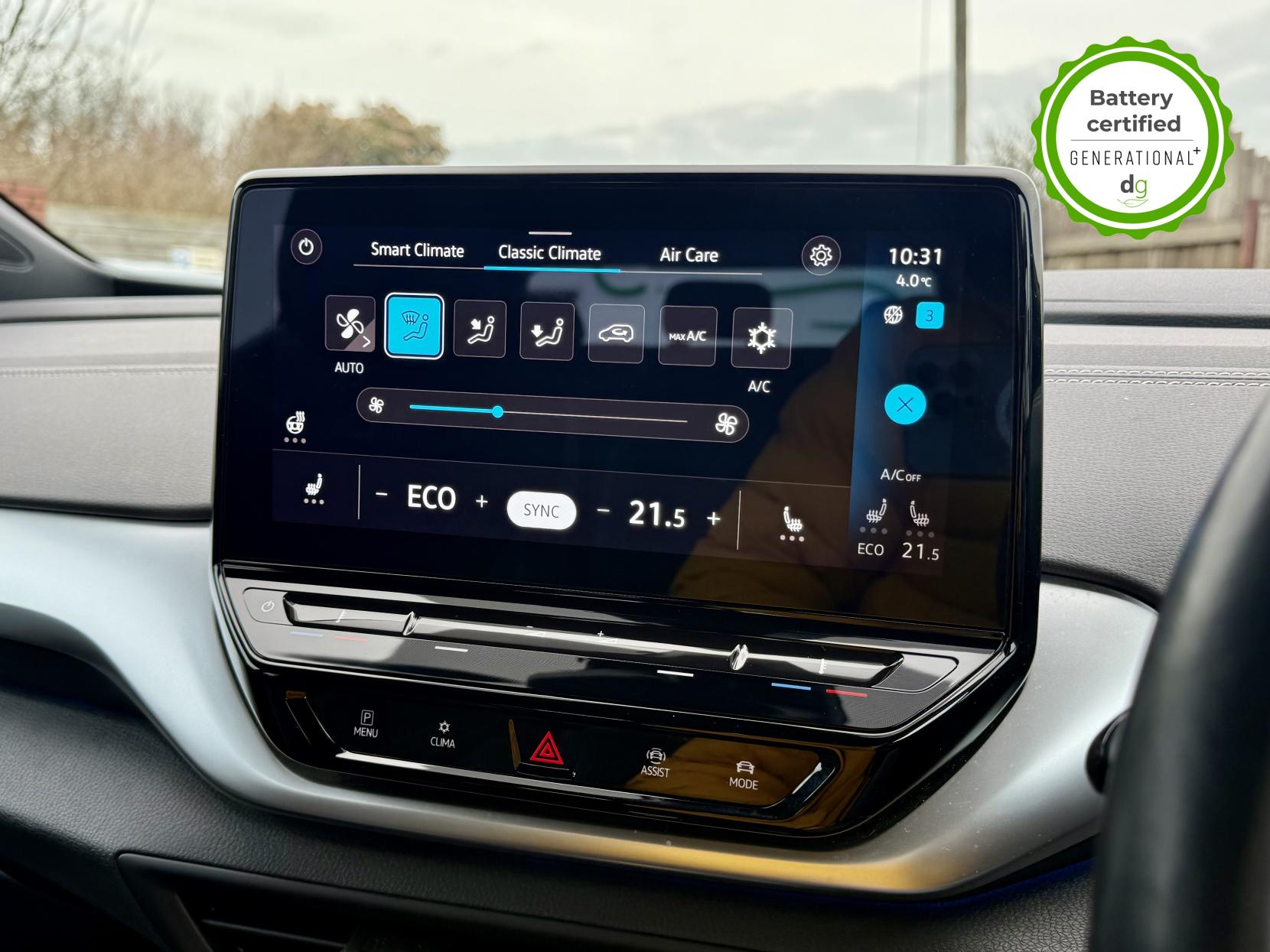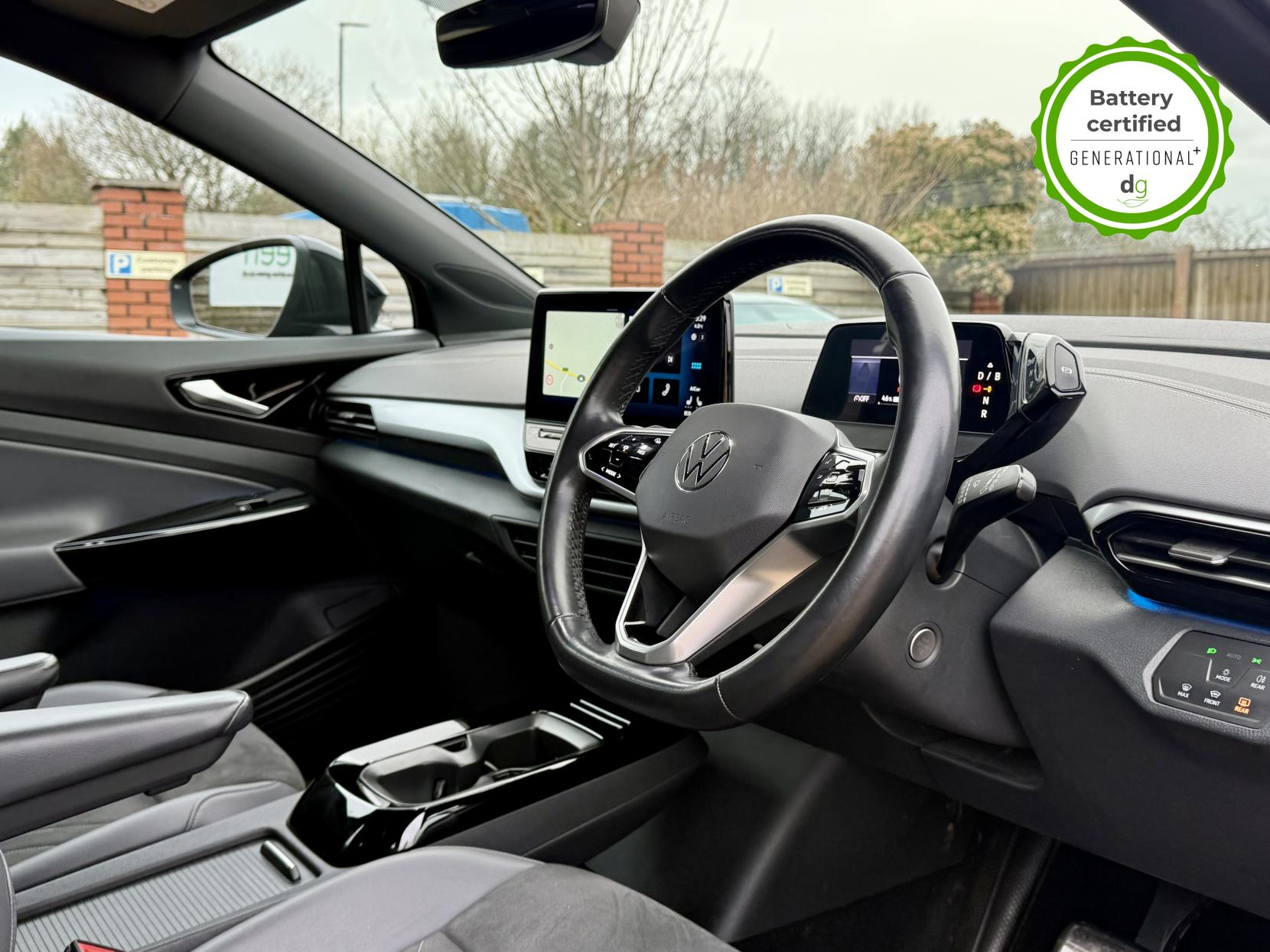 This particular iD4 is in excellent condition and fully prepared to our high standard, has 2 keys, 1 previous owner, a full service history and it will be January 2027 until its next service or MOT is due. It also has an excellent 94% battery state of health. This Life edition comes with heated seats, reversing camera, 10” infotainment system with SAT Nav. Lots of safety equipment comes as standard including, adaptive cruise control incl. front assist, front and rear sensors, and forward collision warning. Led exterior lighting is included and so is wireless Apple CarPlay and Android Auto. As with all ID4’s a clear and well-designed digital dash is standard, and it has an excellent easy to use infotainment system. The ID4 is has a real-world range of around 290 miles from its 77kWh battery. If you are looking for a stylish, practical iD4 in mint condition this could be the perfect EV for you. Unlike Car Supermarkets we have no hidden admin fees, there is no pressure selling, and we offer low finance rates. We also perform battery health checks on all our vehicles, so you can have the comfort of knowing the battery state of health of the EV you choose. Hopefully you will choose to buy your EV from Drive Green, as we are a multi award winning EV specialist and sustainable business, here to help you get the most from your switch to electric driving. Contact us to book an appointment to view and test drive this car, or to find out more about switching to electric driving, and to discuss purchase options, including buying on finance, and our remote buying and delivery service. We are also able to supply your home charge point also, making the switch to electric driving super easy for you. Drive Green is a true EV specialist and the UK’s biggest electric car only dealership, since 2017. FORECOURT VISITS AND TEST DRIVES BY APPOINTMENT ONLY.