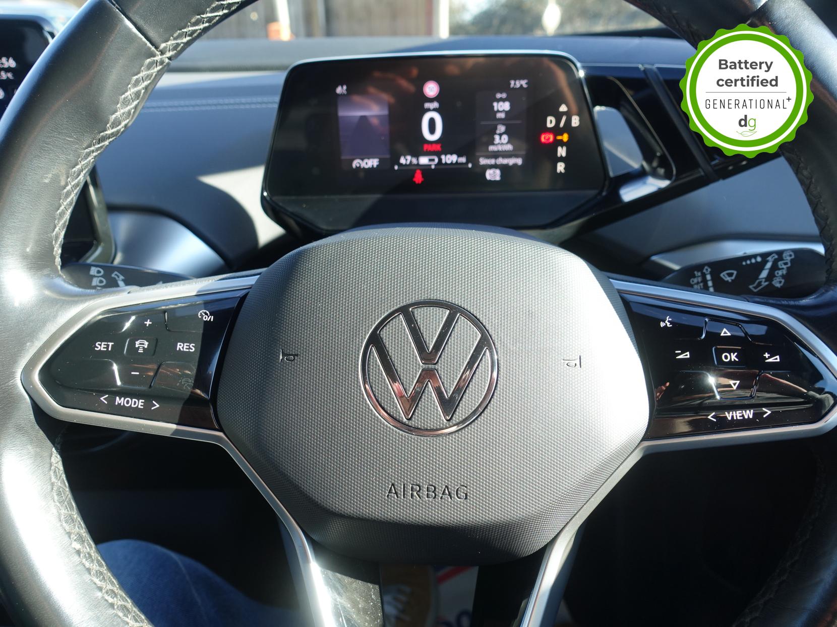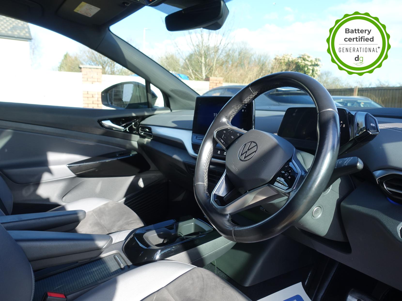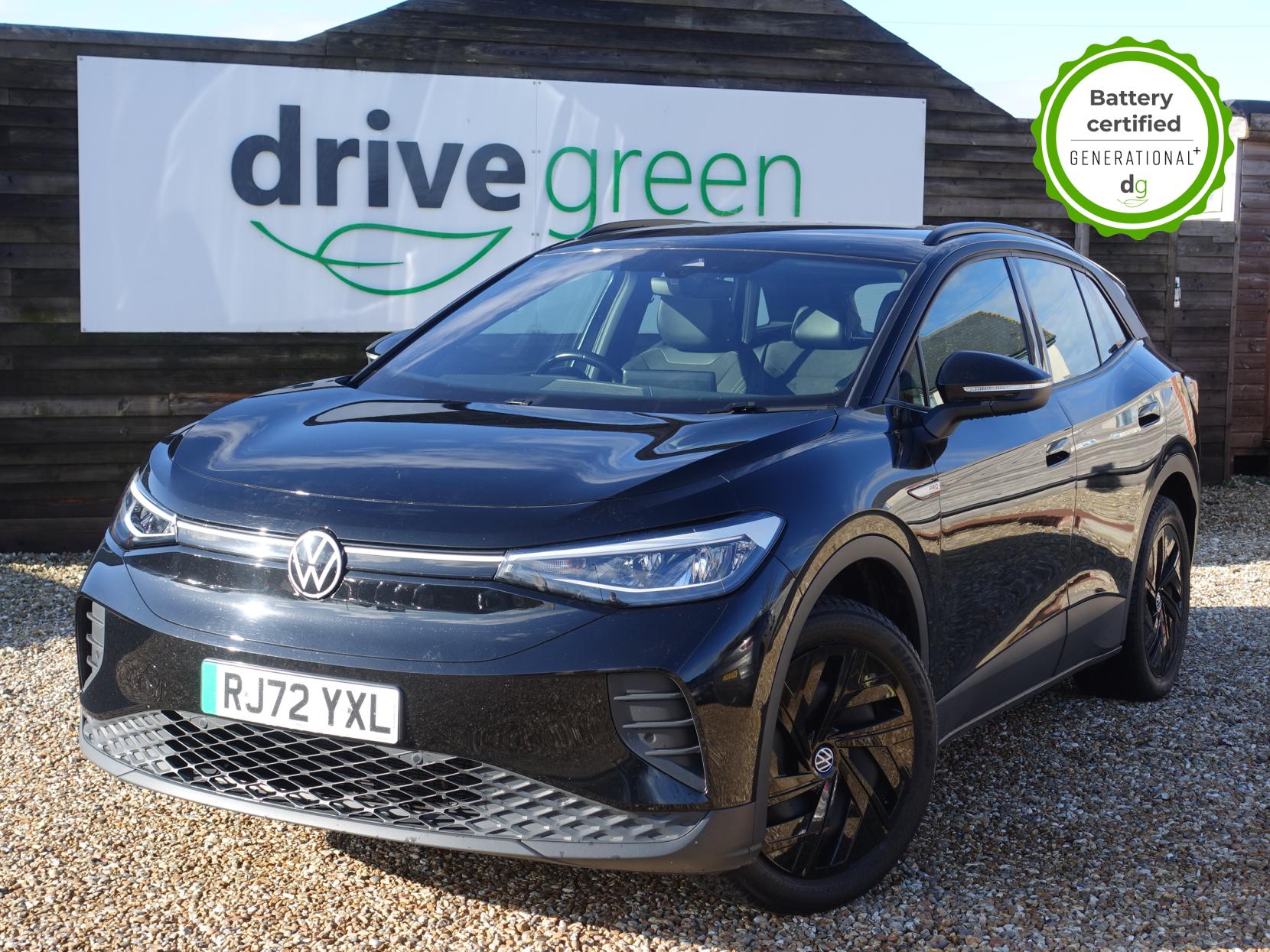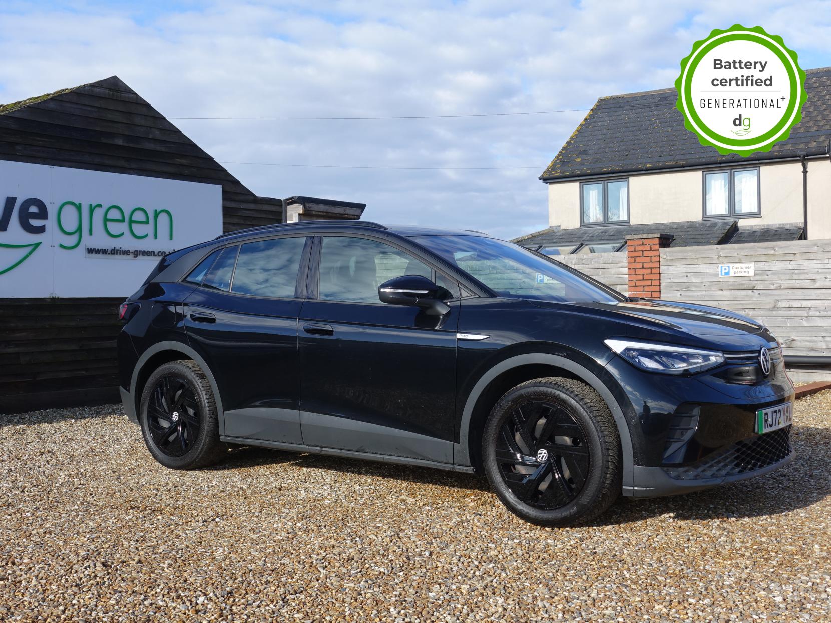 This particular iD4 is in excellent condition and fully prepared to our high standard, has 2 keys, 1 previous owner, a full service history, and it will be January 2028 until its next service and January 2027 when its next MOT is due. It also has an amazing 96% battery state of health, well above average for the miles and iD4s. This Life edition comes with heated seats, heated steering wheel, reversing camera, 10” infotainment system with SAT Nav. Lots of safety equipment comes as standard including, adaptive cruise control incl. front assist, front and rear sensors, and forward collision warning. Led exterior lighting is included and so is wireless Apple CarPlay and Android Auto. As with all ID4’s a clear and well-designed digital dash is standard, and it has an excellent easy to use infotainment system. The ID4 is has a real-world range of around 290 miles from its 77kWh battery. If you are looking for a stylish, practical iD4 in mint condition this could be the perfect EV for you. Unlike Car Supermarkets we have no hidden admin fees, there is no pressure selling, and we offer low finance rates. We also perform battery health checks on all our vehicles, so you can have the comfort of knowing the battery state of health of the EV you choose. Hopefully you will choose to buy your EV from Drive Green, as we are a multi award winning EV specialist and sustainable business, here to help you get the most from your switch to electric driving. Contact us to book an appointment to view and test drive this car, or to find out more about switching to electric driving, and to discuss purchase options, including buying on finance, and our remote buying and delivery service. We are also able to supply your home charge point also, making the switch to electric driving super easy for you. Drive Green is a true EV specialist and the UK’s biggest electric car only dealership, since 2017. FORECOURT VISITS AND TEST DRIVES BY APPOINTMENT ONLY.