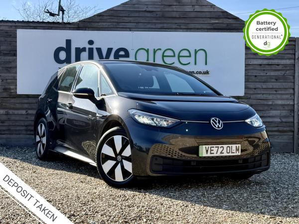 This particular iD4 is in excellent condition and fully prepared to our high standard, has 2 keys, 1 previous owner, a FSH, and it is March 2027 until its next service and it will be January 2026 when its next MOT is due. It also has an excellent and well above average 94% battery state of health. This Life edition comes with heated seats, a reversing camera, 10” infotainment system with SAT Nav. Lots of safety equipment comes as standard including, adaptive cruise control incl. front assist, front and rear sensors, and forward collision warning. Led exterior lighting is included and so is wireless Apple CarPlay and Android Auto. As with all ID4’s a clear and well-designed digital dash is standard, and it has an excellent easy to use infotainment system. The ID4 is has a real-world range of around 290 miles from its 77kWh battery. If you are looking for a stylish, practical iD4 in mint condition this could be the perfect EV for you. Unlike Car Supermarkets we have no hidden admin fees, there is no pressure selling, and we offer low finance rates. We also perform battery health checks on all our vehicles, so you can have the comfort of knowing the battery state of health of the EV you choose. Hopefully you will choose to buy your EV from Drive Green, as we are a multi award winning EV specialist and sustainable business, here to help you get the most from your switch to electric driving. Contact us to book an appointment to view and test drive this car, or to find out more about switching to electric driving, and to discuss purchase options, including buying on finance, and our remote buying and delivery service. We are also able to supply your home charge point also, making the switch to electric driving super easy for you. Drive Green is a true EV specialist and the UK’s biggest electric car only dealership, since 2017. FORECOURT VISITS AND TEST DRIVES BY APPOINTMENT ONLY.
