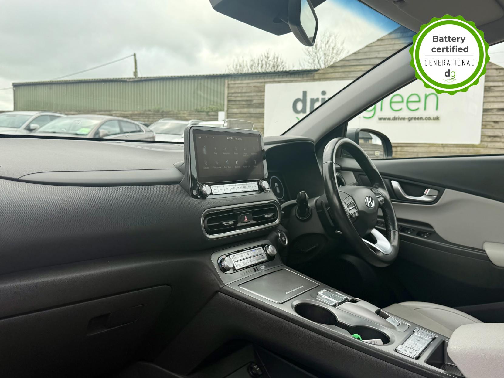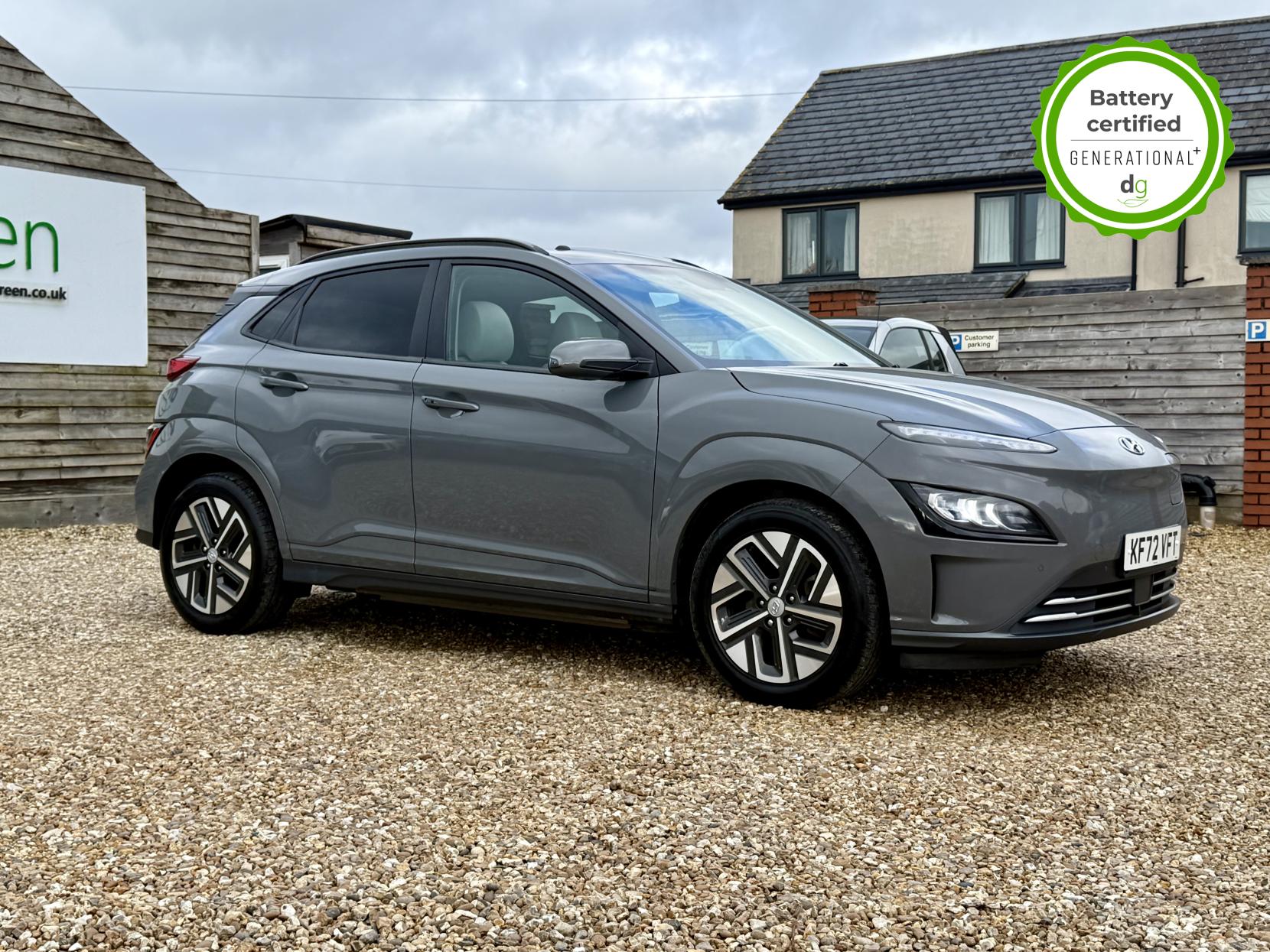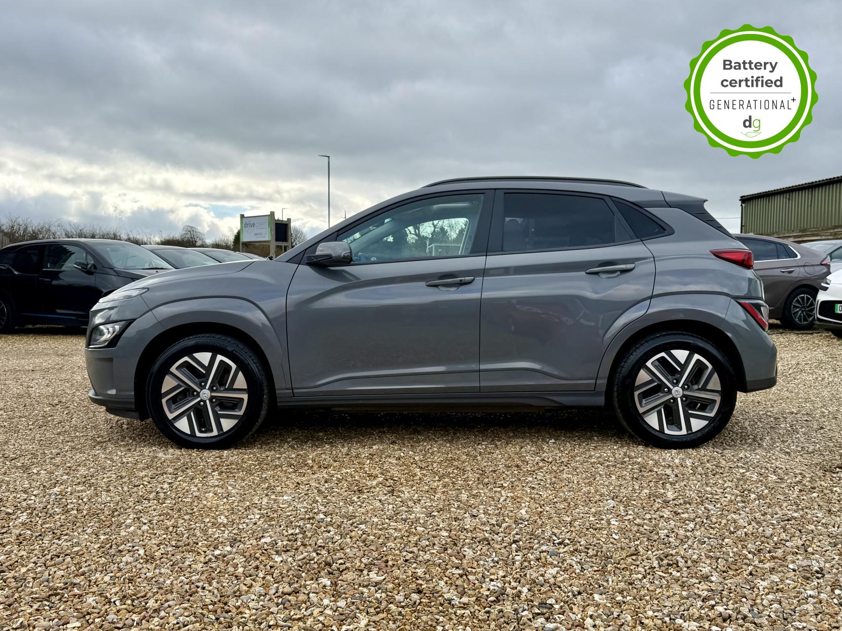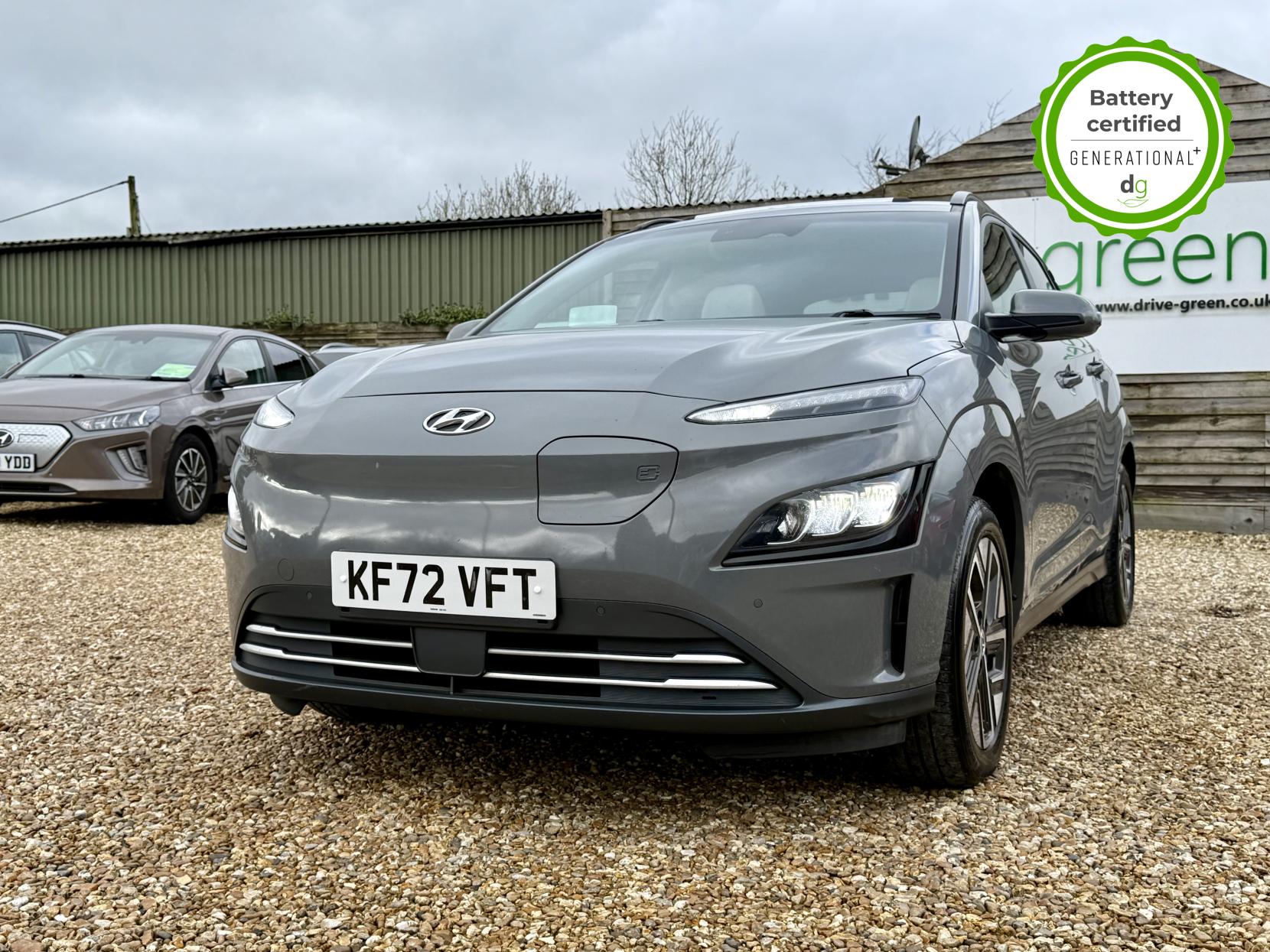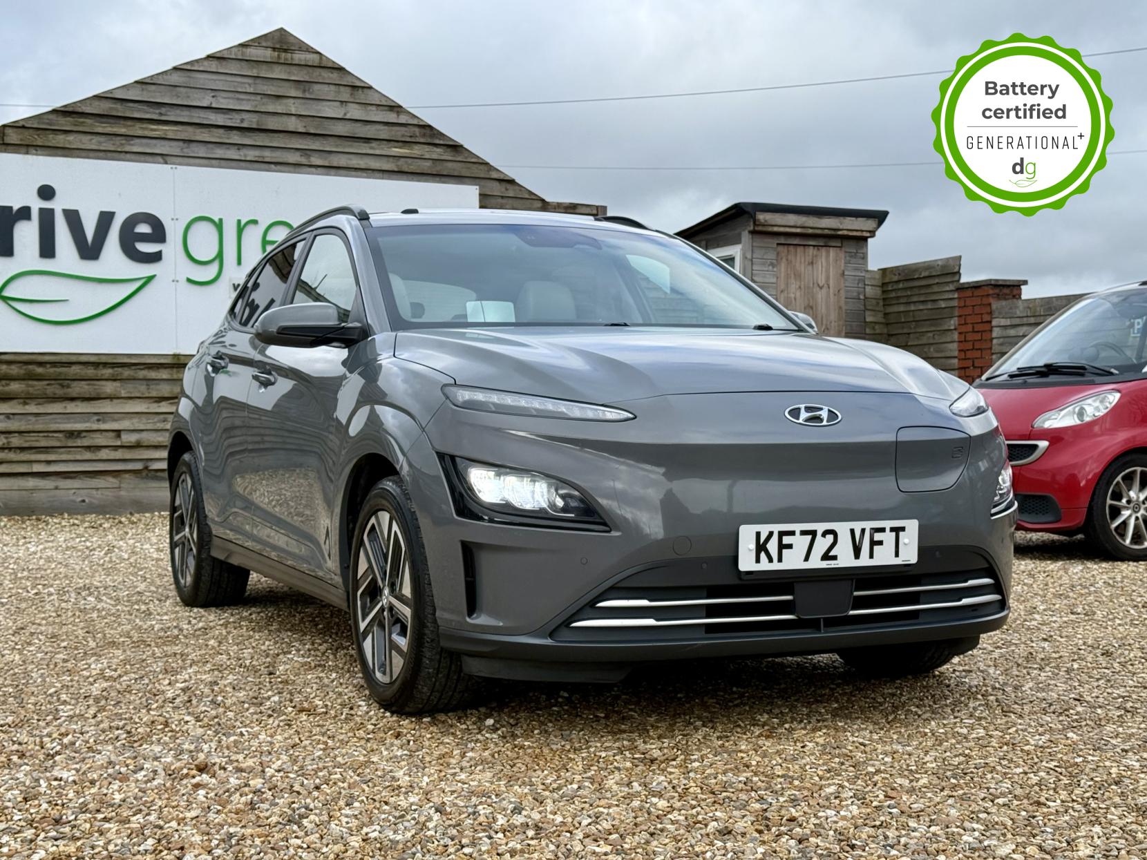 This particular Kona is in excellent condition and fully prepared to our high standard, has 2 keys, 1 previous owner, a full main dealer service history of 8 services, including a recent major one, and it is November 2026 until its next service and January 2027 when its MOT is due. The Hyundai Kona is a premium compact SUV, with an incredible 260-280 mile range, a practical boot, and roof rails. The top spec Ultimate model is packed with high tech features and is capable of 75kW rapid charging. It has Apple Car Play and Android Auto, reversing camera and sensors all round, In-built sat nav and media centre with DAB, heated and cooled leather seats and a heated steering wheel, adjustable regen braking and sport mode, Krell Premium sound system, wireless charging pad, pedestrian detection and auto braking, collision prevention system, adaptive cruise control with auto lane follow assist, blind spot detection system, adaptive LED lights with high beam assist, a Head up Display, and it even has an opening pan roof, and memory seats. If you are looking for a medium sized stylish EV with loads of spec and in great condition, this could be the perfect car for you. Unlike Car Supermarkets we have no hidden admin fees, there is no pressure selling, and we offer low finance rates. We also perform battery health checks on all our vehicles, so you can have the comfort of knowing the battery state of health of the EV you choose. Hopefully you will choose to buy your EV from Drive Green, as we are a multi award winning EV specialist and sustainable business, here to help you get the most from your switch to electric driving. Contact us to book an appointment to view and test drive this car, or to find out more about switching to electric driving, and to discuss purchase options, including buying on finance, and our remote buying and delivery service. We are also able to supply your home charge point also, making the switch to electric driving super easy for you. Drive Green is a true EV specialist and the UK’s biggest electric car only dealership, since 2017. FORECOURT VISITS AND TEST DRIVES BY APPOINTMENT ONLY.