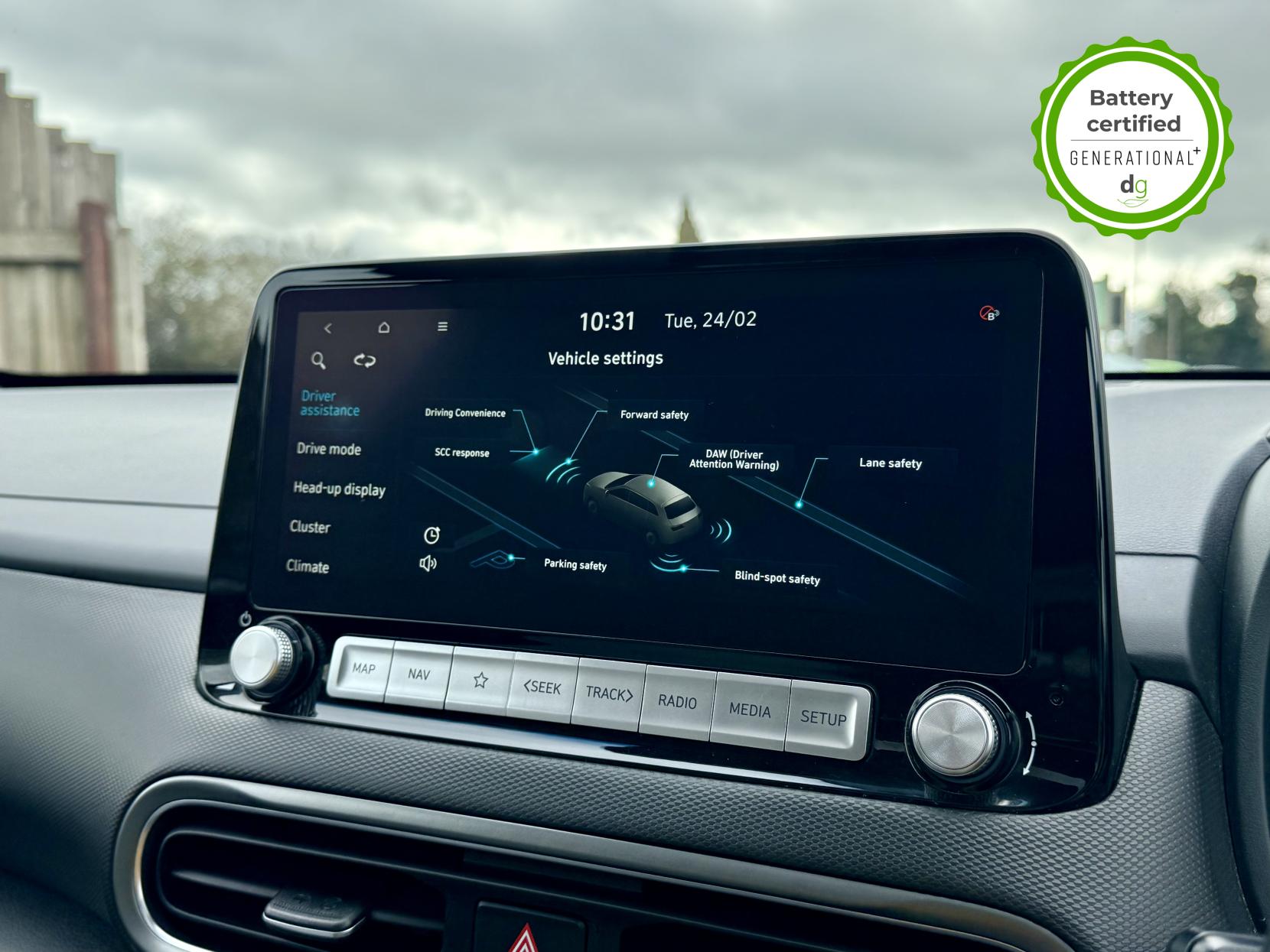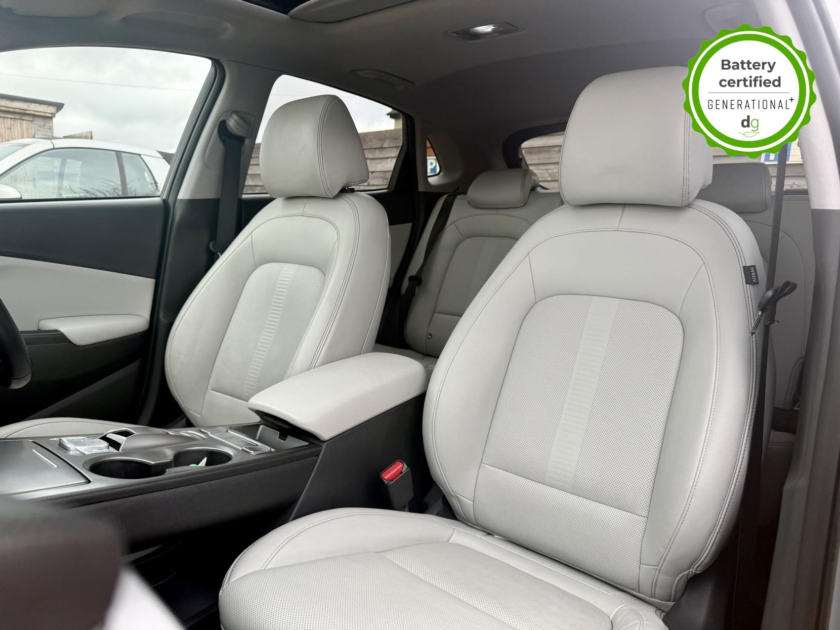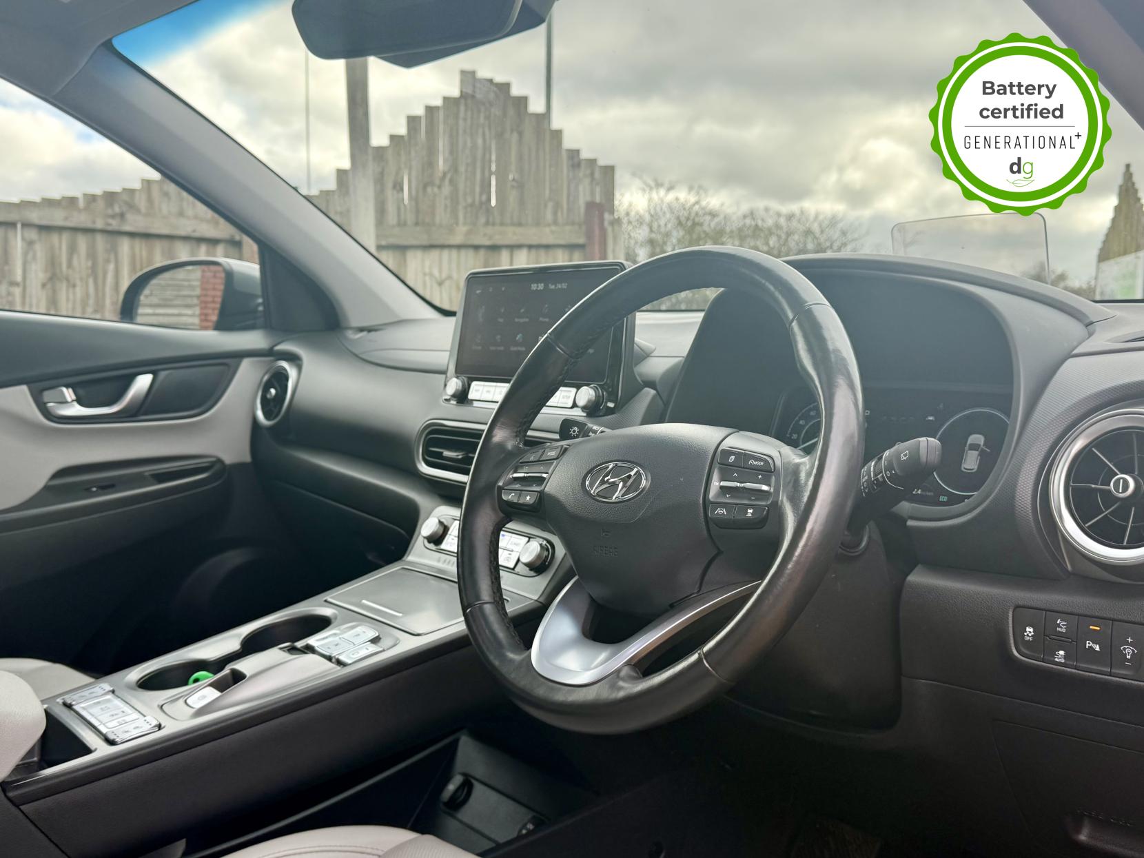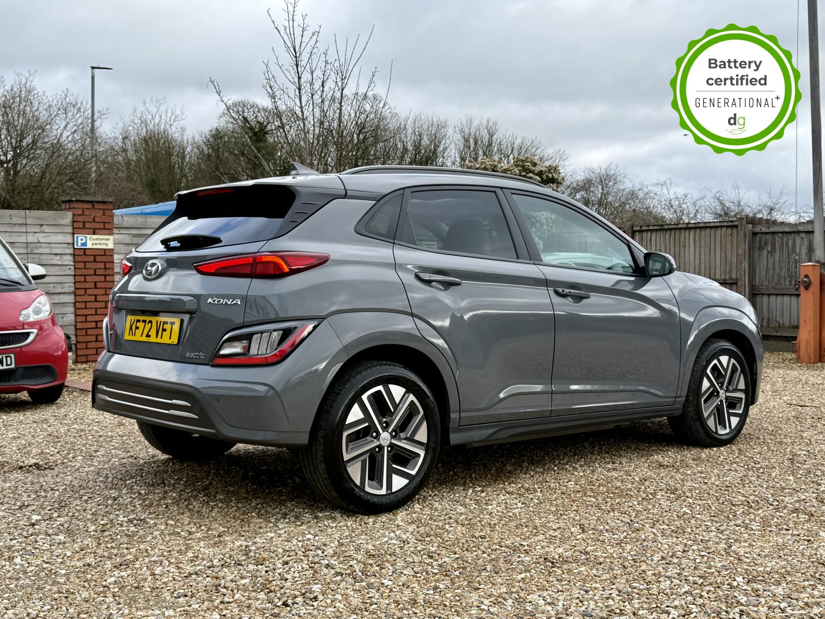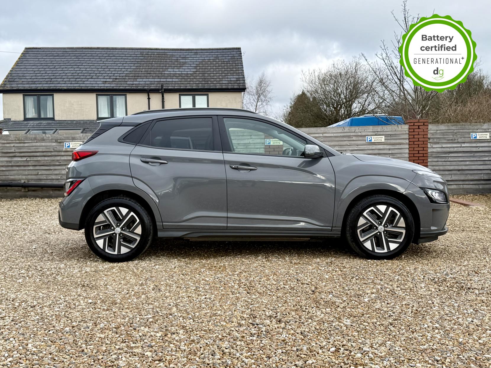 This particular Kona is in excellent condition and fully prepared to our high standard, has 2 keys, 1 previous owner, a full main dealer service history of 8 services, including a recent major one, and it is November 2026 until its next service and January 2027 when its MOT is due. The Hyundai Kona is a premium compact SUV, with an incredible 260-280 mile range, a practical boot, and roof rails. The top spec Ultimate model is packed with high tech features and is capable of 75kW rapid charging. It has Apple Car Play and Android Auto, reversing camera and sensors all round, In-built sat nav and media centre with DAB, heated and cooled leather seats and a heated steering wheel, adjustable regen braking and sport mode, Krell Premium sound system, wireless charging pad, pedestrian detection and auto braking, collision prevention system, adaptive cruise control with auto lane follow assist, blind spot detection system, adaptive LED lights with high beam assist, a Head up Display, and it even has an opening pan roof, and memory seats. If you are looking for a medium sized stylish EV with loads of spec and in great condition, this could be the perfect car for you. Unlike Car Supermarkets we have no hidden admin fees, there is no pressure selling, and we offer low finance rates. We also perform battery health checks on all our vehicles, so you can have the comfort of knowing the battery state of health of the EV you choose. Hopefully you will choose to buy your EV from Drive Green, as we are a multi award winning EV specialist and sustainable business, here to help you get the most from your switch to electric driving. Contact us to book an appointment to view and test drive this car, or to find out more about switching to electric driving, and to discuss purchase options, including buying on finance, and our remote buying and delivery service. We are also able to supply your home charge point also, making the switch to electric driving super easy for you. Drive Green is a true EV specialist and the UK’s biggest electric car only dealership, since 2017. FORECOURT VISITS AND TEST DRIVES BY APPOINTMENT ONLY.