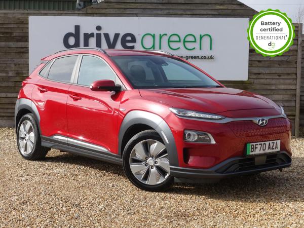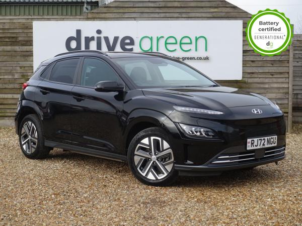 This particular Kona is in excellent condition and fully prepared to our high standard, has 2 keys, 1 previous owner, a full main dealer service history of 8 services, including a recent major one, and it is November 2026 until its next service and January 2027 when its MOT is due. The Hyundai Kona is a premium compact SUV, with an incredible 260-280 mile range, a practical boot, and roof rails. The top spec Ultimate model is packed with high tech features and is capable of 75kW rapid charging. It has Apple Car Play and Android Auto, reversing camera and sensors all round, In-built sat nav and media centre with DAB, heated and cooled leather seats and a heated steering wheel, adjustable regen braking and sport mode, Krell Premium sound system, wireless charging pad, pedestrian detection and auto braking, collision prevention system, adaptive cruise control with auto lane follow assist, blind spot detection system, adaptive LED lights with high beam assist, a Head up Display, and it even has an opening pan roof, and memory seats. If you are looking for a medium sized stylish EV with loads of spec and in great condition, this could be the perfect car for you. Unlike Car Supermarkets we have no hidden admin fees, there is no pressure selling, and we offer low finance rates. We also perform battery health checks on all our vehicles, so you can have the comfort of knowing the battery state of health of the EV you choose. Hopefully you will choose to buy your EV from Drive Green, as we are a multi award winning EV specialist and sustainable business, here to help you get the most from your switch to electric driving. Contact us to book an appointment to view and test drive this car, or to find out more about switching to electric driving, and to discuss purchase options, including buying on finance, and our remote buying and delivery service. We are also able to supply your home charge point also, making the switch to electric driving super easy for you. Drive Green is a true EV specialist and the UK’s biggest electric car only dealership, since 2017. FORECOURT VISITS AND TEST DRIVES BY APPOINTMENT ONLY.