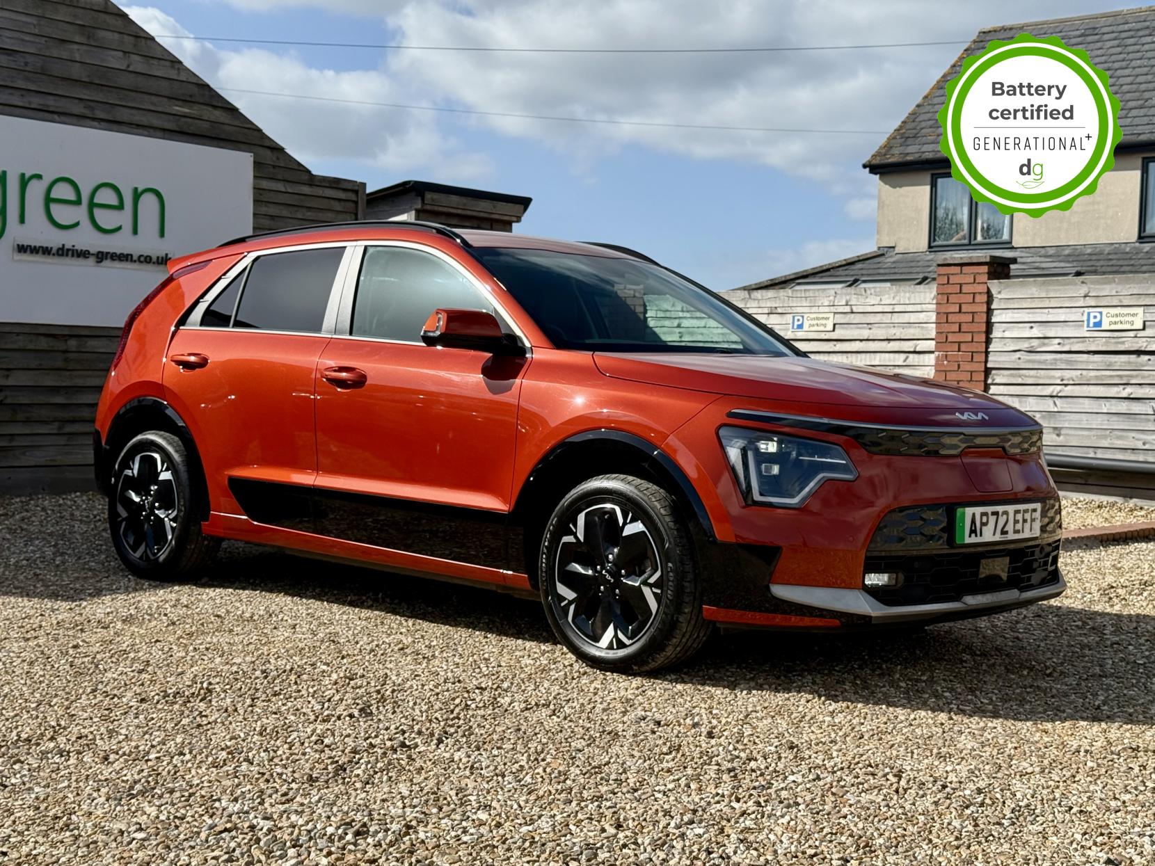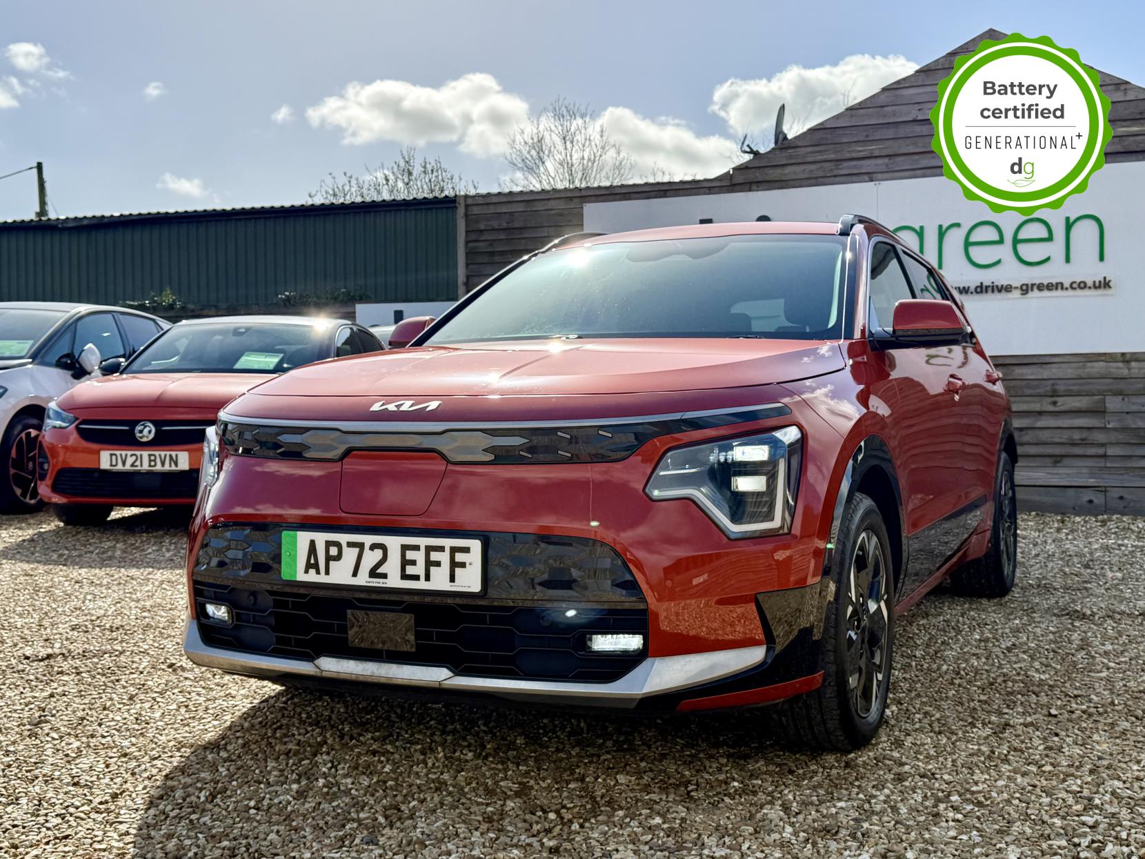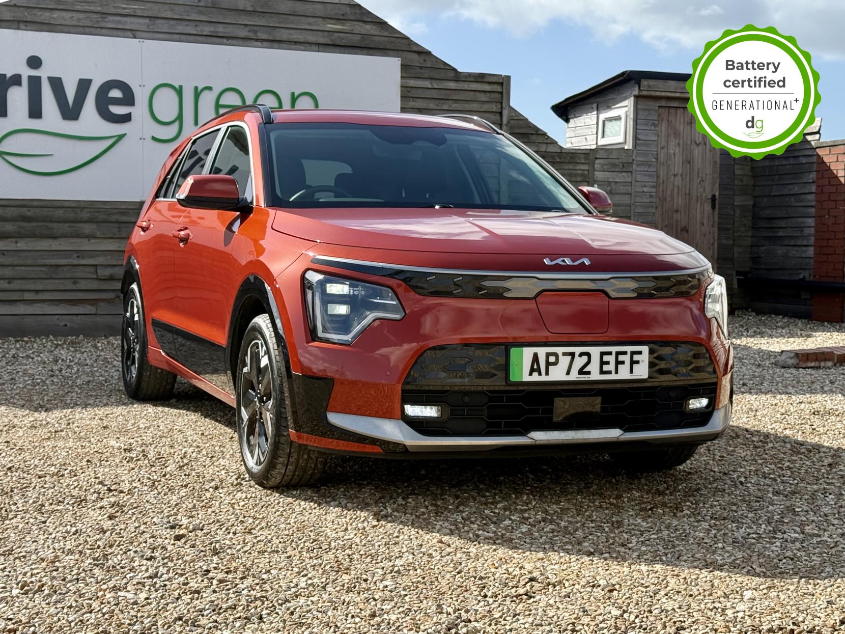 This E-Niro is in excellent condition and fully prepared to our high standard, has 2 keys, 1 previous owner, and it will be March 2027 until its next service and February 2027 when its MOT is due.  It is also reading an excellent 100% battery health. The E-Niro is a great all-rounder – a generously sized and practical family EV, with a real-world range of around 250-300 miles, depending on your driving style and time of year. The level 3 edition E-Niro features some impressive spec. 17′ alloys, roof rails, power adjustable driver’s seat, heated half leather front and rear seats, heated steering wheel, and an 8 speakers premium sound system. The E-Niro also features some great safety spec including adaptive cruise control with lane and follow assist, emergency stop signalling and a forward collision avoidance system. If you are looking for a long range and practically sized family EV, this could be the perfect car for you. Unlike Car Supermarkets we have no hidden admin fees, there is no pressure selling, and we offer low finance rates. We also perform battery health checks on all our vehicles, so you can have the comfort of knowing the battery state of health of the EV you choose. Hopefully you will choose to buy your EV from Drive Green, as we are a multi award winning EV specialist and sustainable business, here to help you get the most from your switch to electric driving. Contact us to book an appointment to view and test drive this car, or to find out more about switching to electric driving, and to discuss purchase options, including buying on finance, and our remote buying and delivery service. We are also able to supply your home charge point also, making the switch to electric driving super easy for you. Drive Green is a true EV specialist and the UK’s biggest electric car only dealership, since 2017. FORECOURT VISITS AND TEST DRIVES BY APPOINTMENT ONLY.