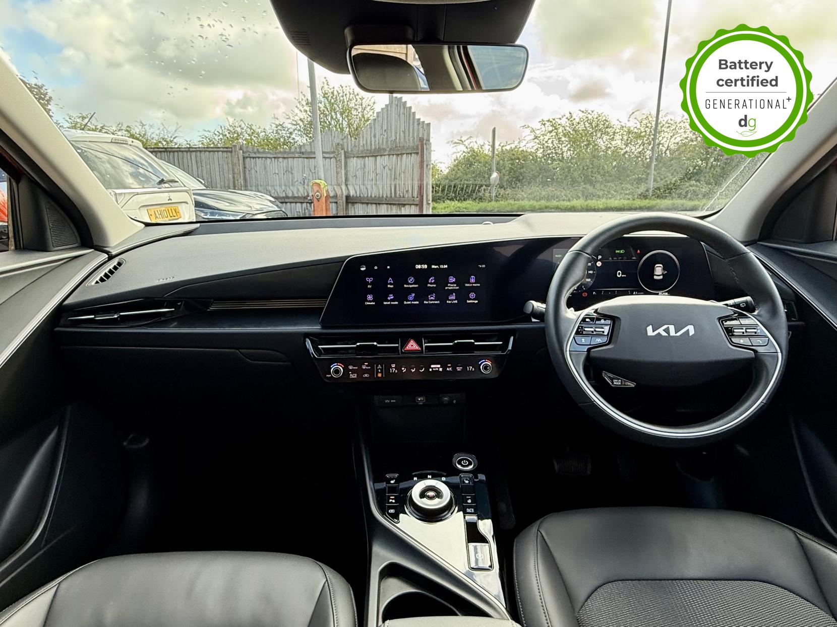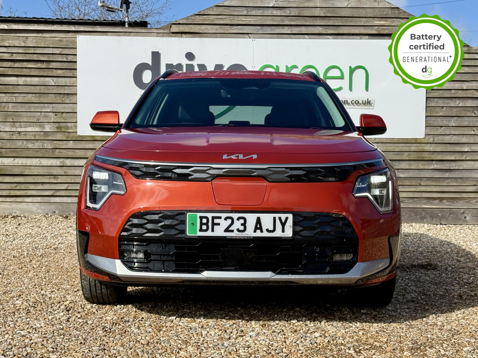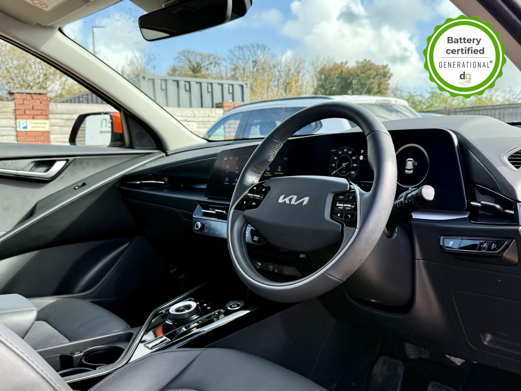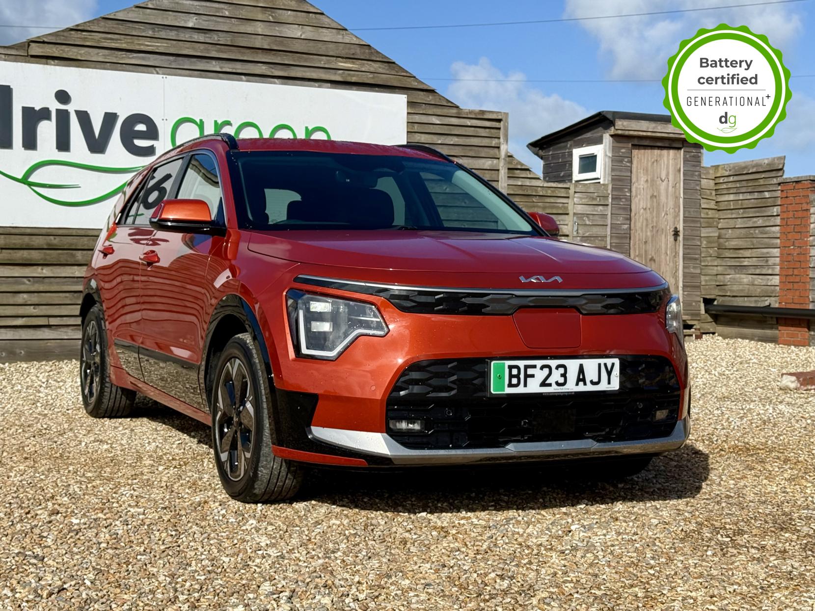 This Niro EV is in excellent condition and fully prepared to our high standard, has 2 keys, 1 previous owner, 2 prior main dealer services, and it is November 2026 until its next service and it will be April 2027 when its MOT is due. The Niro EV is a great all-rounder – a generously sized and practical family EV, with a real-world range of around 250-300 miles, depending on your driving style and time of year. The high spec level 3 Niro EV features some impressive spec. 18′ alloys, roof rails, power adjustable driver’s seat, heated leather front seats, heated steering wheel, wireless charging and a 6 speakers sound system. The Niro EV also features some great safety spec including adaptive cruise control with lane and follow assist, emergency stop signalling and a forward collision avoidance system. If you are looking for a long range and practically sized family EV, this could be the perfect car for you. Unlike Car Supermarkets we have no hidden admin fees, there is no pressure selling, and we offer low finance rates. We also perform battery health checks on all our vehicles, so you can have the comfort of knowing the battery state of health of the EV you choose. Hopefully you will choose to buy your EV from Drive Green, as we are a multi award winning EV specialist and sustainable business, here to help you get the most from your switch to electric driving. Contact us to book an appointment to view and test drive this car, or to find out more about switching to electric driving, and to discuss purchase options, including buying on finance, and our remote buying and delivery service. We are also able to supply your home charge point also, making the switch to electric driving super easy for you. Drive Green is a true EV specialist and the UK’s biggest electric car only dealership, since 2017. FORECOURT VISITS AND TEST DRIVES BY APPOINTMENT ONLY.