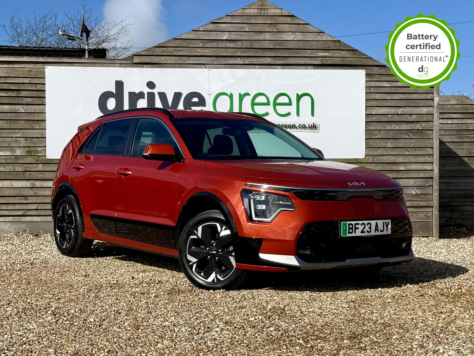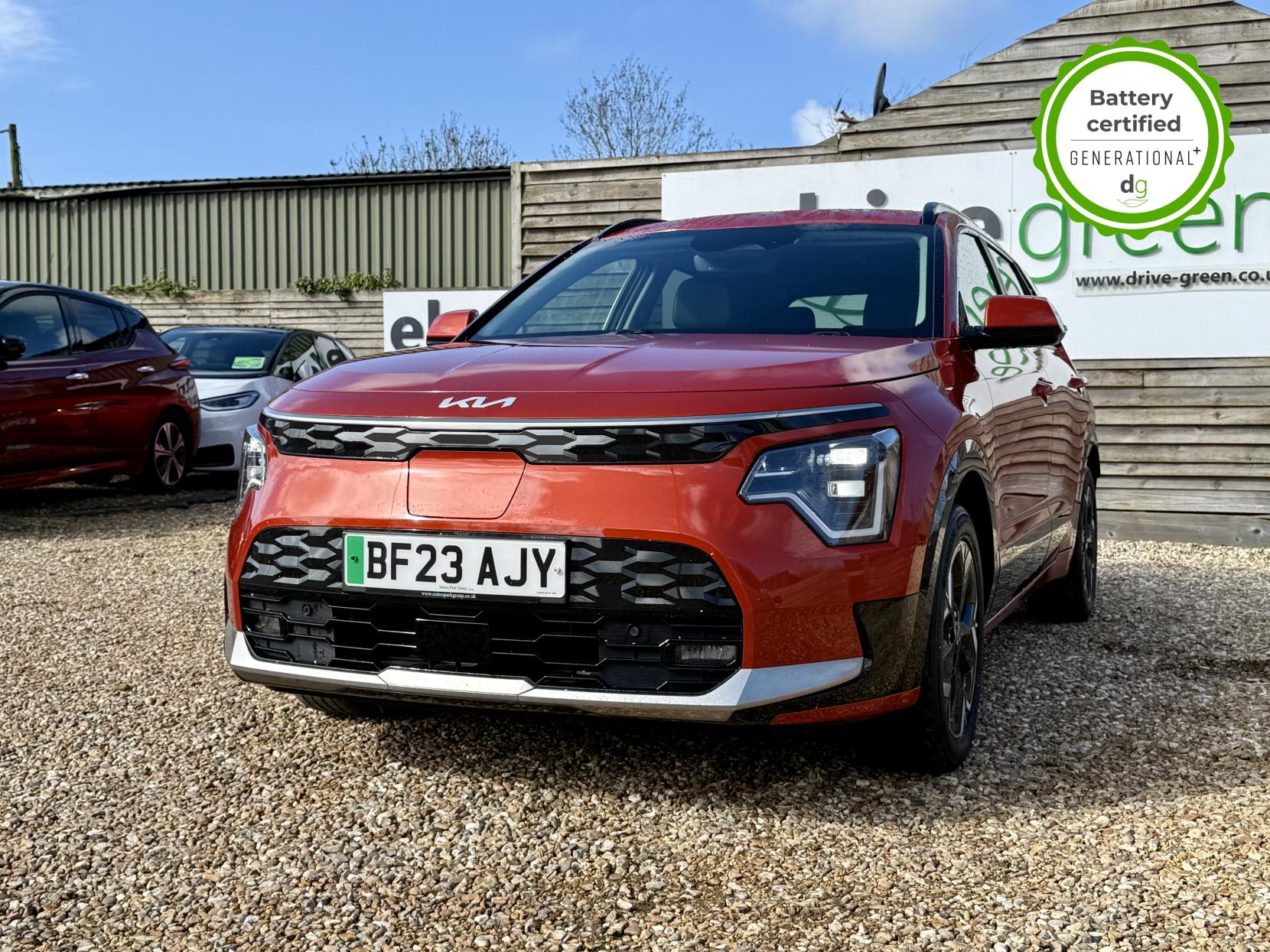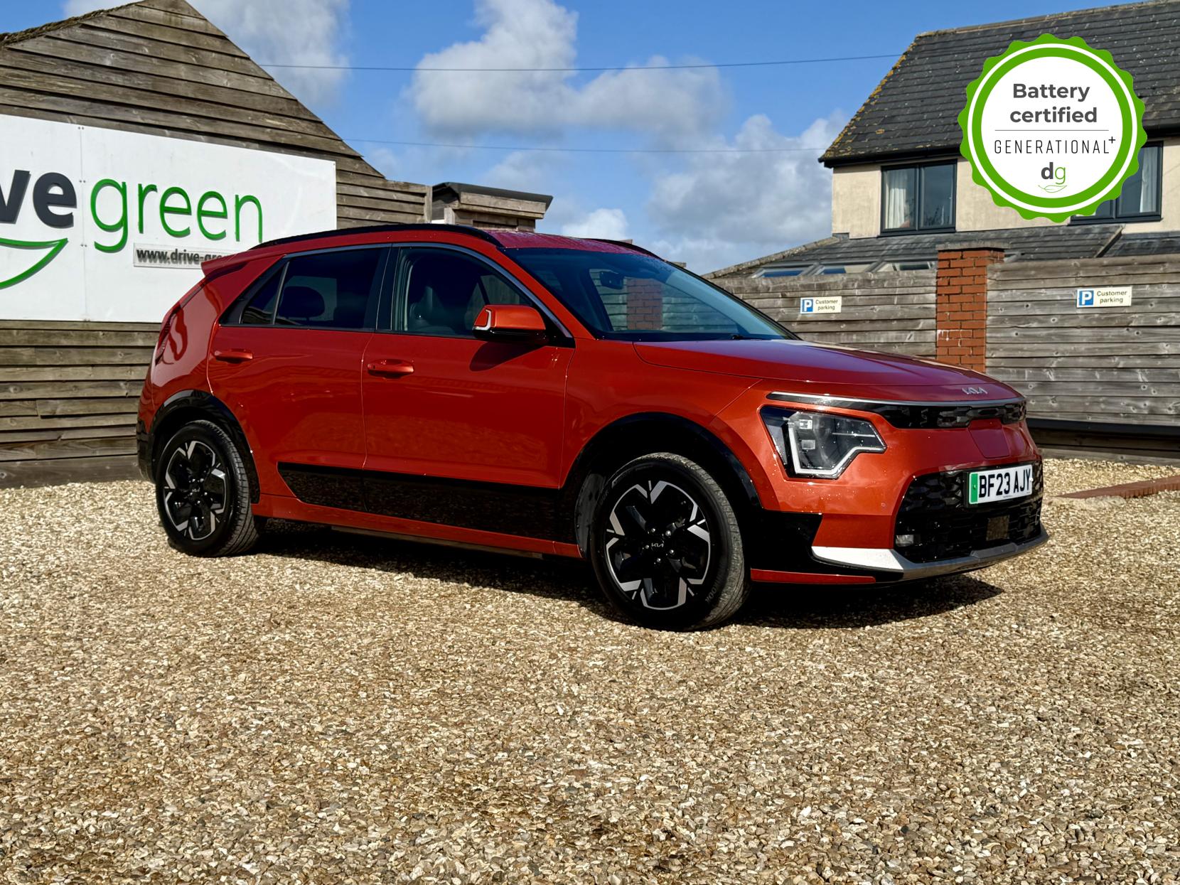 This Niro EV is in excellent condition and fully prepared to our high standard, has 2 keys, 1 previous owner, 2 prior main dealer services, and it is November 2026 until its next service and it will be April 2027 when its MOT is due. The Niro EV is a great all-rounder – a generously sized and practical family EV, with a real-world range of around 250-300 miles, depending on your driving style and time of year. The high spec level 3 Niro EV features some impressive spec. 18′ alloys, roof rails, power adjustable driver’s seat, heated leather front seats, heated steering wheel, wireless charging and a 6 speakers sound system. The Niro EV also features some great safety spec including adaptive cruise control with lane and follow assist, emergency stop signalling and a forward collision avoidance system. If you are looking for a long range and practically sized family EV, this could be the perfect car for you. Unlike Car Supermarkets we have no hidden admin fees, there is no pressure selling, and we offer low finance rates. We also perform battery health checks on all our vehicles, so you can have the comfort of knowing the battery state of health of the EV you choose. Hopefully you will choose to buy your EV from Drive Green, as we are a multi award winning EV specialist and sustainable business, here to help you get the most from your switch to electric driving. Contact us to book an appointment to view and test drive this car, or to find out more about switching to electric driving, and to discuss purchase options, including buying on finance, and our remote buying and delivery service. We are also able to supply your home charge point also, making the switch to electric driving super easy for you. Drive Green is a true EV specialist and the UK’s biggest electric car only dealership, since 2017. FORECOURT VISITS AND TEST DRIVES BY APPOINTMENT ONLY.