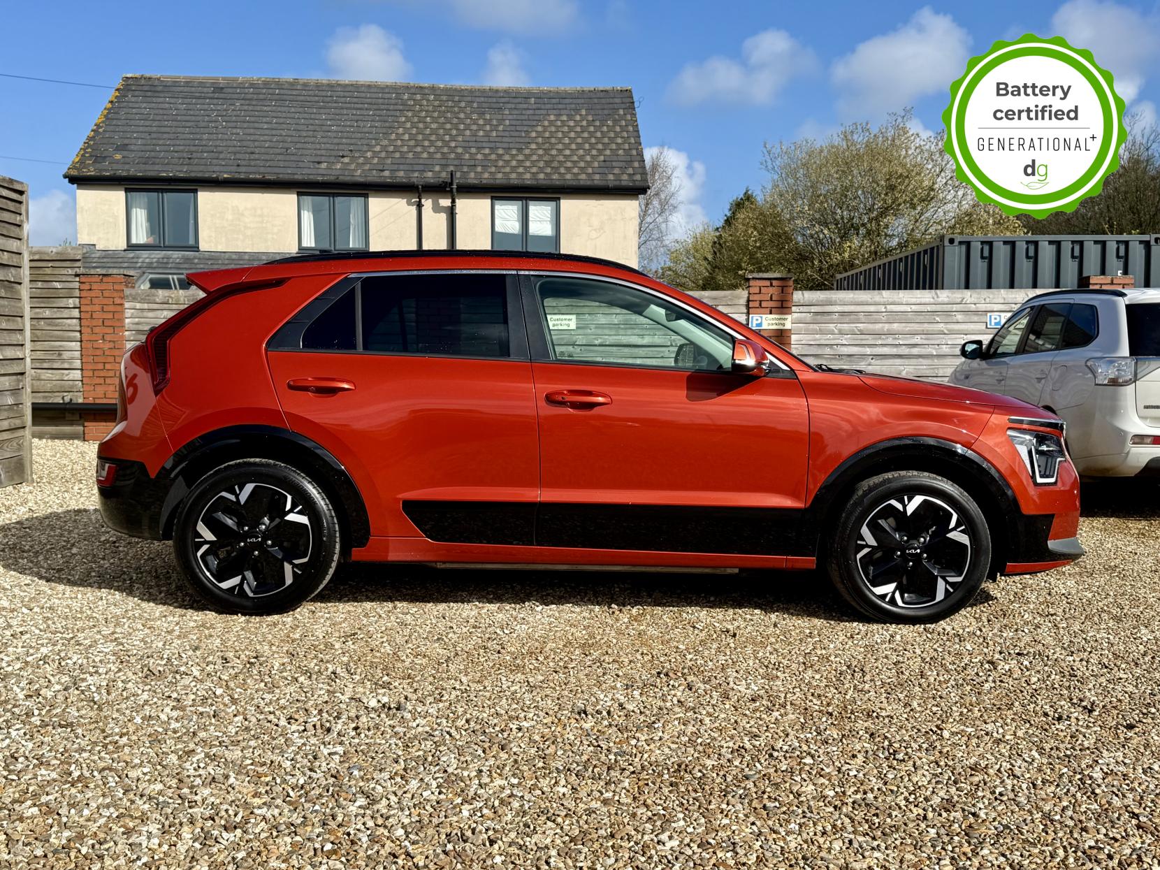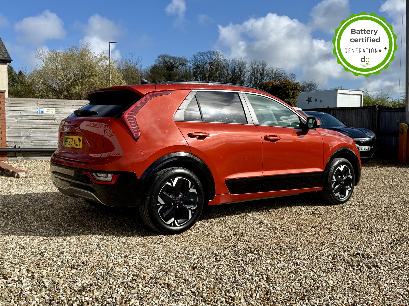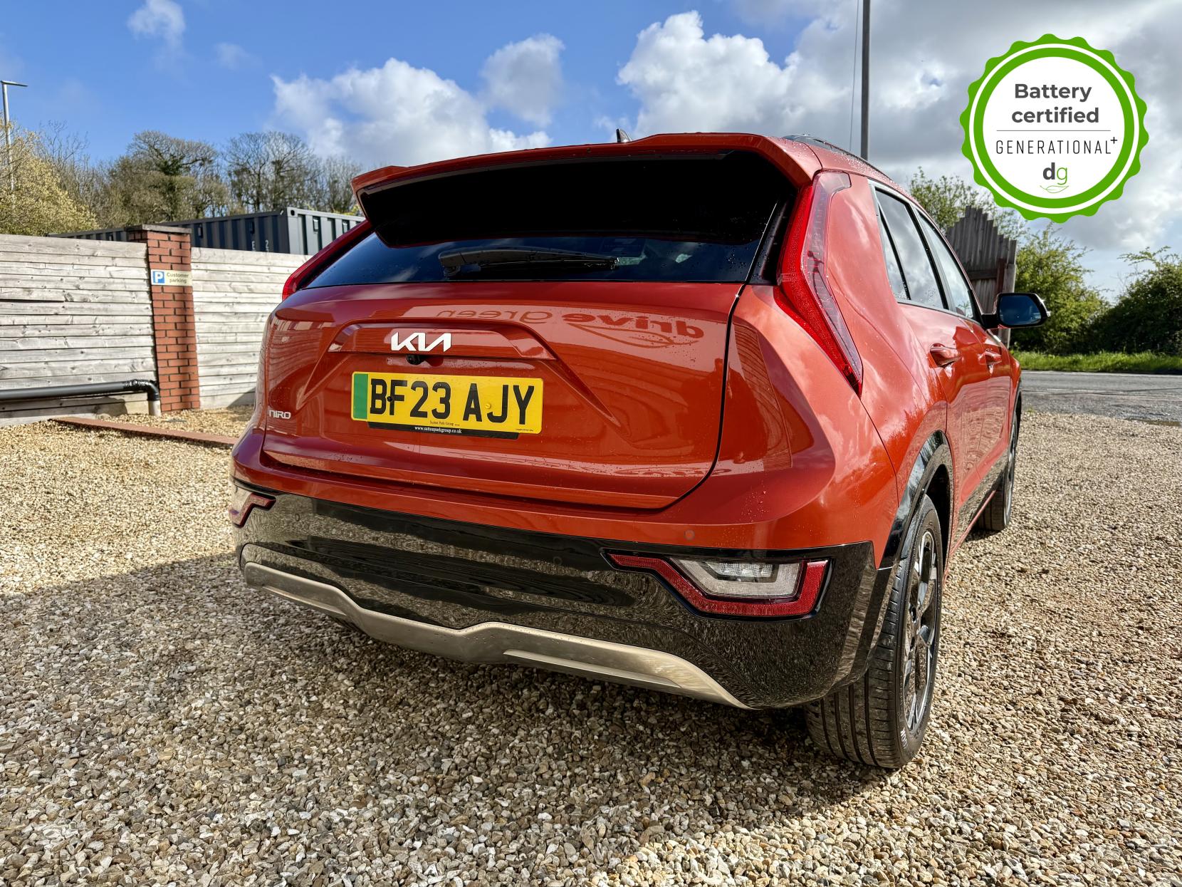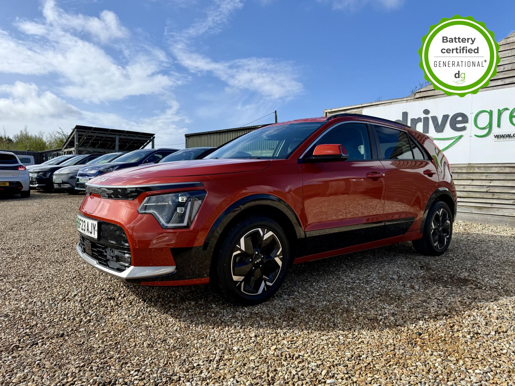 This Niro EV is in excellent condition and fully prepared to our high standard, has 2 keys, 1 previous owner, 2 prior main dealer services, and it is November 2026 until its next service and it will be April 2027 when its MOT is due. The Niro EV is a great all-rounder – a generously sized and practical family EV, with a real-world range of around 250-300 miles, depending on your driving style and time of year. The high spec level 3 Niro EV features some impressive spec. 18′ alloys, roof rails, power adjustable driver’s seat, heated leather front seats, heated steering wheel, wireless charging and a 6 speakers sound system. The Niro EV also features some great safety spec including adaptive cruise control with lane and follow assist, emergency stop signalling and a forward collision avoidance system. If you are looking for a long range and practically sized family EV, this could be the perfect car for you. Unlike Car Supermarkets we have no hidden admin fees, there is no pressure selling, and we offer low finance rates. We also perform battery health checks on all our vehicles, so you can have the comfort of knowing the battery state of health of the EV you choose. Hopefully you will choose to buy your EV from Drive Green, as we are a multi award winning EV specialist and sustainable business, here to help you get the most from your switch to electric driving. Contact us to book an appointment to view and test drive this car, or to find out more about switching to electric driving, and to discuss purchase options, including buying on finance, and our remote buying and delivery service. We are also able to supply your home charge point also, making the switch to electric driving super easy for you. Drive Green is a true EV specialist and the UK’s biggest electric car only dealership, since 2017. FORECOURT VISITS AND TEST DRIVES BY APPOINTMENT ONLY.