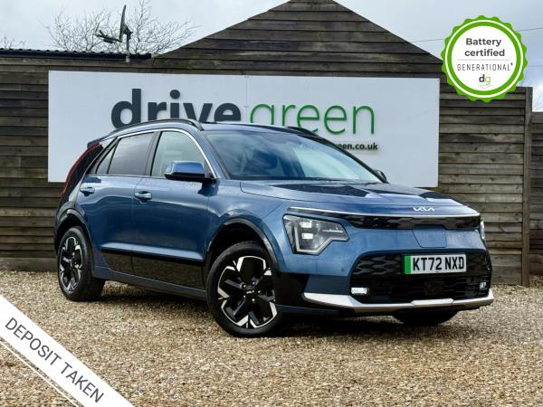 This E-Niro is in excellent condition and fully prepared to our high standard, has 2 keys, and one previous owner, and it will be March 2027 until its next service and January 2027 when its MOT is due. The E-Niro is a great all-rounder – a generously sized and practical family EV, with a real-world range of around 250-300 miles, depending on your driving style and time of year. The top spec 4 E-Niro features some impressive spec. Opening pan roof, 17′ alloys, roof rails, power adjustable memory driver’s seat, heated leather front and rear seats, heated steering wheel, and an 8 speakers premium sound system. The E-Niro also features some great safety spec including adaptive cruise control with lane and follow assist, emergency stop signalling and a forward collision avoidance system. If you are looking for a long range practically sized family EV, this could be the perfect car for you. Unlike Car Supermarkets we have no hidden admin fees, there is no pressure selling, and we offer low finance rates. We also perform battery health checks on all our vehicles, so you can have the comfort of knowing the battery state of health of the EV you choose. Hopefully you will choose to buy your EV from Drive Green, as we are a multi award winning EV specialist and sustainable business, here to help you get the most from your switch to electric driving. Contact us to book an appointment to view and test drive this car, or to find out more about switching to electric driving, and to discuss purchase options, including buying on finance, and our remote buying and delivery service. We are also able to supply your home charge point also, making the switch to electric driving super easy for you. Drive Green is a true EV specialist and the UK’s biggest electric car only dealership, since 2017. FORECOURT VISITS AND TEST DRIVES BY APPOINTMENT ONLY.