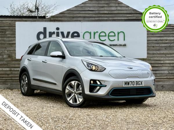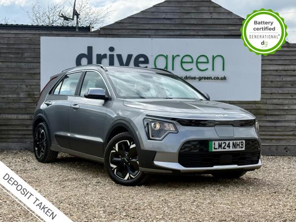 This E-Niro is in excellent condition and fully prepared to our high standard, has 2 keys, 1 previous owner, 2 main dealer services, and it is the end of October 2026 until its next service and the end of February 2027 when its MOT is due. It is also reading an excellent 100% battery health. The E-Niro is a great all-rounder – a generously sized and practical family EV, with a real-world range of around 250-300 miles, depending on your driving style and time of year. The top spec 4 E-Niro features some impressive spec. Opening pan roof, 17′ alloys, roof rails, power adjustable memory driver’s seat, heated leather front and rear seats, heated steering wheel, and an 8 speakers premium sound system. The E-Niro also features some great safety spec including adaptive cruise control with lane and follow assist, emergency stop signalling and a forward collision avoidance system. If you are looking for a long range practically sized family EV, this could be the perfect car for you. Unlike Car Supermarkets we have no hidden admin fees, there is no pressure selling, and we offer low finance rates. We also perform battery health checks on all our vehicles, so you can have the comfort of knowing the battery state of health of the EV you choose. Hopefully you will choose to buy your EV from Drive Green, as we are a multi award winning EV specialist and sustainable business, here to help you get the most from your switch to electric driving. Contact us to book an appointment to view and test drive this car, or to find out more about switching to electric driving, and to discuss purchase options, including buying on finance, and our remote buying and delivery service. We are also able to supply your home charge point also, making the switch to electric driving super easy for you. Drive Green is a true EV specialist and the UK’s biggest electric car only dealership, since 2017. FORECOURT VISITS AND TEST DRIVES BY APPOINTMENT ONLY.