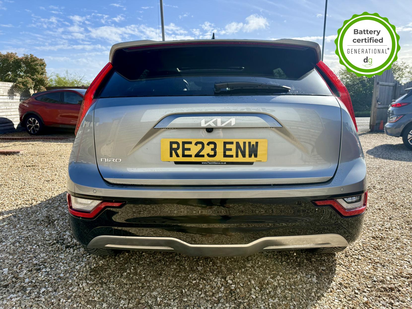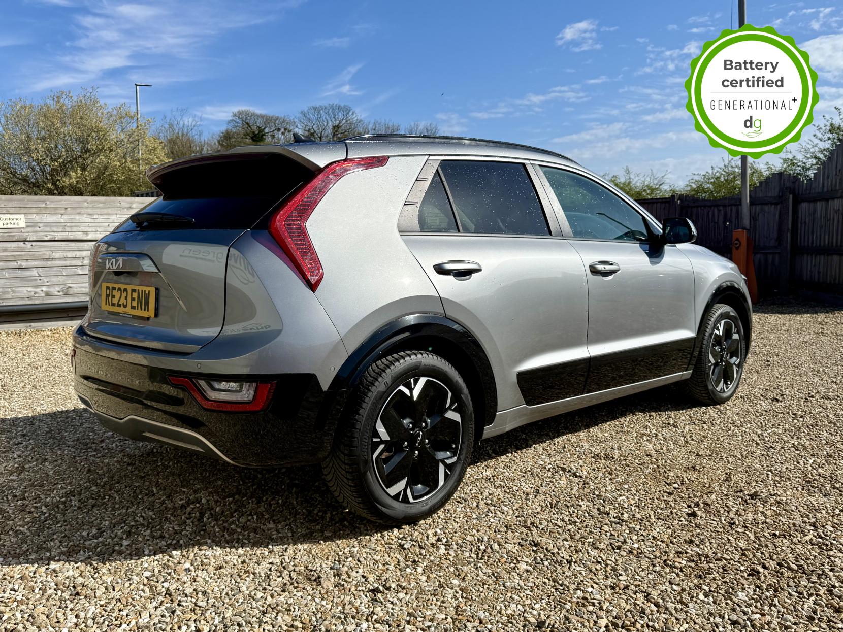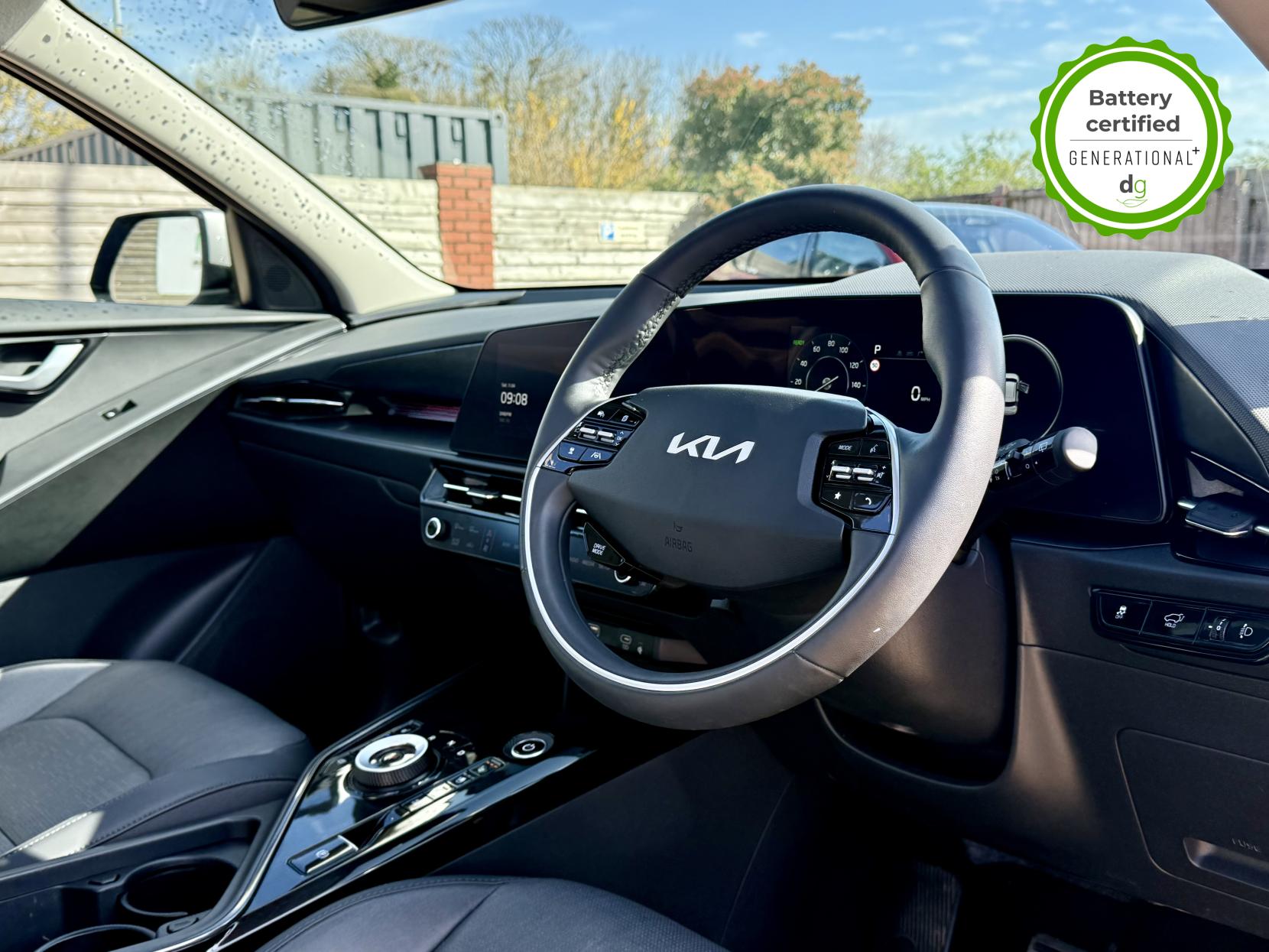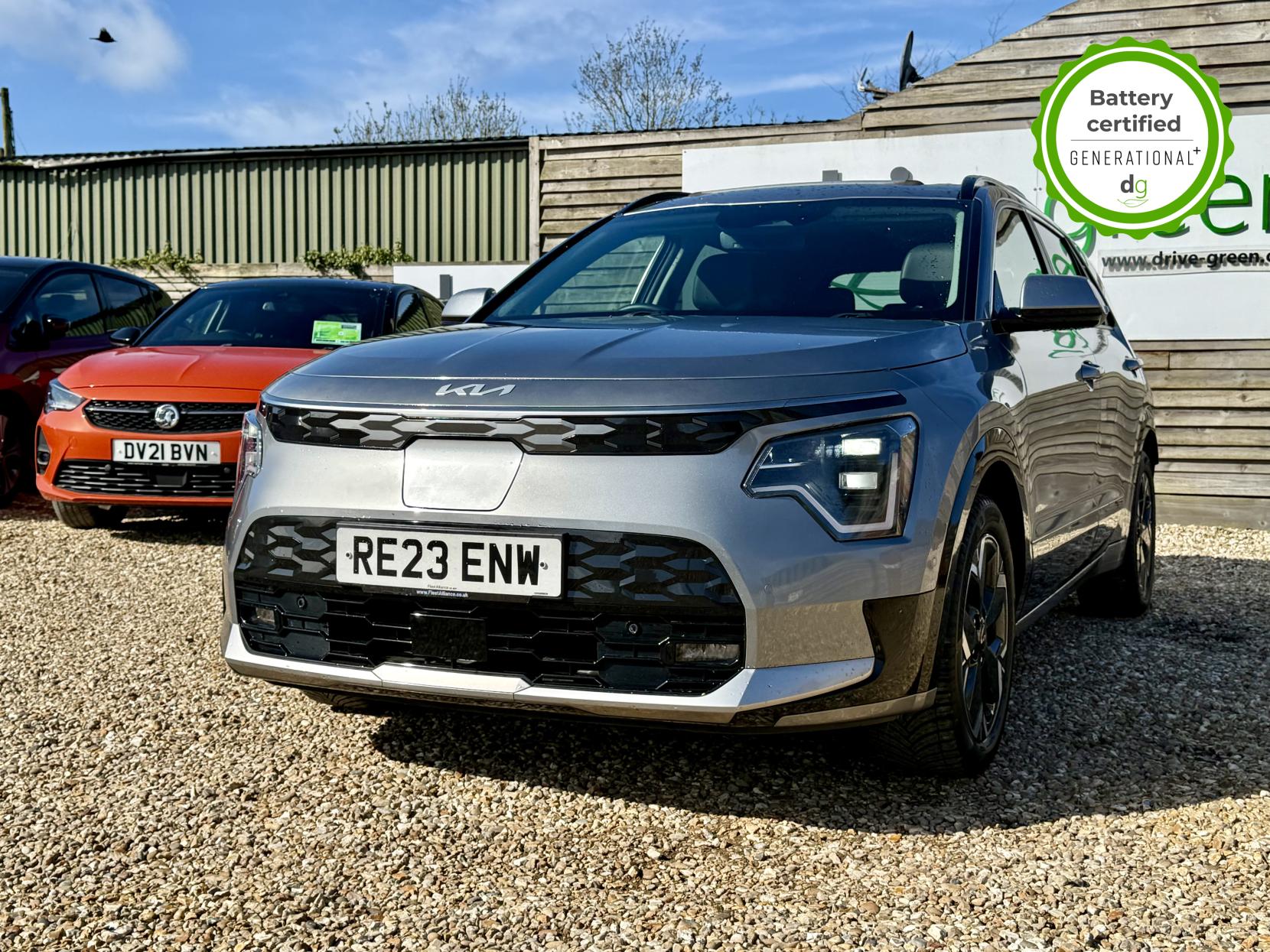 This E-Niro is in excellent condition and fully prepared to our high standard, has 2 keys, 1 previous owner, 2 previous main dealer services, plus our fresh service so it will be March 2027 until its next service or MOT is due. This is car is due to arrive onsite on the 19th March, and it will be ready to veiw shortly afterwards. The E-Niro is a great all-rounder – a generously sized and practical family EV, with a real-world range of around 250-300 miles, depending on your driving style and time of year. The top spec 4 E-Niro features some impressive spec. Opening pan roof, 17′ alloys, roof rails, power adjustable memory driver’s seat, heated leather front and rear seats, heated steering wheel, and an 8 speakers premium sound system. The E-Niro also features some great safety spec including adaptive cruise control with lane and follow assist, emergency stop signalling and a forward collision avoidance system. If you are looking for a long range practically sized family EV, this could be the perfect car for you. Unlike Car Supermarkets we have no hidden admin fees, there is no pressure selling, and we offer low finance rates. We also perform battery health checks on all our vehicles, so you can have the comfort of knowing the battery state of health of the EV you choose. Hopefully you will choose to buy your EV from Drive Green, as we are a multi award winning EV specialist and sustainable business, here to help you get the most from your switch to electric driving. Contact us to book an appointment to view and test drive this car, or to find out more about switching to electric driving, and to discuss purchase options, including buying on finance, and our remote buying and delivery service. We are also able to supply your home charge point also, making the switch to electric driving super easy for you. Drive Green is a true EV specialist and the UK’s biggest electric car only dealership, since 2017. FORECOURT VISITS AND TEST DRIVES BY APPOINTMENT ONLY.