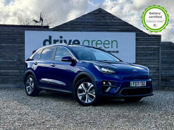 This E-Niro is in excellent condition and fully prepared to our high standard, has 2 keys, 1 previous owner, 3 prior services, and it will be March 2027 until its next service and Decemeber 2026 when its MOT is due. The E-Niro is a great all-rounder – a generously sized and practical family EV, with a real-world range of around 250-300 miles, depending on your driving style and time of year. The level 3 edition E-Niro features some impressive spec. 17′ alloys, roof rails, power adjustable driver’s seat, heated leather front and rear seats, heated steering wheel, and an 8 speakers premium sound system. The E-Niro also features some great safety spec including adaptive cruise control with lane and follow assist, emergency stop signalling and a forward collision avoidance system. If you are looking for a long range and practically sized family EV, this could be the perfect car for you. Unlike Car Supermarkets we have no hidden admin fees, there is no pressure selling, and we offer low finance rates. We also perform battery health checks on all our vehicles, so you can have the comfort of knowing the battery state of health of the EV you choose. Hopefully you will choose to buy your EV from Drive Green, as we are a multi award winning EV specialist and sustainable business, here to help you get the most from your switch to electric driving. Contact us to book an appointment to view and test drive this car, or to find out more about switching to electric driving, and to discuss purchase options, including buying on finance, and our remote buying and delivery service. We are also able to supply your home charge point also, making the switch to electric driving super easy for you. Drive Green is a true EV specialist and the UK’s biggest electric car only dealership, since 2017. FORECOURT VISITS AND TEST DRIVES BY APPOINTMENT ONLY.