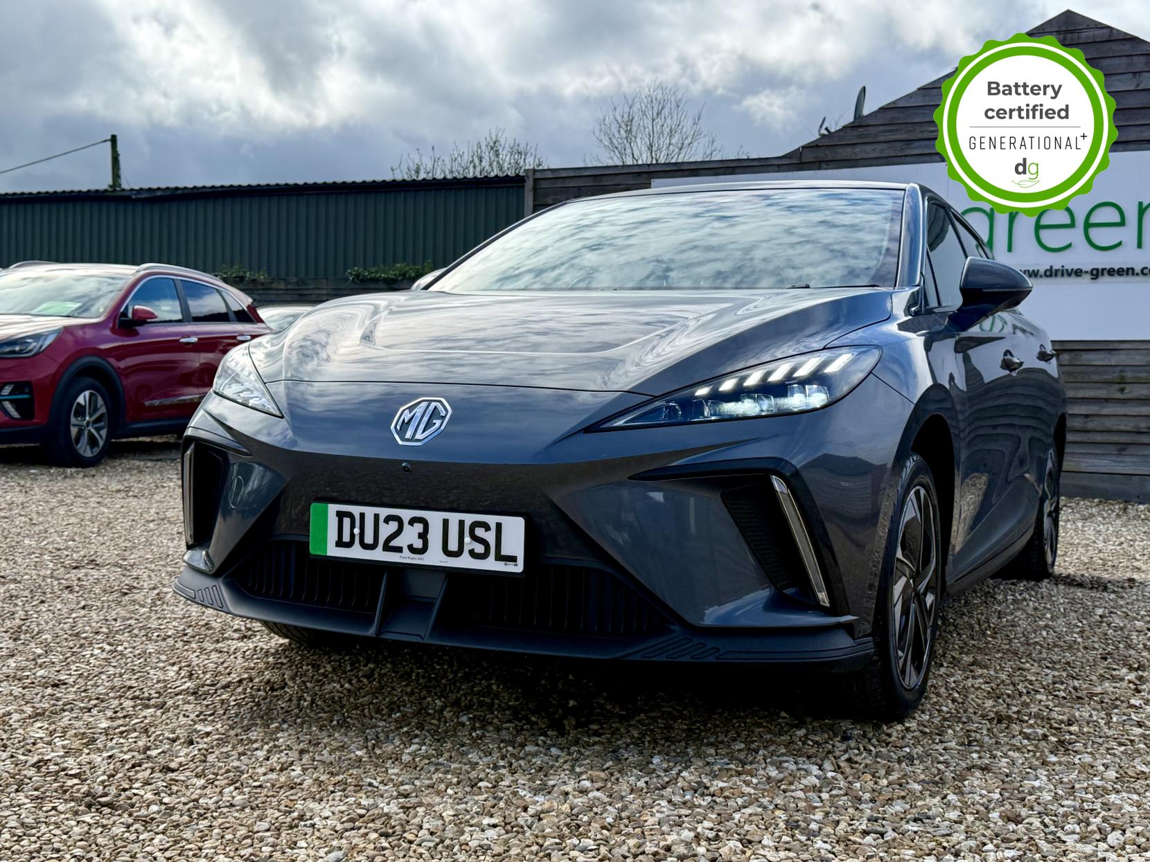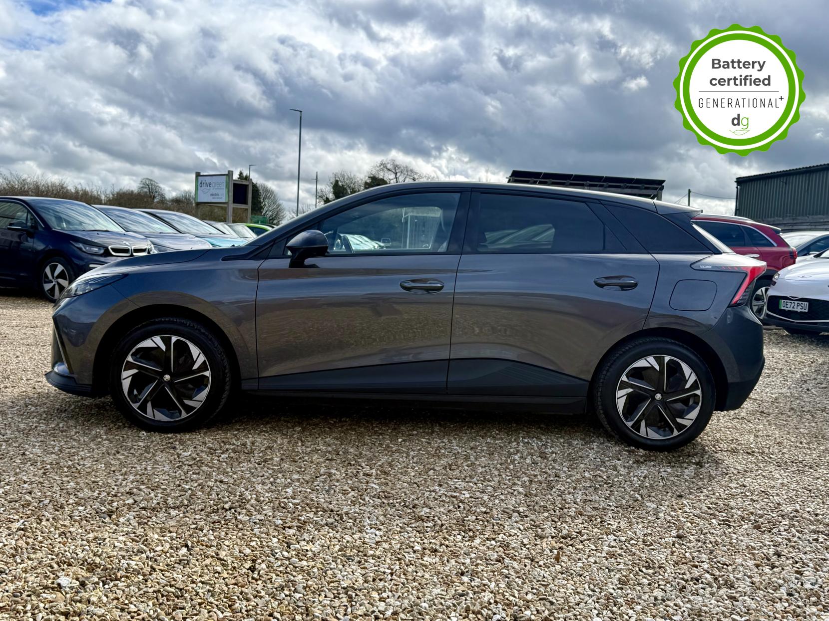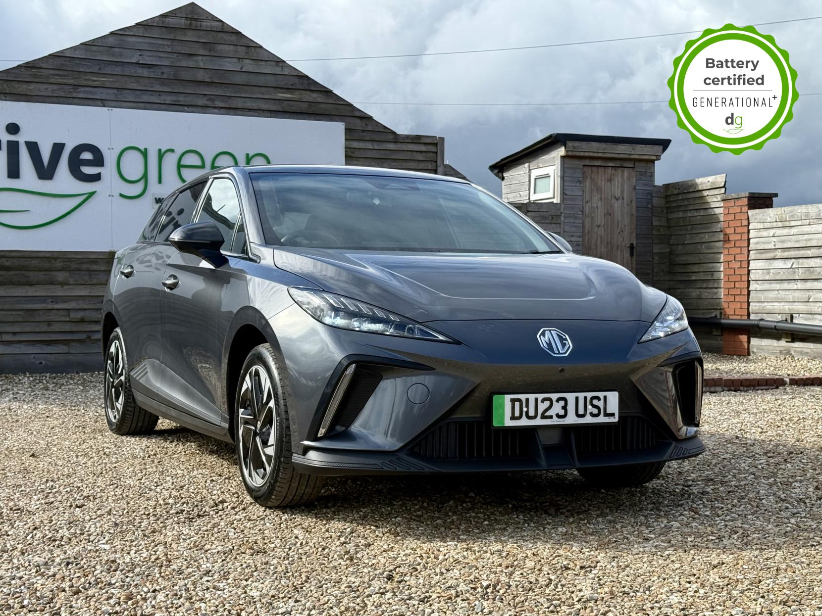 This particular MG4 is in excellent condition and fully prepared to our high standard, has 2 keys, 1 previous owner, and it will not need a service or MOT until March 2027. It also has an excellent 96% battery health. This car is the bigger battery Long Range model, giving it 260 miles of driving range, depending on time of year and your driving style. The top spec Trophy model boasts some great hi tech features in a very competitively priced car – all of which has made the MG4 the most popular EV in the UK right now. This Top Spec Trophy model comes with a great sound system paired with a 10” infotainment system that includes Android Auto and Apple CarPlay, wireless changing pad, 360o parking camera system, heated seats and heated steering wheel, a good quality leather look interior. Safety spec is good, a variety of driver safety features in MG’s Pilot Advanced Driver Assistance System, that includes and adaptive cruise control with steering assistance, High Beam Assist, the MG iSmart app, and a host of other top spec high tech features. It i also capable of 150kW Ultra Fast Rapid Charging. If you are looking for a long range practical all-rounder, but also with loads of spec at a great value price point, then this could be the right EV for you. Unlike Car Supermarkets we have no hidden admin fees, there is no pressure selling, and we offer low finance rates. We also perform battery health checks on all our vehicles, so you can have the comfort of knowing the battery state of health of the EV you choose. Hopefully you will choose to buy your EV from Drive Green, as we are a multi award winning EV specialist and sustainable business, here to help you get the most from your switch to electric driving. Contact us to book an appointment to view and test drive this car, or to find out more about switching to electric driving, and to discuss purchase options, including buying on finance, and our remote buying and delivery service. We are also able to supply your home charge point also, making the switch to electric driving super easy for you. Drive Green is a true EV specialist and the UK’s biggest electric car only dealership, since 2017. FORECOURT VISITS AND TEST DRIVES BY APPOINTMENT ONLY.
