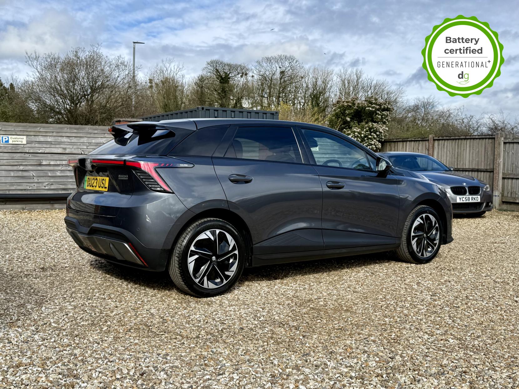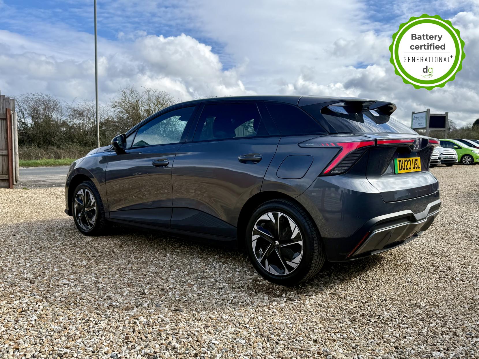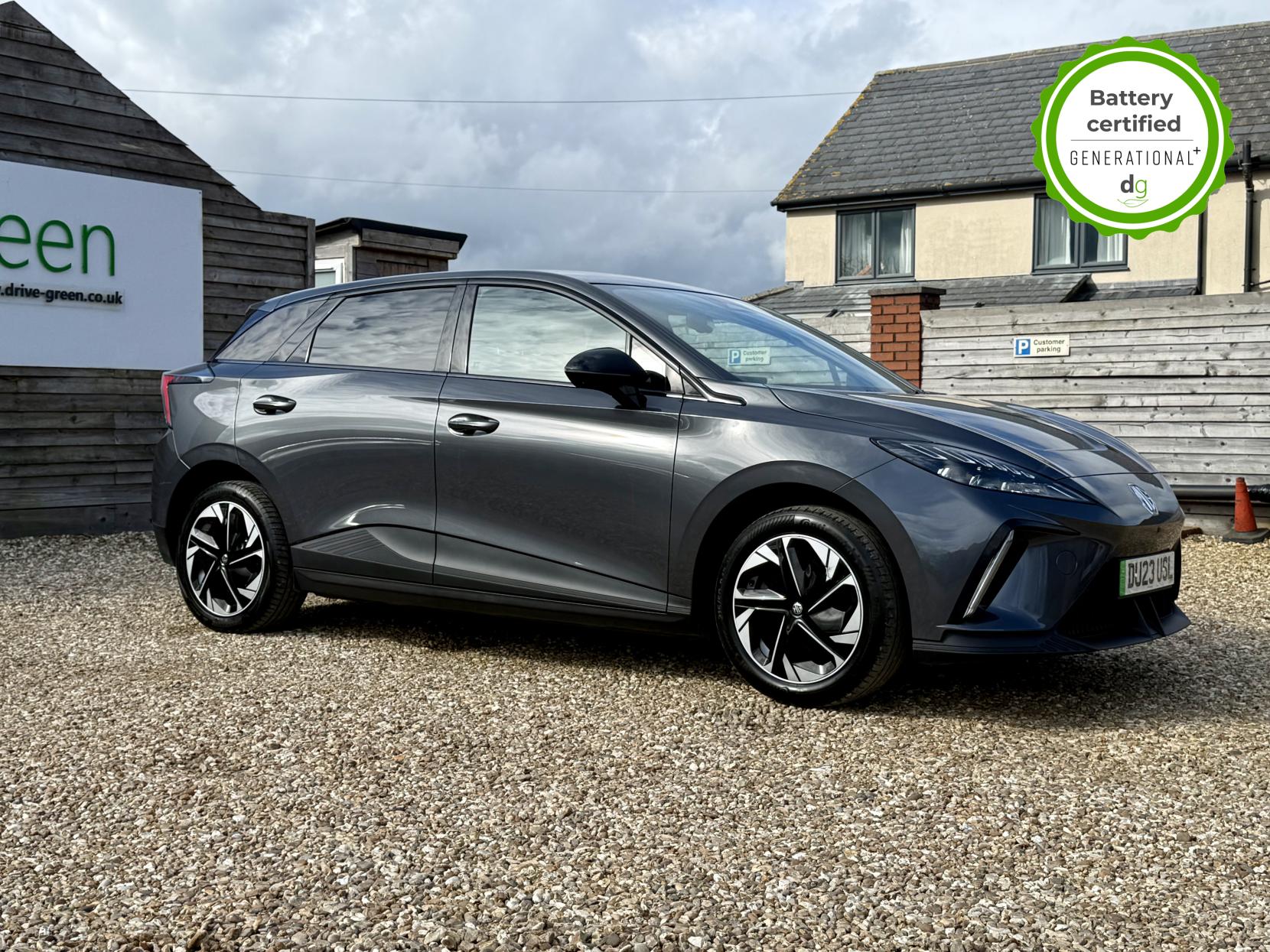 This particular MG4 is in excellent condition and fully prepared to our high standard, has 2 keys, 1 previous owner, and it will not need a service or MOT until March 2027. It also has an excellent 96% battery health. This car is the bigger battery Long Range model, giving it 260 miles of driving range, depending on time of year and your driving style. The top spec Trophy model boasts some great hi tech features in a very competitively priced car – all of which has made the MG4 the most popular EV in the UK right now. This Top Spec Trophy model comes with a great sound system paired with a 10” infotainment system that includes Android Auto and Apple CarPlay, wireless changing pad, 360o parking camera system, heated seats and heated steering wheel, a good quality leather look interior. Safety spec is good, a variety of driver safety features in MG’s Pilot Advanced Driver Assistance System, that includes and adaptive cruise control with steering assistance, High Beam Assist, the MG iSmart app, and a host of other top spec high tech features. It i also capable of 150kW Ultra Fast Rapid Charging. If you are looking for a long range practical all-rounder, but also with loads of spec at a great value price point, then this could be the right EV for you. Unlike Car Supermarkets we have no hidden admin fees, there is no pressure selling, and we offer low finance rates. We also perform battery health checks on all our vehicles, so you can have the comfort of knowing the battery state of health of the EV you choose. Hopefully you will choose to buy your EV from Drive Green, as we are a multi award winning EV specialist and sustainable business, here to help you get the most from your switch to electric driving. Contact us to book an appointment to view and test drive this car, or to find out more about switching to electric driving, and to discuss purchase options, including buying on finance, and our remote buying and delivery service. We are also able to supply your home charge point also, making the switch to electric driving super easy for you. Drive Green is a true EV specialist and the UK’s biggest electric car only dealership, since 2017. FORECOURT VISITS AND TEST DRIVES BY APPOINTMENT ONLY.