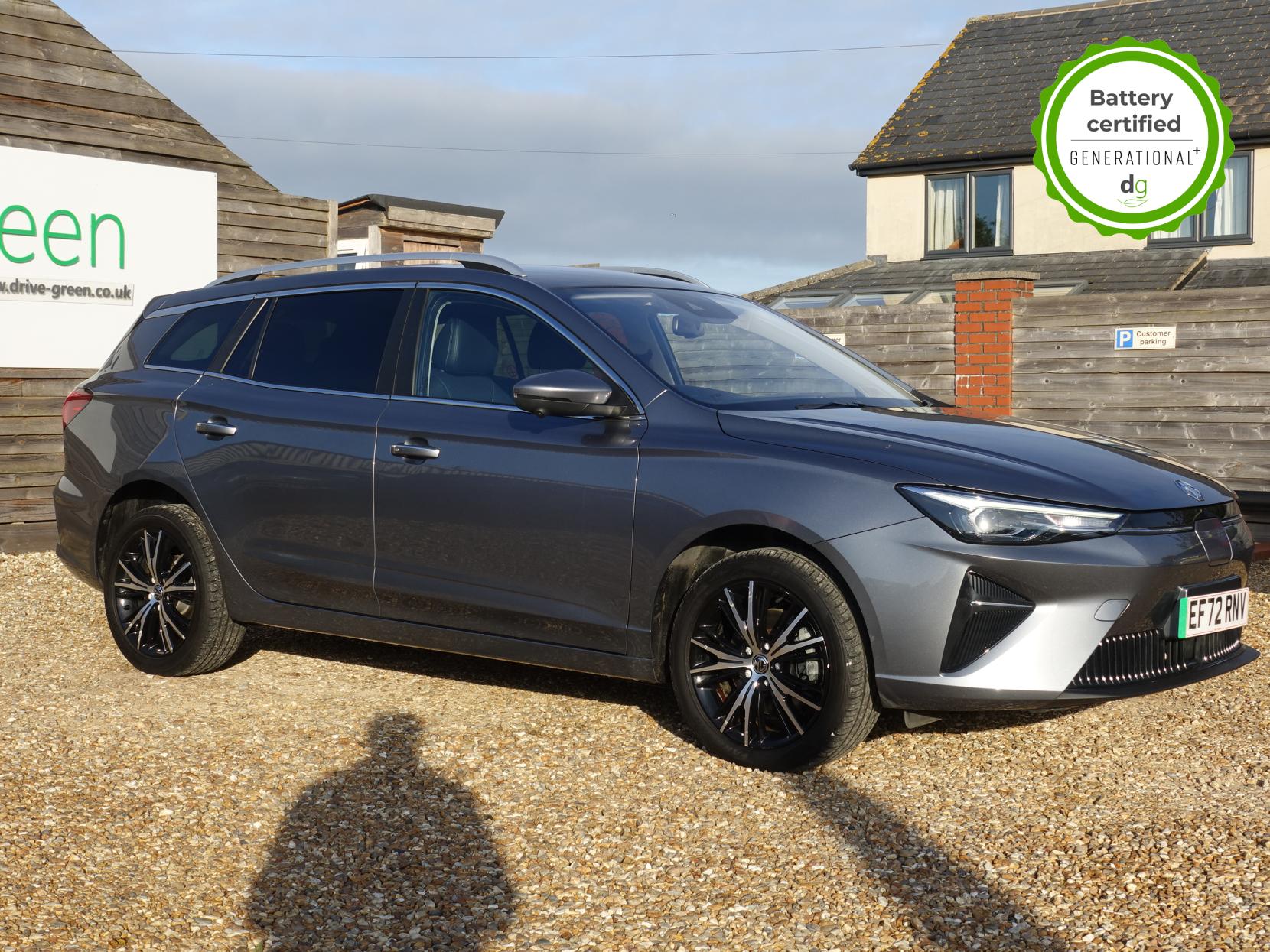 OVER £500 OF OPTIONAL EXTRAS! This particular MG5 is in excellent condition and fully prepared to our high standard, has 1 previous owner and it will be October 2026 until its next service or MOT is due. This car is the bigger battery Long Range model, giving it 240 miles + of driving range, depending on time of year and your driving style. The top spec MG 5 Trophy Long Range boasts some good features in a very competitively priced car. The MG 5 estate offers huge amounts of space, thanks to its 578L boot 1,456L with the seats folded. This Exclusive model comes with a 6-speaker sound system paired with an 8” infotainment system that includes Android Auto and Apple CarPlay, with 2 rear USB ports, roof rails and a good quality leather look interior. Safety spec is good, with rear parking sensors, 2 rear ISOFIX mounts as well as anti-rolling protection. If you are looking for a long range practical all-rounder with the space of an estate car, but also with loads of spec at a great value price point, then this could be the right EV for you. Unlike Car Supermarkets we have no hidden admin fees, there is no pressure selling, and we offer low finance rates. We also perform battery health checks on all our vehicles, so you can have the comfort of knowing the battery state of health of the EV you choose. Hopefully you will choose to buy your EV from Drive Green, as we are a multi award winning EV specialist and sustainable business, here to help you get the most from your switch to electric driving. Contact us to book an appointment to view and test drive this car, or to find out more about switching to electric driving, and to discuss purchase options, including buying on finance, and our remote buying and delivery service. We are also able to supply your home charge point also, making the switch to electric driving super easy for you. Drive Green is a true EV specialist and the UK’s biggest electric car only dealership, since 2017. FORECOURT VISITS AND TEST DRIVES BY APPOINTMENT ONLY.